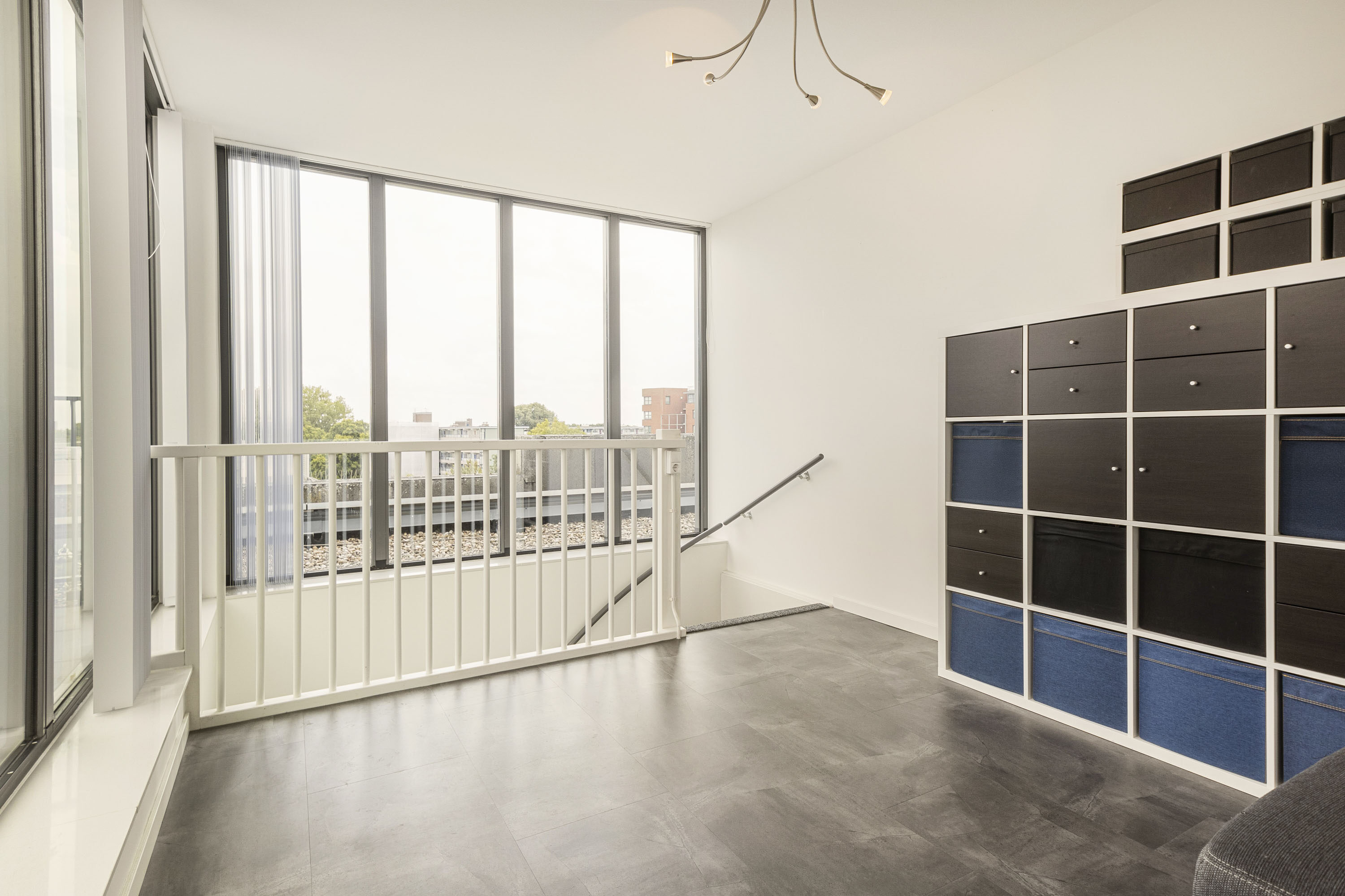 Via een vaste trap bereik je de derde slaapkamer van circa 15 m². Deze ruimte is multifunctioneel te gebruiken als logeerkamer, werkkamer of hobbyruimte. Vanuit hier stap je direct het ruime dakterras van circa 21m2 op, waar je in de lente en zomer de gehele dag van de zon kan genieten.