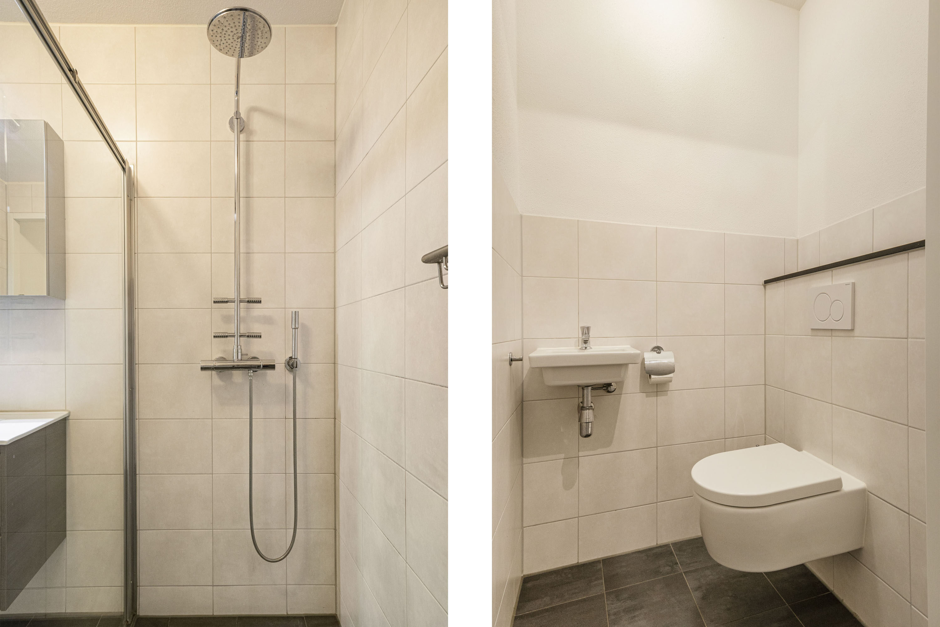 Op deze verdieping zijn twee slaapkamers van circa 15 m² en 7 m² groot. De slaapkamer aan de voorzijde bereik je via de hal, de slaapkamer aan de achterzijde via de woonkamer. Beide kamers zijn voorzien van veel kastruimte. Verder vind je op deze verdieping een separaat toilet, een berging met cv-ketel, ventilatie-unit en wasmachine- en drogeraansluitingen en een badkamer van circa 5 m² met ruime inloopdouche, wastafel met meubel en designradiator.
