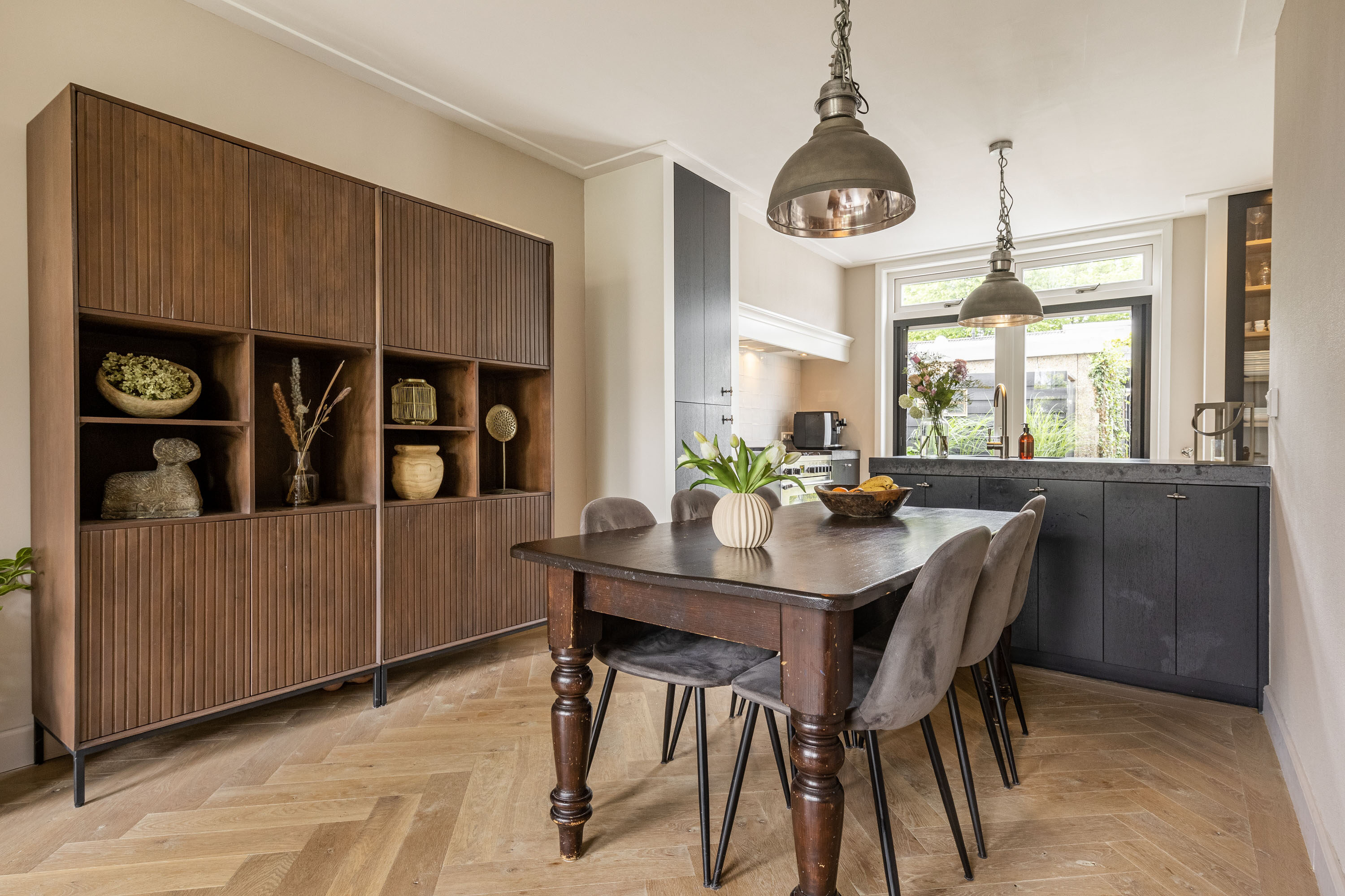 Centraal tussen de woonkamer en keuken bevindt zich het eetgedeelte. Hier is meer dan voldoende ruimte voor een grote eettafel met stoelen. Een fijne plek om met familie en/of vrienden te genieten van een hapje, drankje en spelletje!