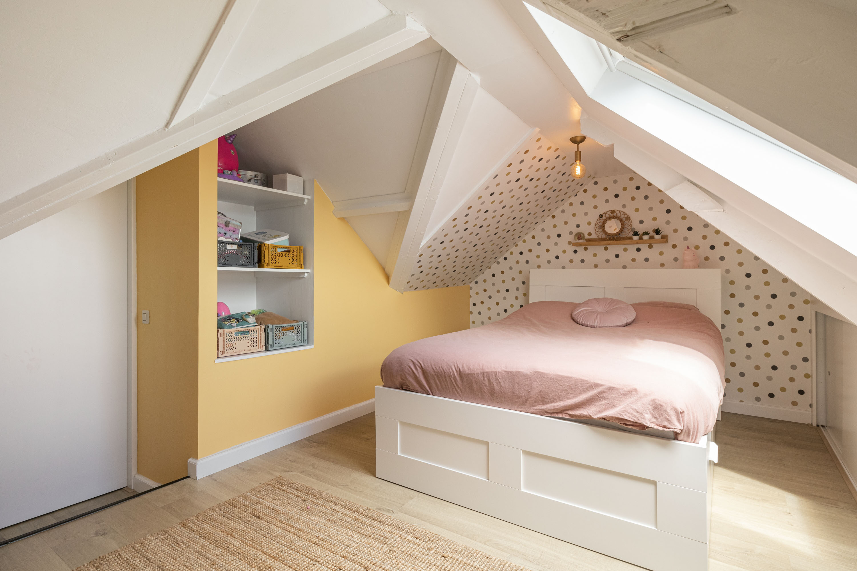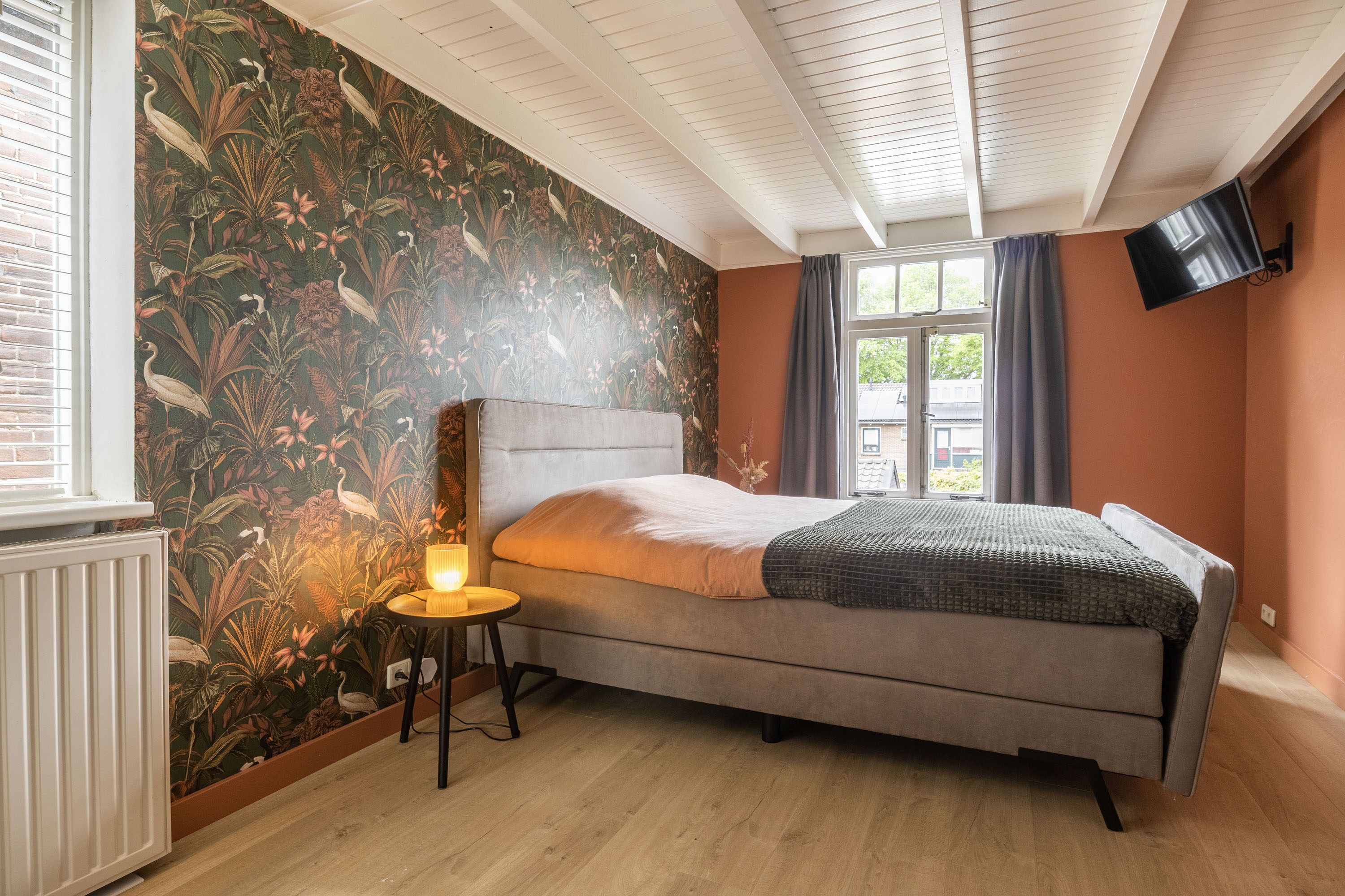 Slaapkamer 2 en 3, respectievelijk 10,3 en 5,3 m² zijn gelegen aan de voorzijde en beschikken naast de karakteristieke raampartijen ook over een balkenplafond.