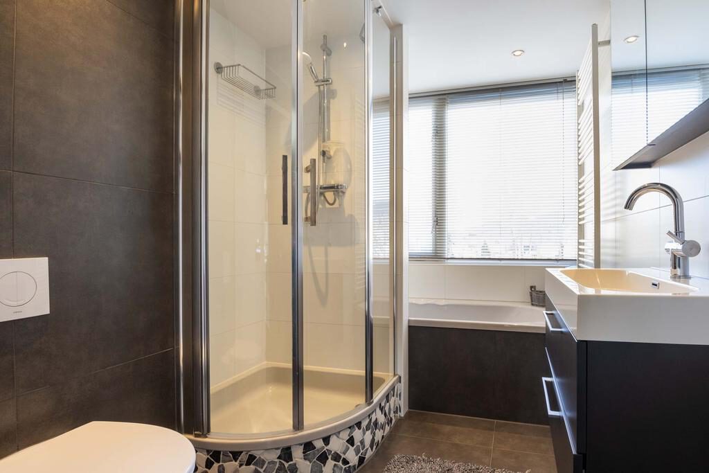 Via de overloop is er toegang naar 3 volwaardige slaapkamers en de moderne badkamer. De slaapkamers hebben een afmeting van circa 12,5m², 11,5m² en 7m². De slaapkamers zijn voorzien van een laminaatvloer, neutrale wanden en voldoende lichtinval. De badkamer is betegeld in een moderne kleurstelling en beschikt over een ligbad, douche, toilet, wastafel en een raam om extra goed te kunnen ventileren. De eerste verdieping is tevens voorzien van 2 airco's.
