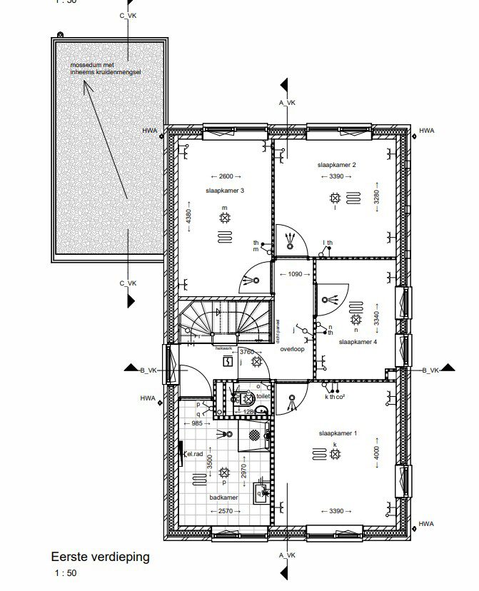 De overloop geeft toegang tot de 4 slaapkamers, het separate toilet en de badkamer. De slaapkamers hebben een afmeting van ca. 13,5 m², 11 m², 11m² en 8,5 m². Hier kan de indeling in overleg nog naar eigen smaak gewijzigd worden. Door de vele ramen is er heerlijk veel lichtinval en iedere kamer is voorzien van een eigen thermostaat. De badkamer wordt betegeld in een eigen gekozen tegelkeuze en wordt compleet opgeleverd.