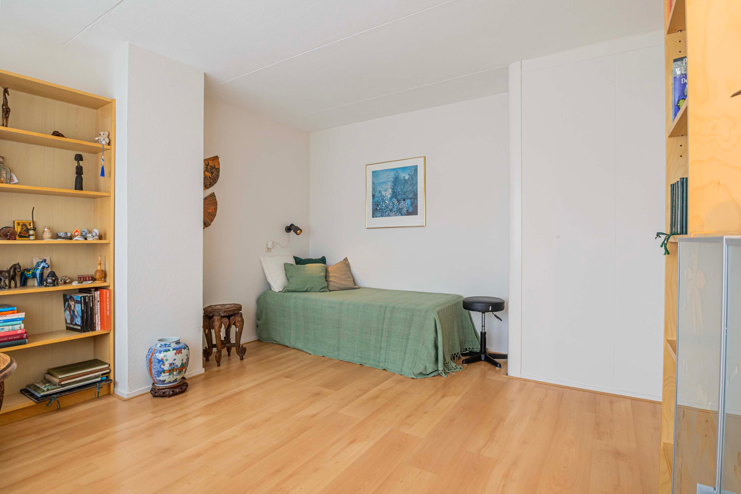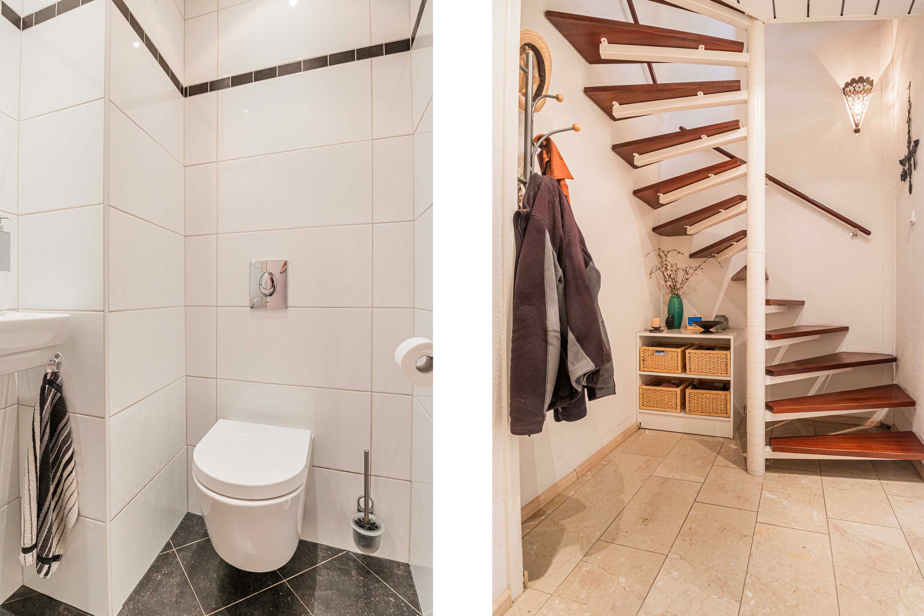 Ook de badkamer is met ruim 6 m² van een prettig formaat. Qua kleurstelling is de badkamer met witte vloer- en wandtegels zeer neutraal uitgevoerd. Met een ligbad, douchecabine, wastafel en 2e toilet beschik je over uitgebreid sanitair.
