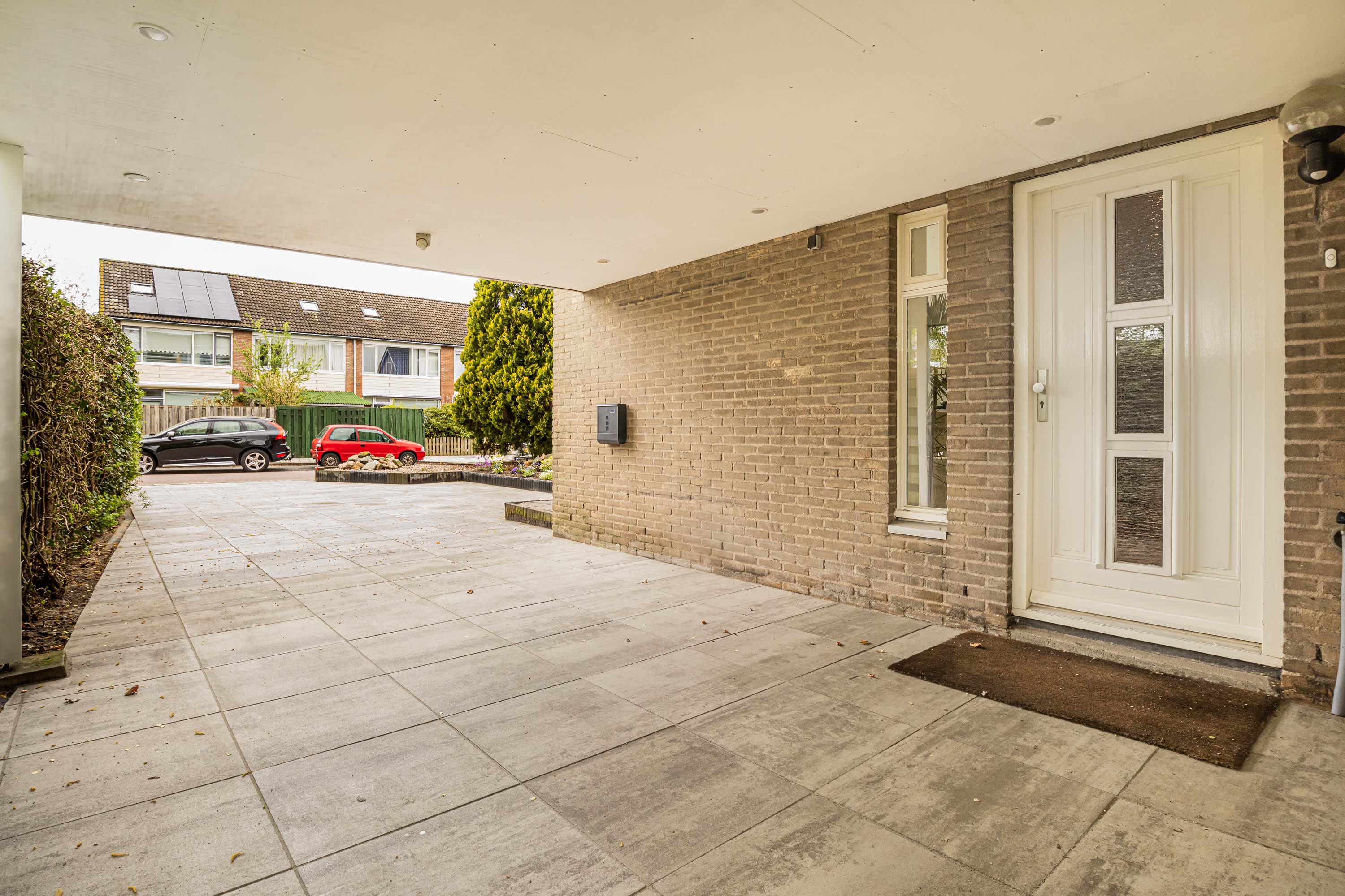Voortuin, wederom riant, is in 2025 nog vernieuwd van een nieuwe oprit. Hierdoor heb je de mogelijkheid tot het parkeren van 3 tot 4 auto’s.