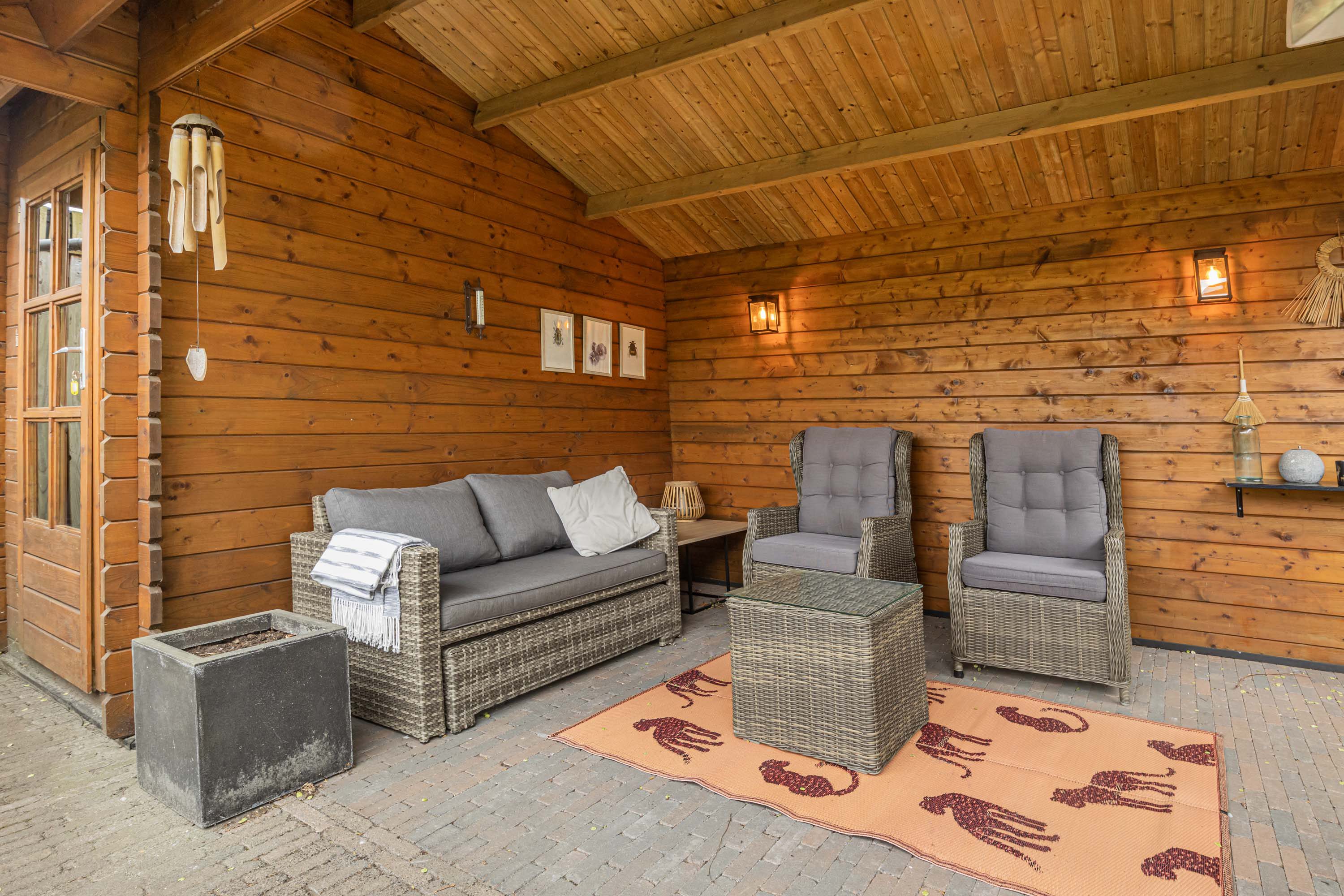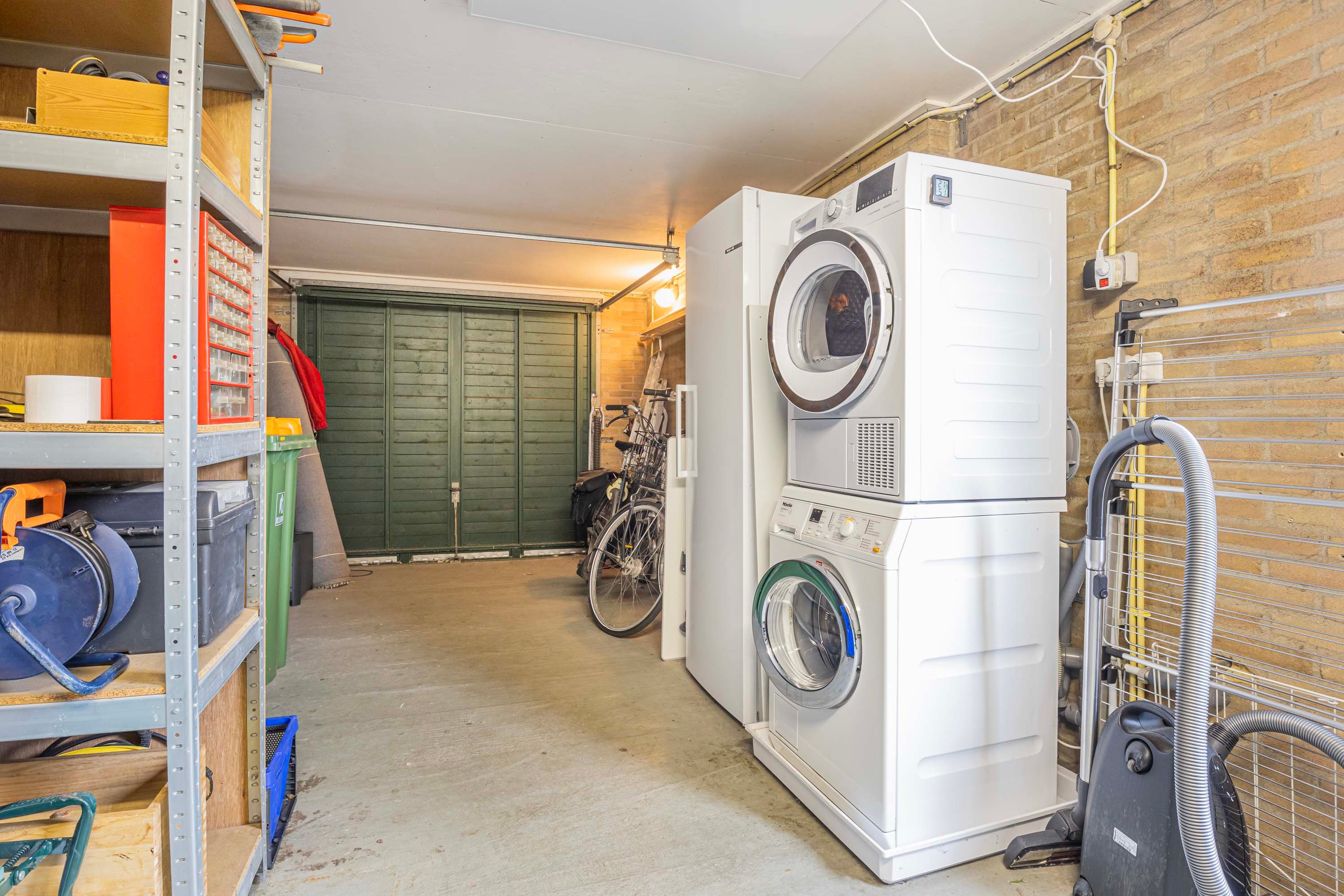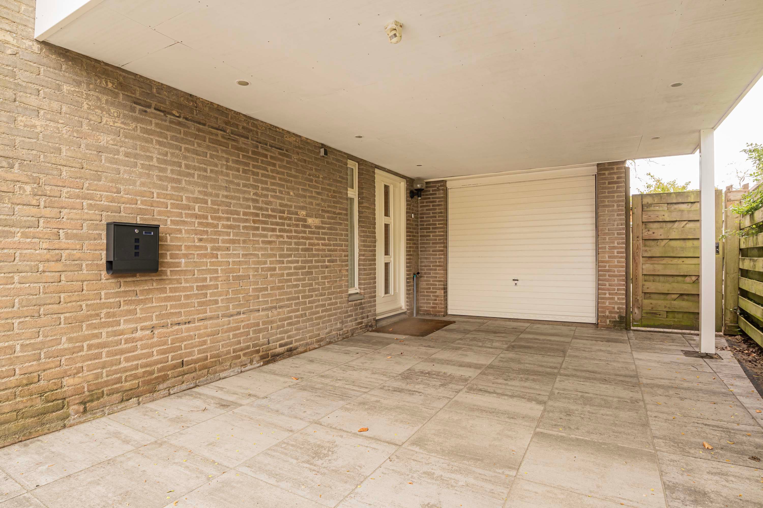 Naast de woning staat een gemetselde garage van ruim 20 m². Naast de mogelijkheid tot het plaatsen van een grote vriezer hebben de huidige eigenaren er ook voor gekozen om de wasmachine en droger hier te plaatsen. Voor de garage bevindt zich nog een carport om de auto overdekt te parkeren.