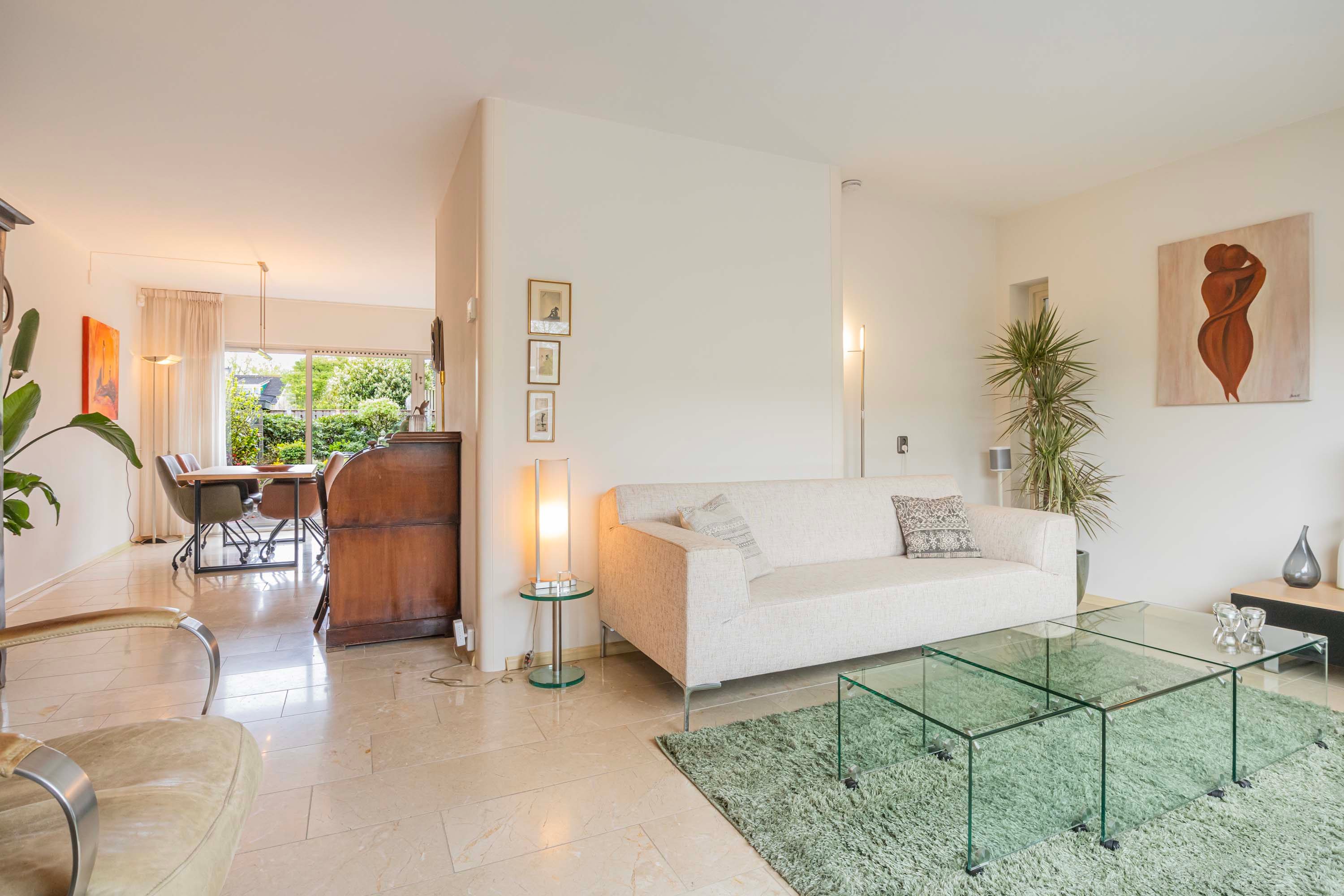 Een van de absolute pluspunten van deze woning is de royale tuin, zowel de voor- als achtertuin. Vooral de achtertuin is qua zonligging, namelijk op het zuiden, zeer gunstig gelegen. Een verzorgd aangelegde tuin met een ideale combinatie tussen sierbestrating, bomen, plantenbakken en overkappingen. Genoeg ruimte voor zonuren, genoeg ruimte voor plekjes in de schaduw.