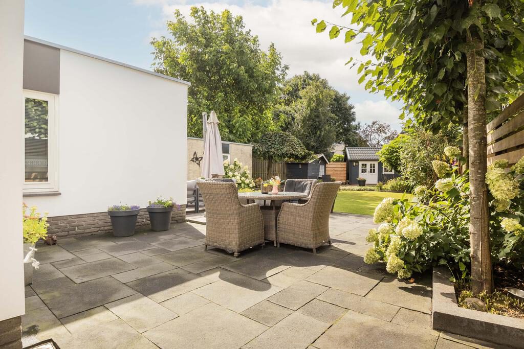 Wat een fantastische tuin! De tuin is in zeer goede staat van onderhoud en bezit diverse beplanting, bomen en struiken en meerdere gezellig zitplekjes om van de tuin te kunnen genieten. Door de riante afmeting is er altijd wel een plekje in de zon of in de schaduw te vinden. Verder is er extra veel bergruimte door de 3 bergingen en een achterom.