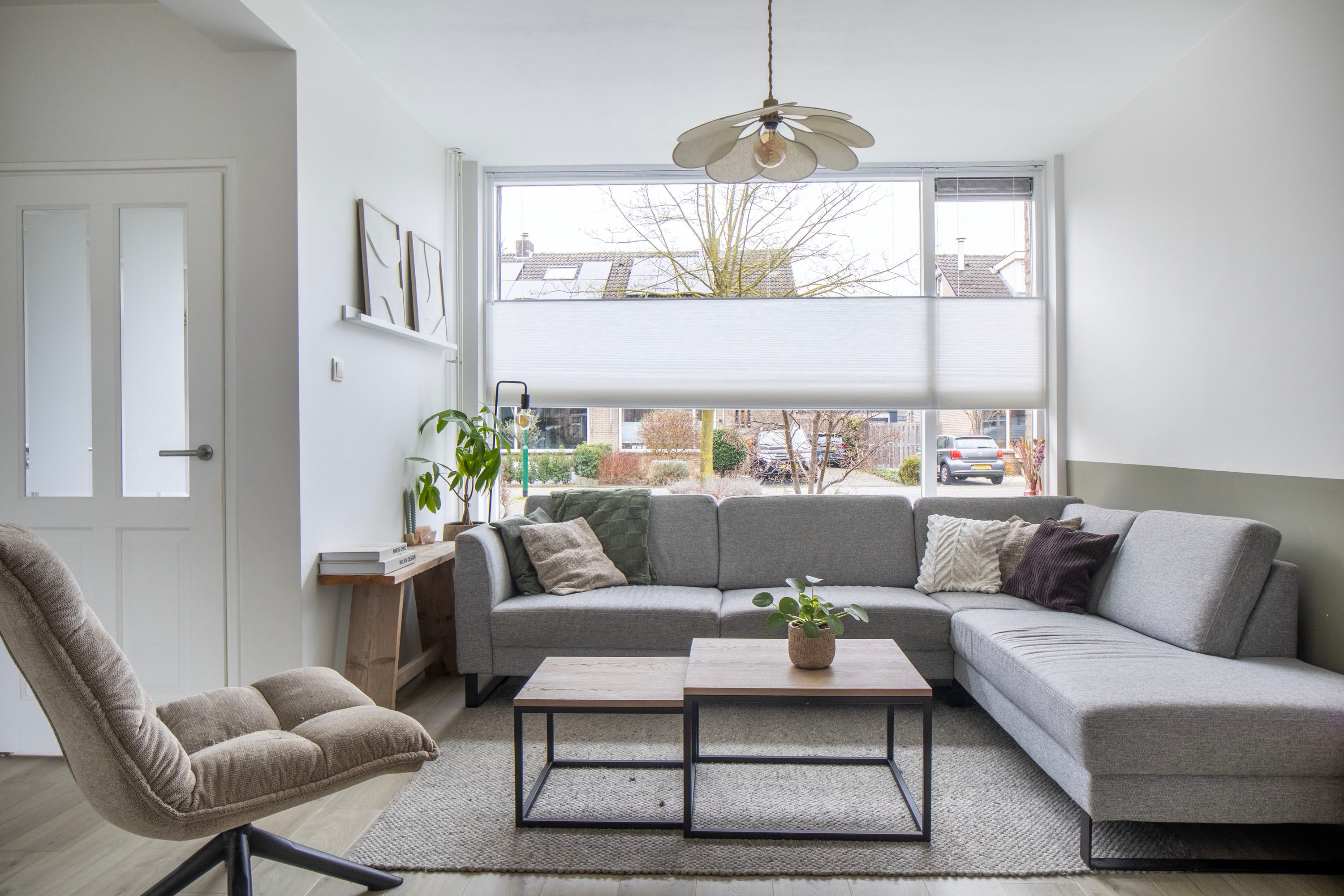 - Woonkamer met grote raampartijen en veel lichtinval