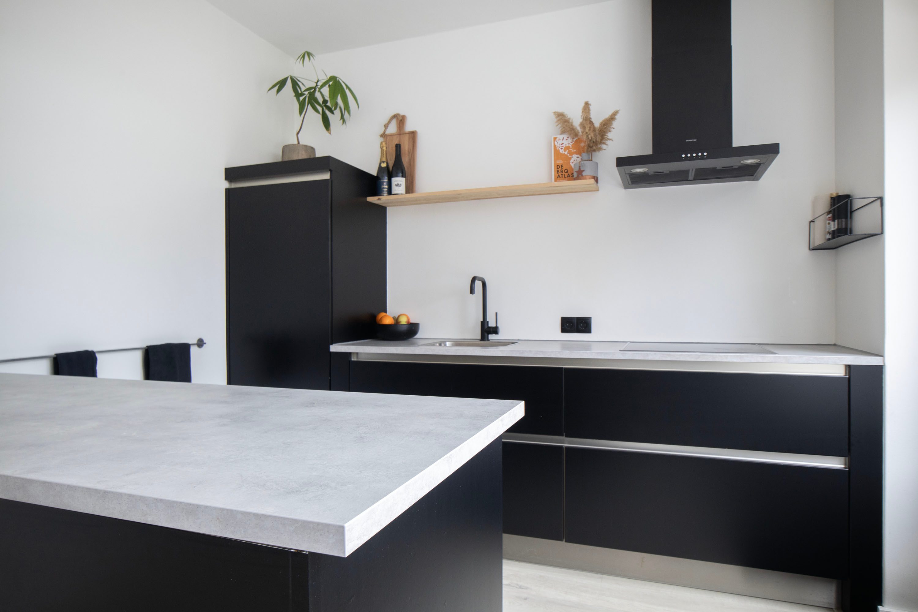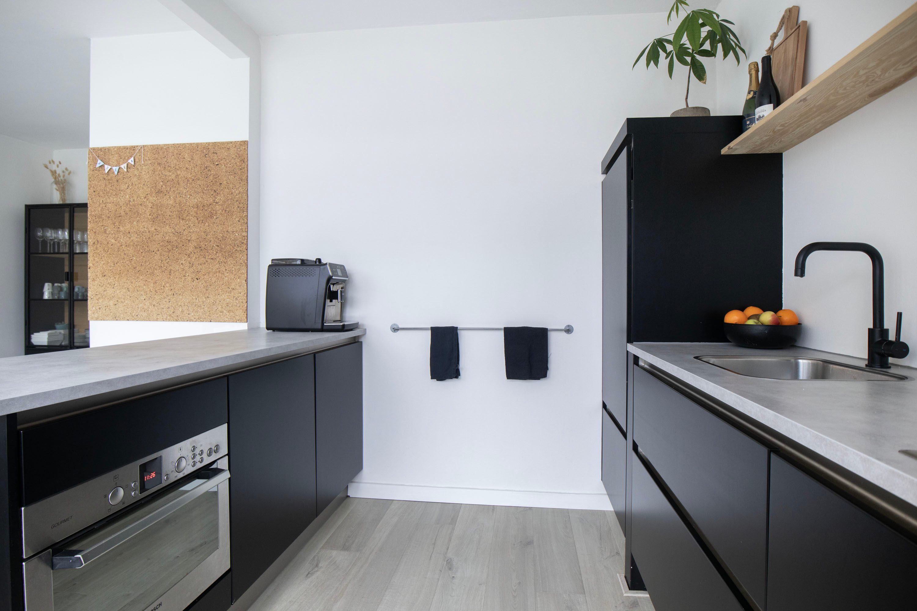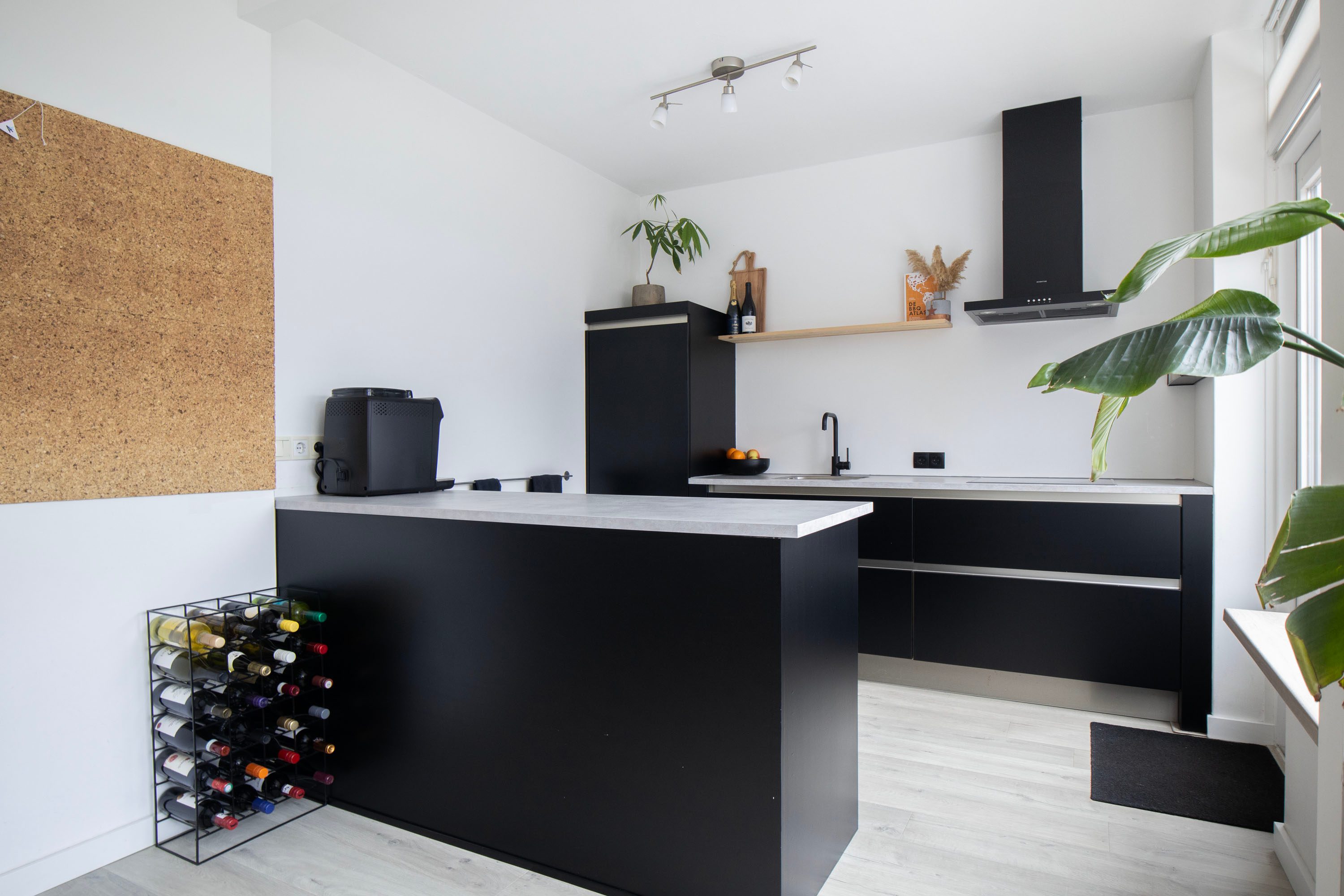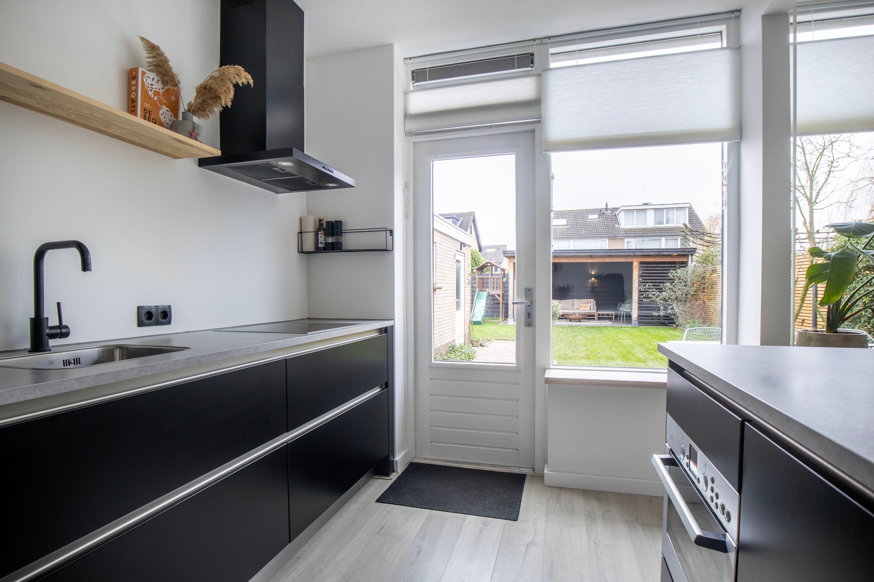 De halfopen keuken is modern uitgevoerd en geplaatst in 2006. De keuken is in 2022 gewrapt en voorzien van een nieuw aanrechtblad en afzuigkap, de keuken bestaat uit twee rechte opstellingen, waarvan één schiereiland en is voorzien van greeploze fronten en diverse Bosch inbouwapparatuur, waaronder een inductie kookplaat, vaatwasser, koelkast en combimagnetron. Daarnaast is de woonkamer voorzien van airco voor verkoeling en verwarming.