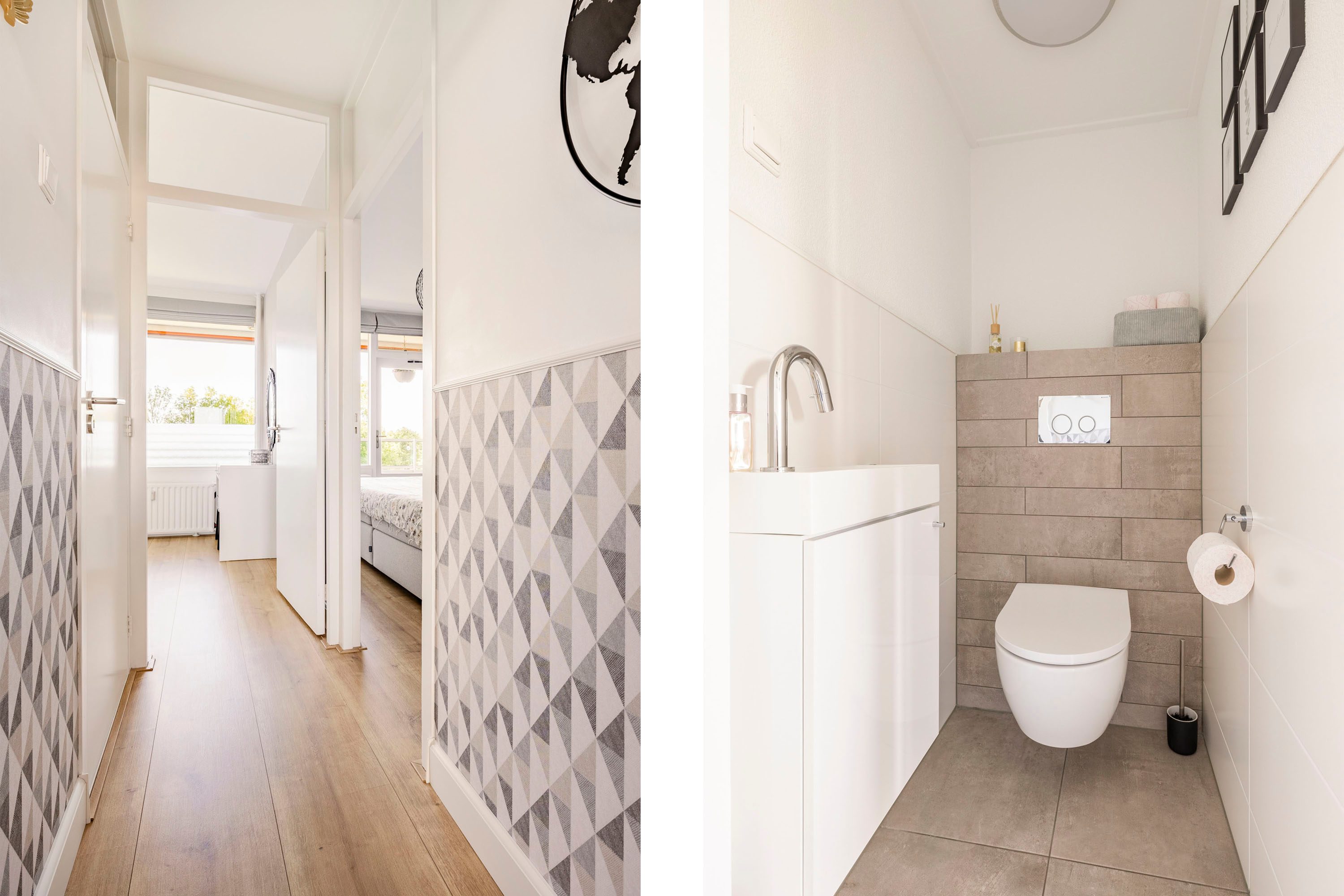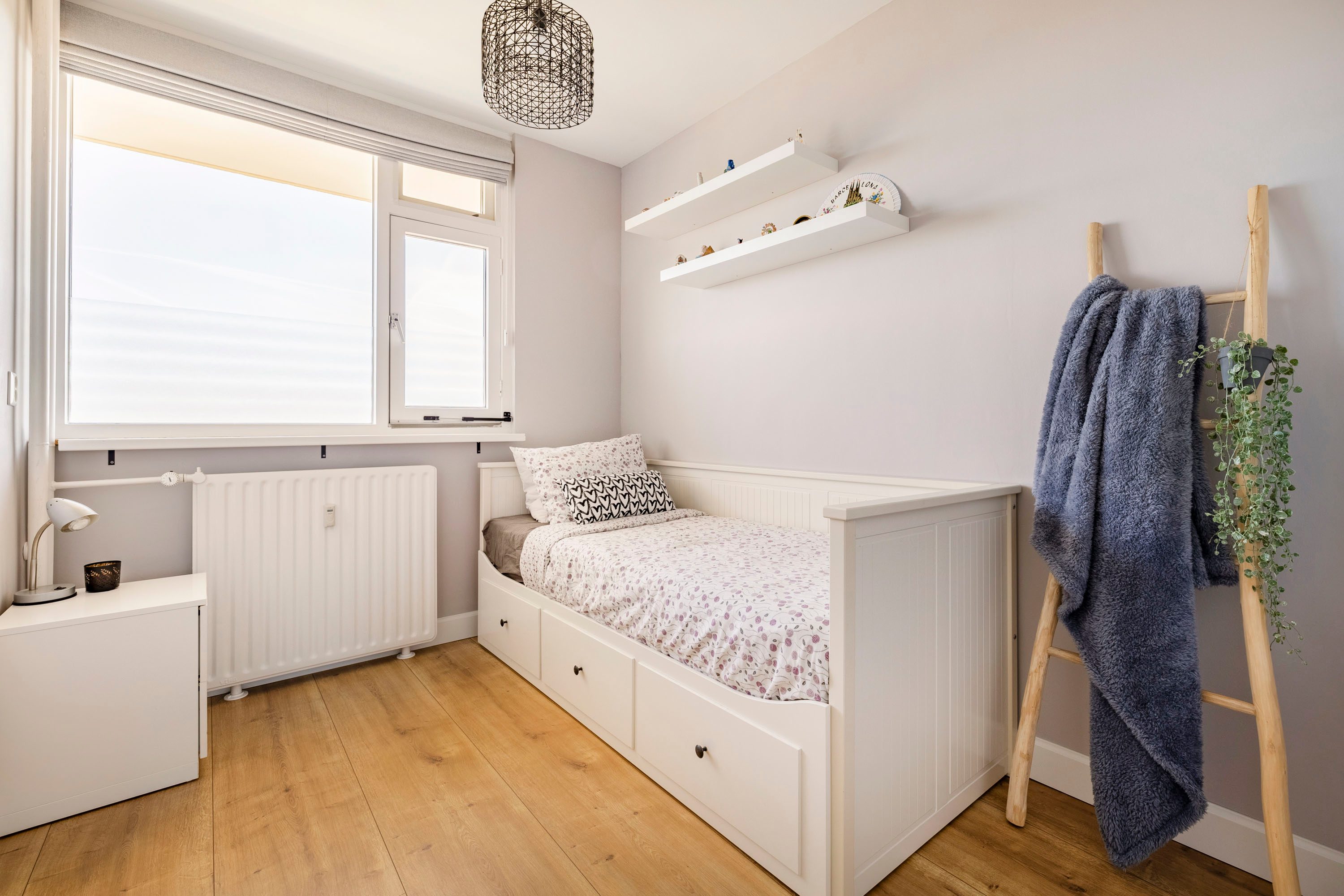 De grootste slaapkamer is gelegen aan de achterzijde van het appartement en is ruim 12 m² groot. Daarnaast kun je via een toegangsdeur naar het balkon en beschik je over veel daglicht door de grote raampartijen. De tweede slaapkamer aan de achterzijde is ruim 6,5 m² groot en beschikt ook over veel daglicht door een groot raam. Deze kamer wordt op dit moment gebruikt als kledingkamer, maar kan ook worden gebruikt als baby-/kinderkamer.