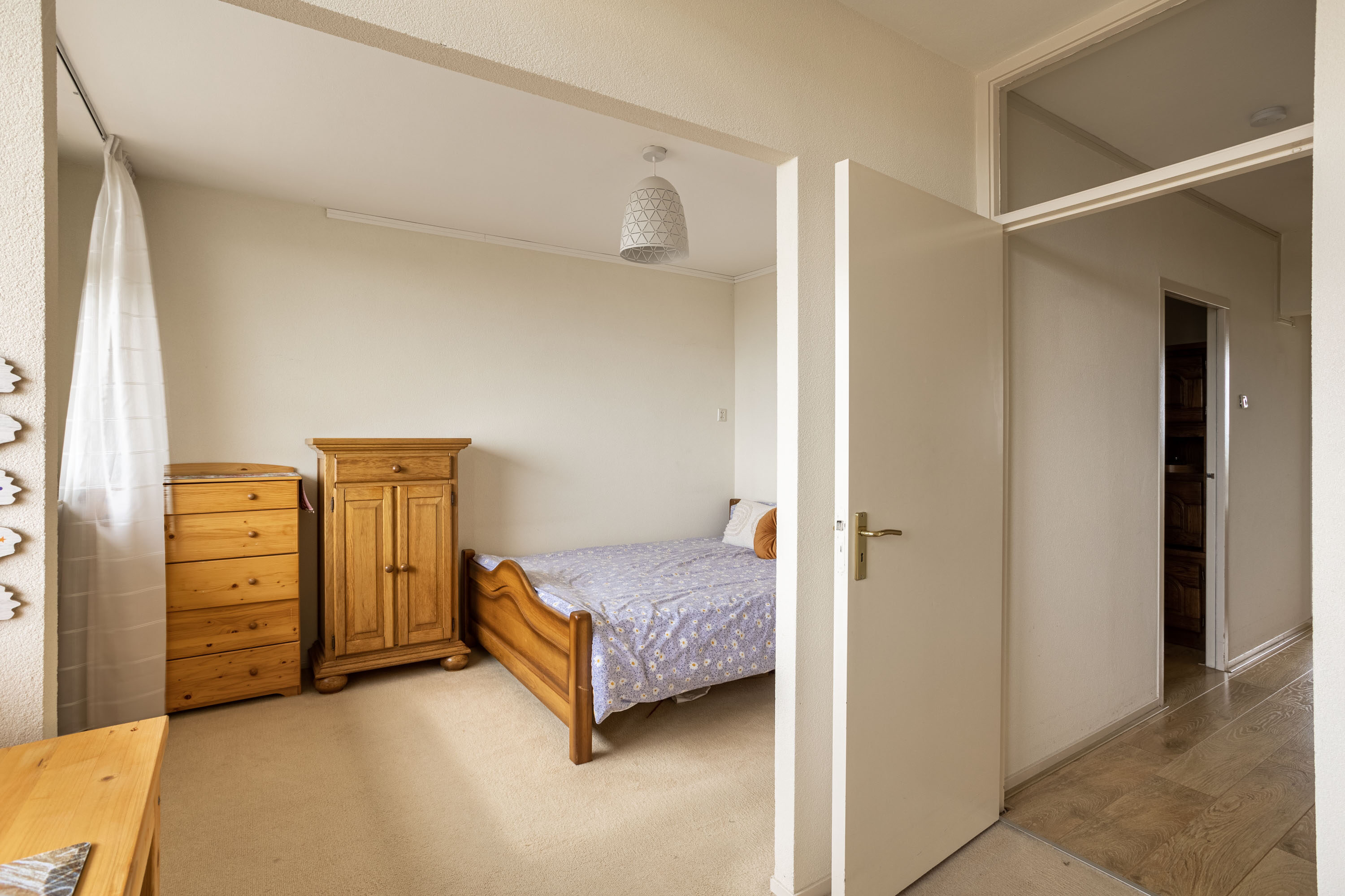 De eerste slaapkamer is ruim en staat in verbinding met de tweede kamer, die momenteel als