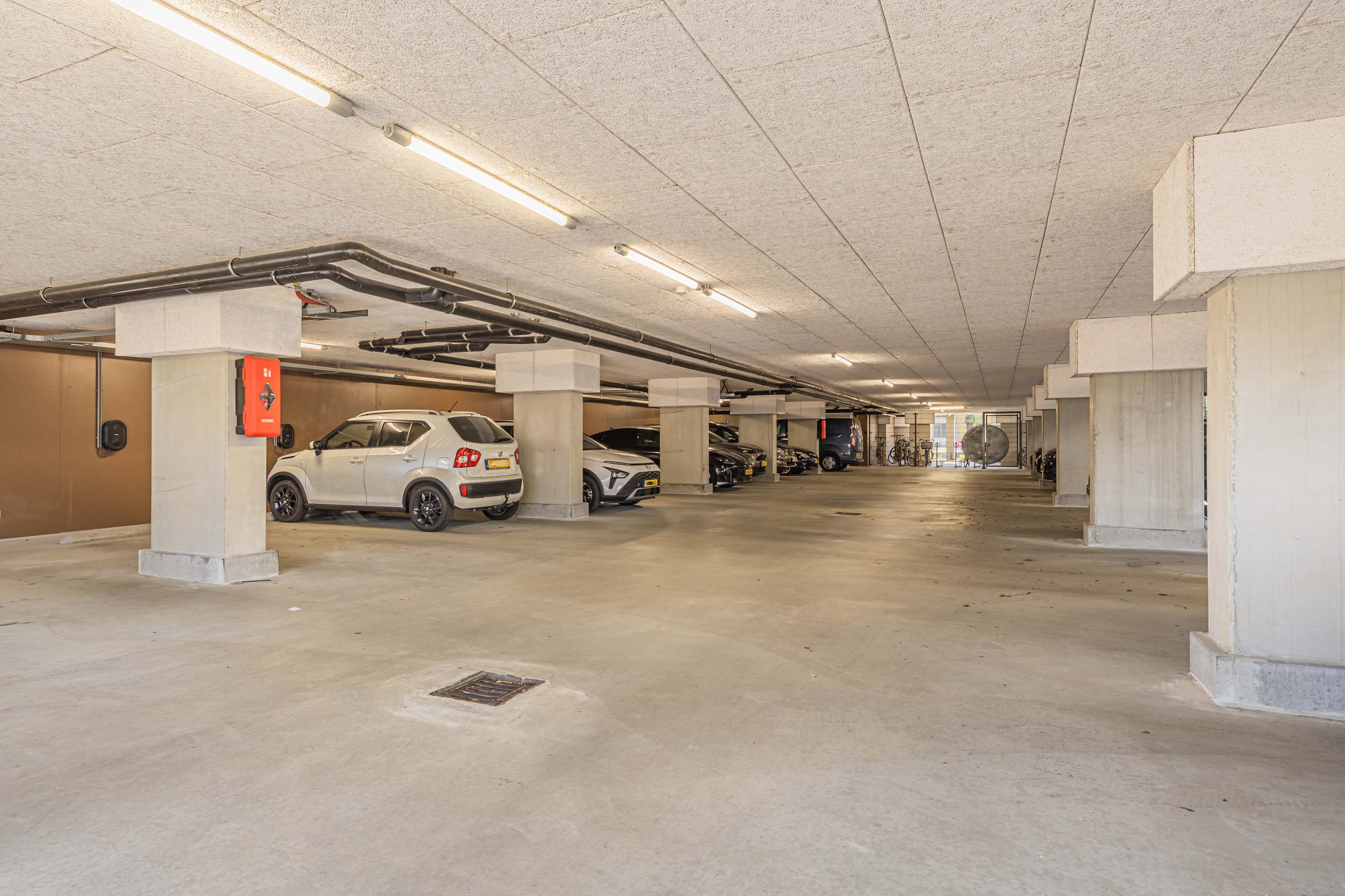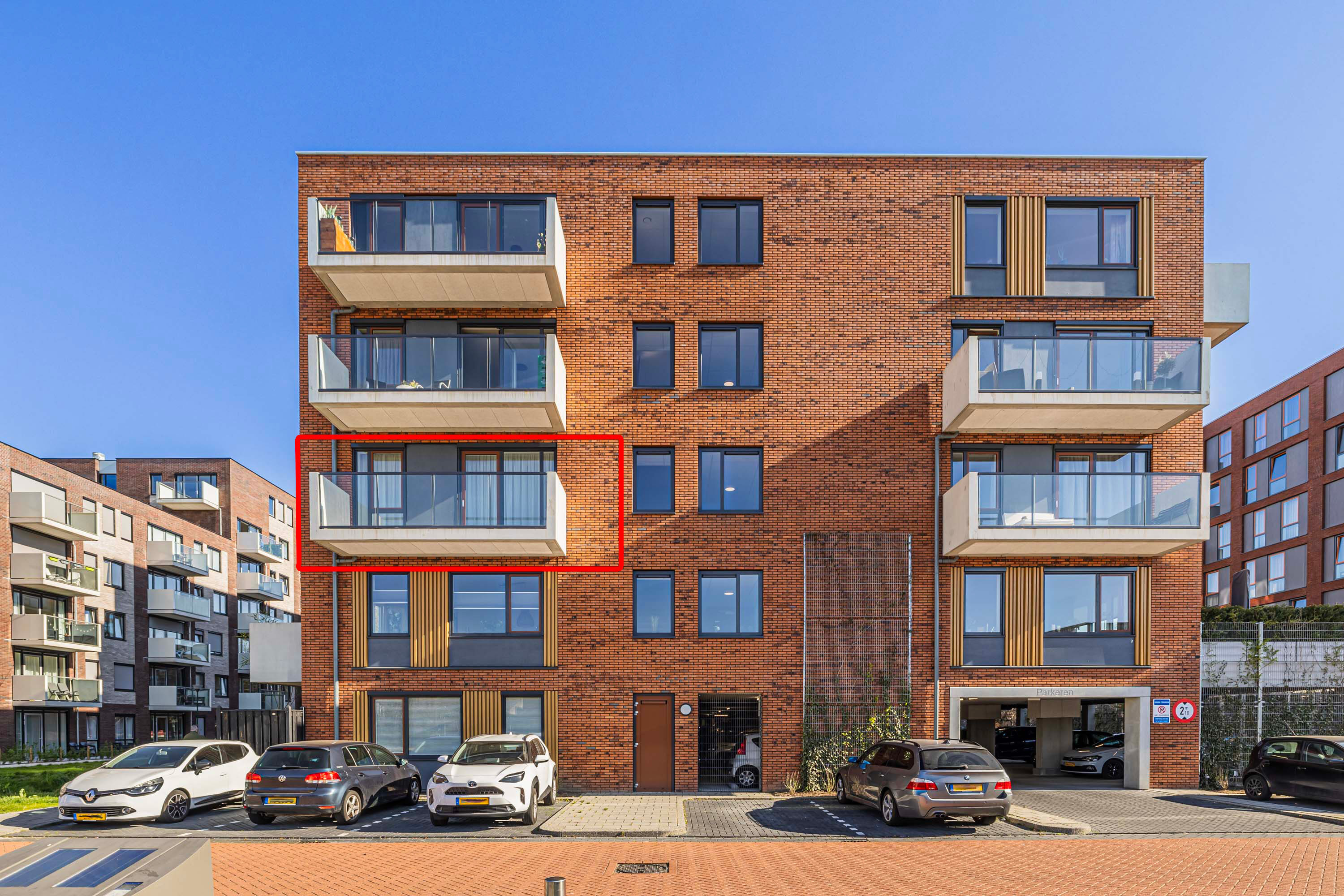 Onder het appartementencomplex en buiten rondom is er parkeergelegenheid op basis van beschikbaarheid.