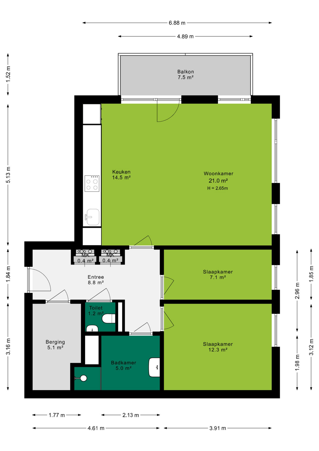 Balkon 7.5 m²