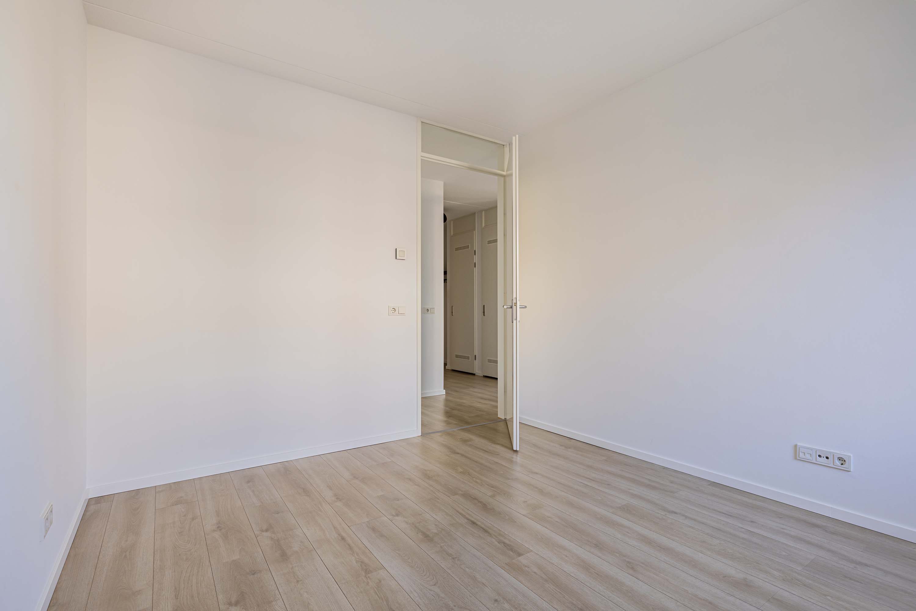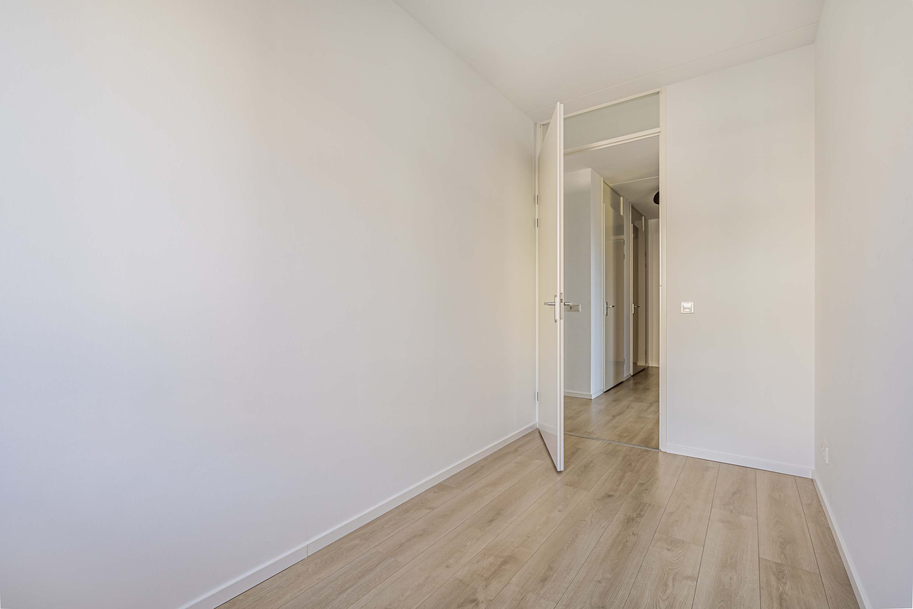 Vanuit de hal zijn tevens de twee slaapkamers te bereiken. De twee mooie slaapkamers zijn prima van formaat (ca. 7,1 m² en 12,2 m²). Deze slaapkamers zijn voorzien van verduisterende overgordijnen in een neutrale kleur.