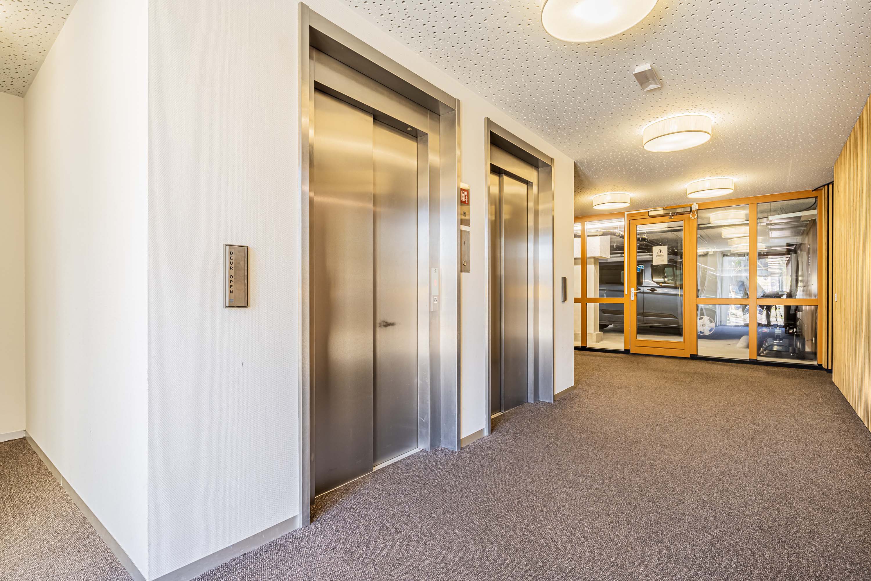 Via de hoofdingang met video-intercomsysteem en brievenbussen heb je via de lift (2x) of de trap toegang tot het comfortabele en energiezuinig appartement op de tweede verdieping van het complex.