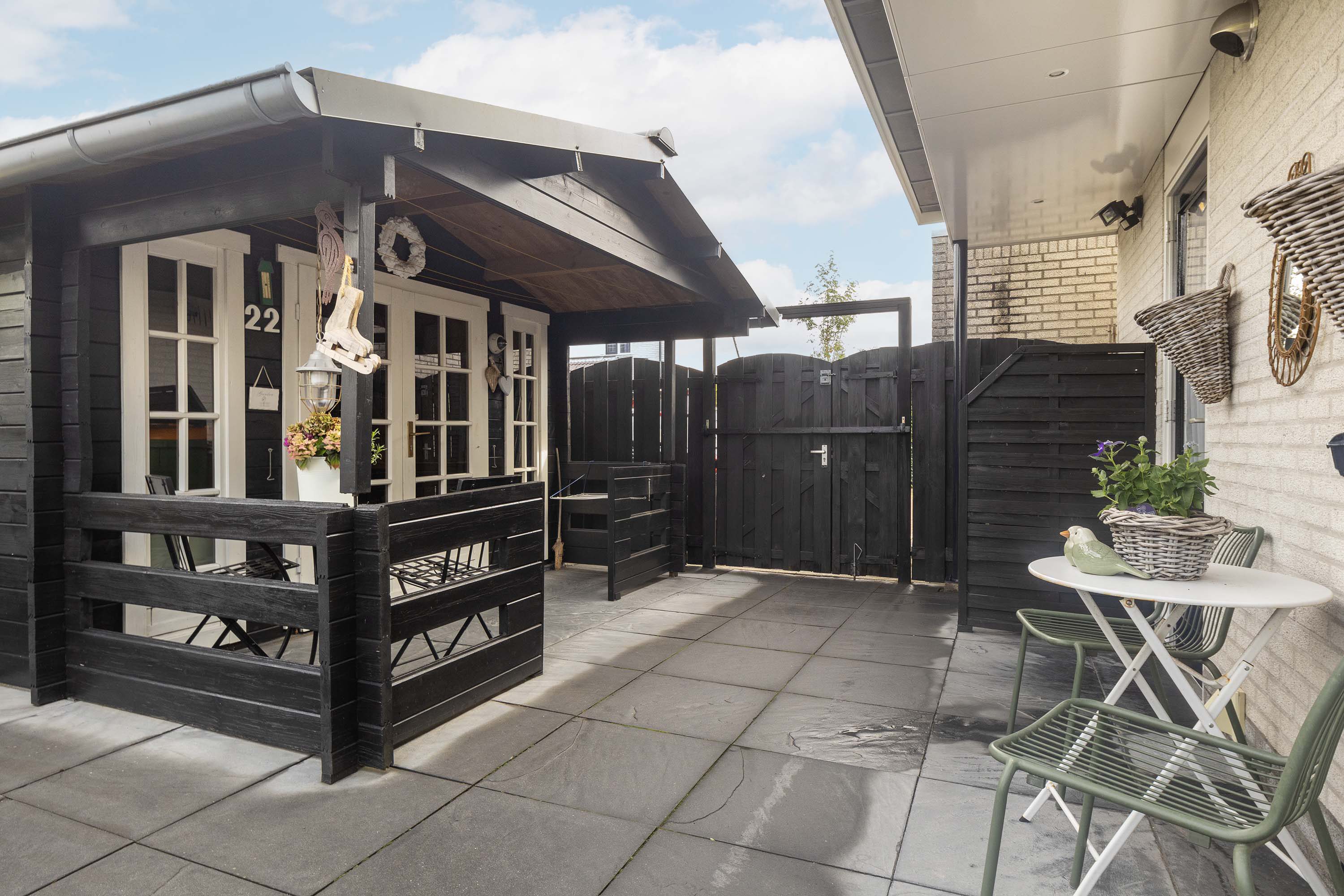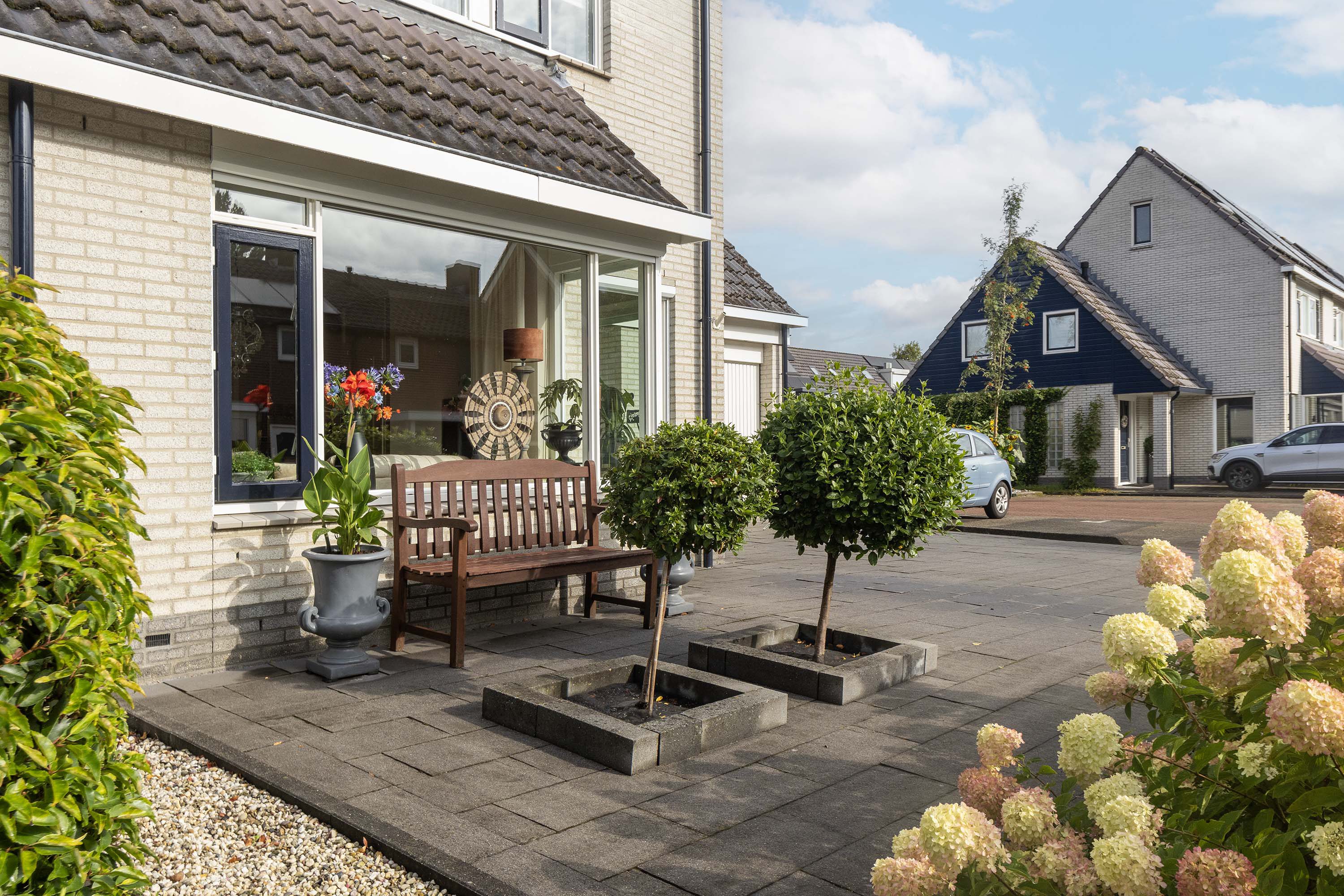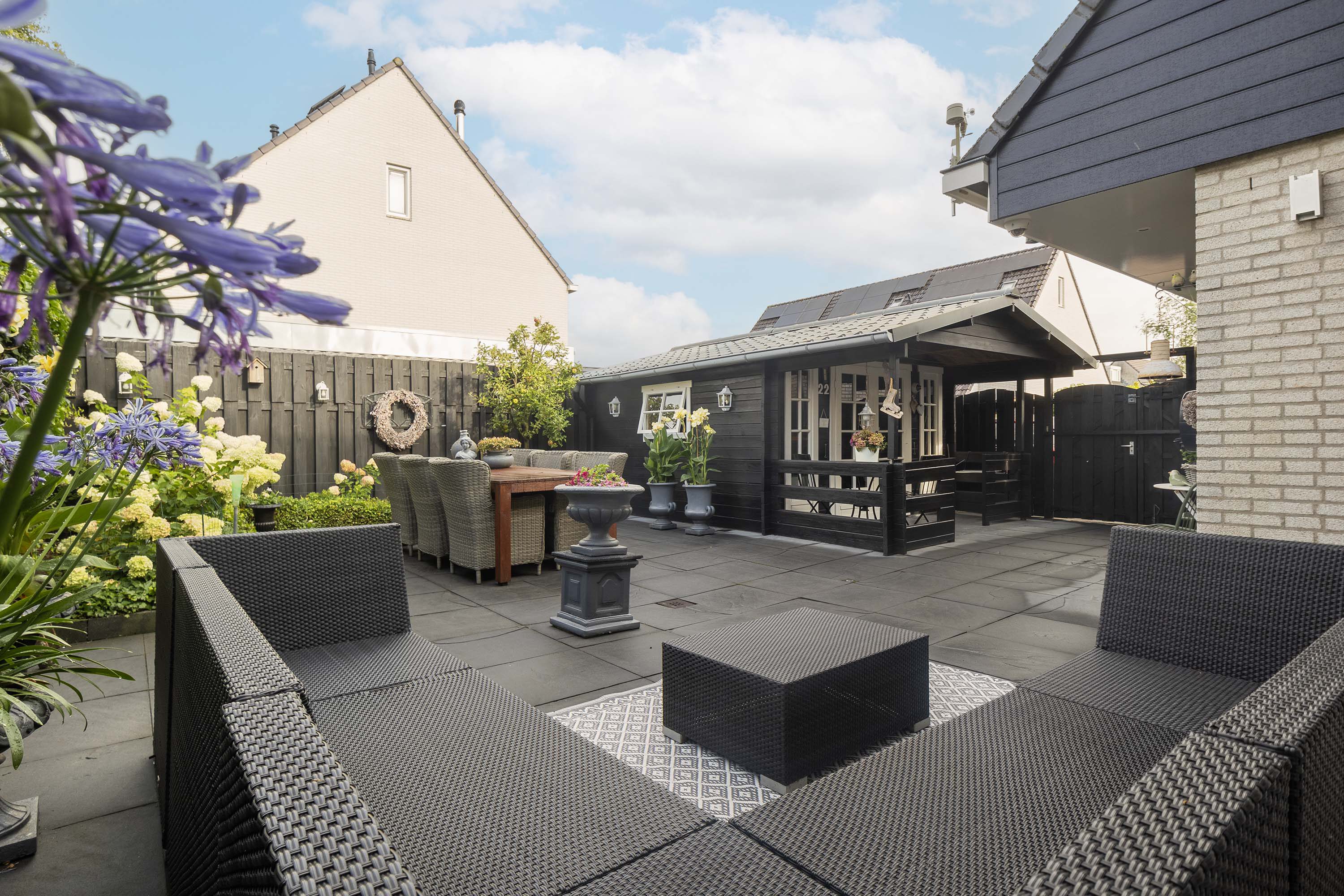 De tuin, gelegen op het westen, is zowel vanuit de woning als via de aangebouwde garage toegankelijk. Deze ruime buitenruimte biedt volop mogelijkheden voor verschillende zithoekjes en een speelhoek voor kinderen. De vrijstaande houten berging van 12,3 m² is ideaal voor het opbergen van bijvoorbeeld gereedschap of fietsen. Tevens is de tuin ook via de zijingang te bereiken.