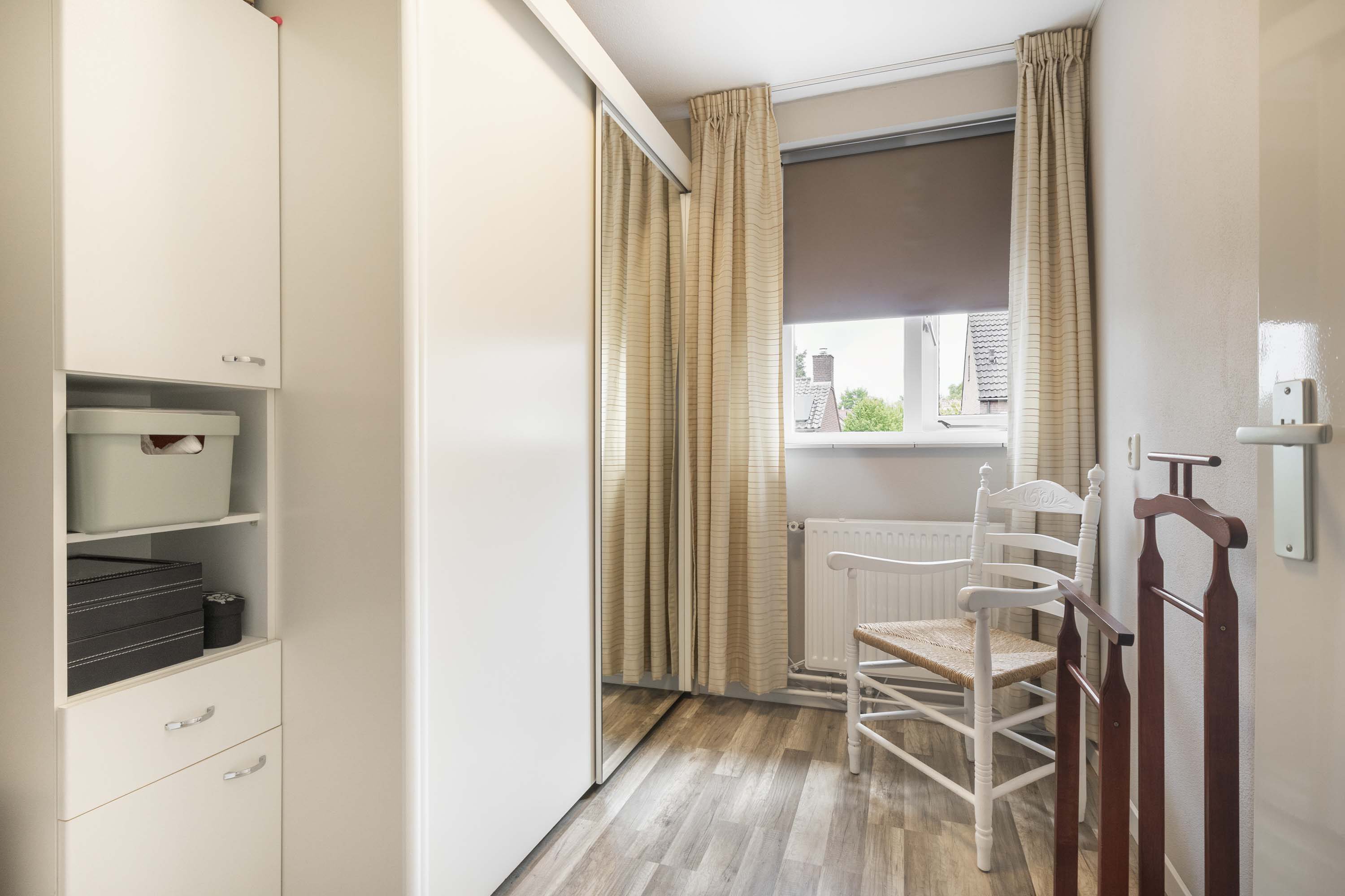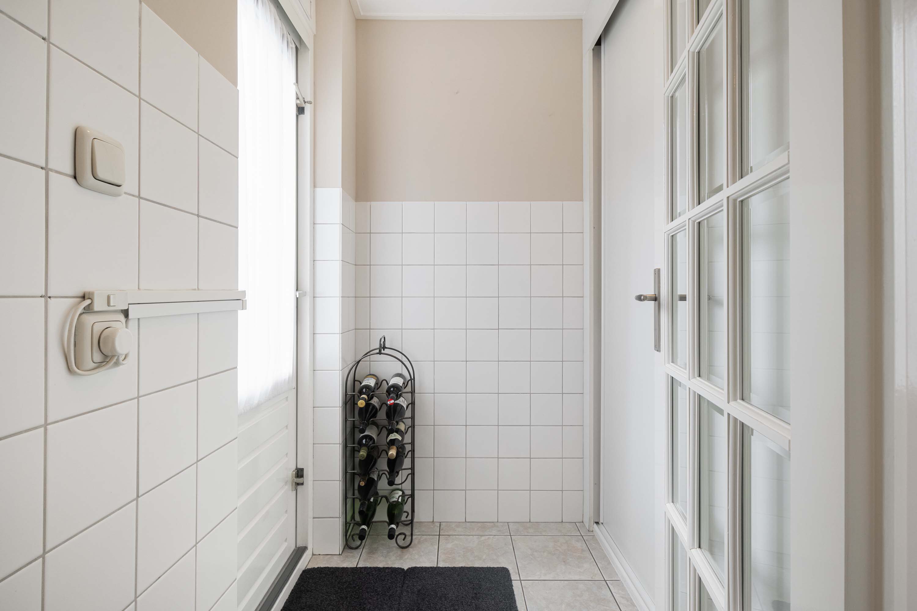 Vanuit de keuken is er tevens toegang tot een praktische bijkeuken/hal met aansluitingen voor de wasmachine en droger, aangevuld met een inbouwkast. De verzorgd aangelegde achtertuin is vanuit de bijkeuken/hal bereikbaar via een loopdeur en vanuit het eetgedeelte via een riante schuifpui