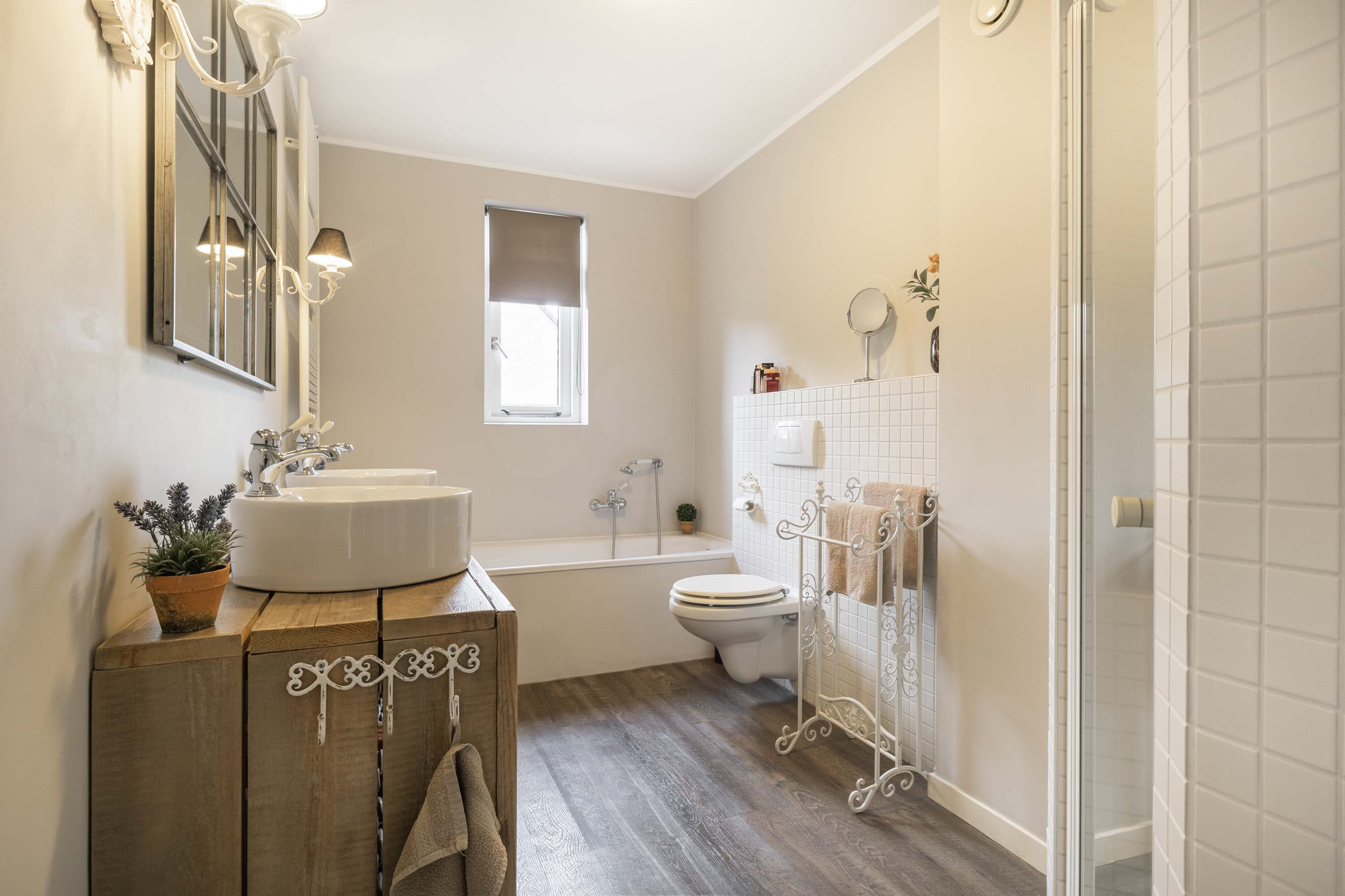 Via de overloop, die toegang biedt tot alle ruimtes, bereik je drie slaapkamers met een oppervlakte van 13,4 m², 11,8 m² en 5,6 m². Elke kamer beschikt over grote raampartijen, dat zorgt voor veel natuurlijk licht. De royale badkamer van 7,2 m² is ingericht met een dubbel wastafelmeubel, een ligbad, een tweede toilet en een douche. Daarnaast is er naast mechanische ventilatie ook een te openen raam voor de gewenste natuurlijke ventilatie.