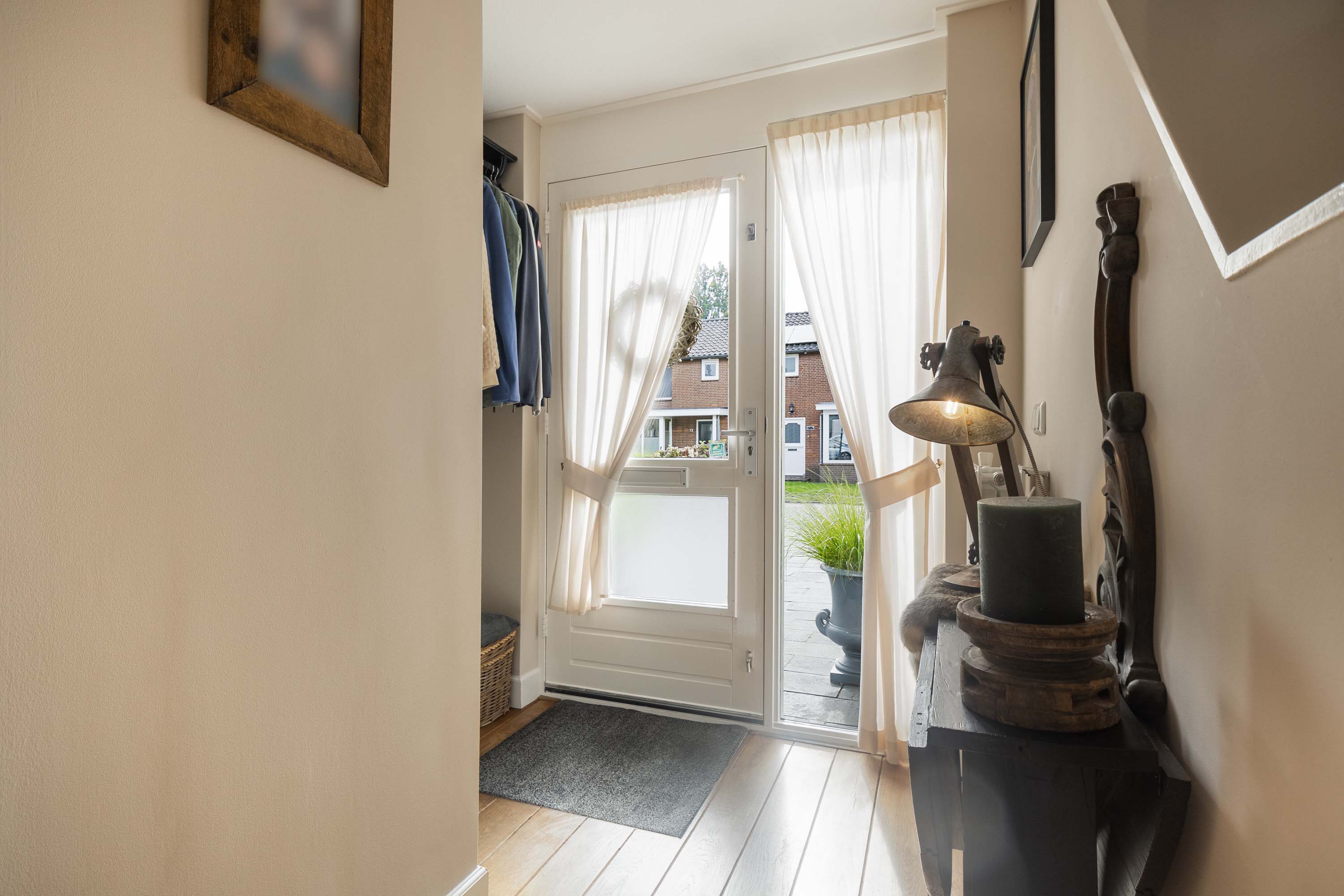Via een ruime oprit met plek voor meerdere auto's bereik je de voordeur. Via de entree, waar de meterkast, trapopgang en een toilet gesitueerd zijn, betreed je de ruime woonkamer. Aan de voorzijde zorgt een grote raampartij voor een overvloed aan natuurlijk licht, waardoor de kamer een warme en uitnodigende sfeer krijgt. Hier is voldoende plaats voor een gezellige zitbank en er bevindt zich een knusse elektrische haard/kachel, ideaal voor sfeervolle winteravonden.