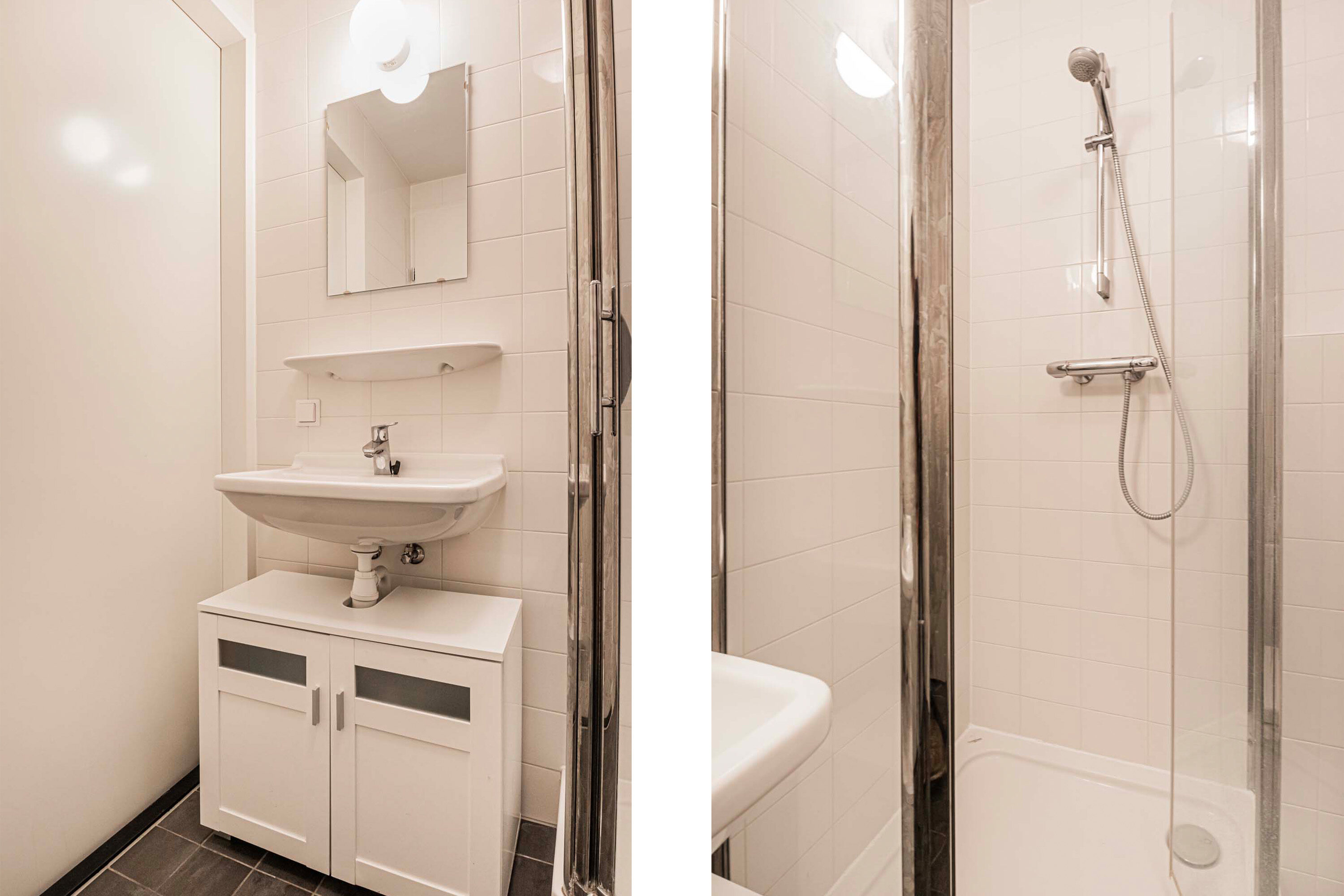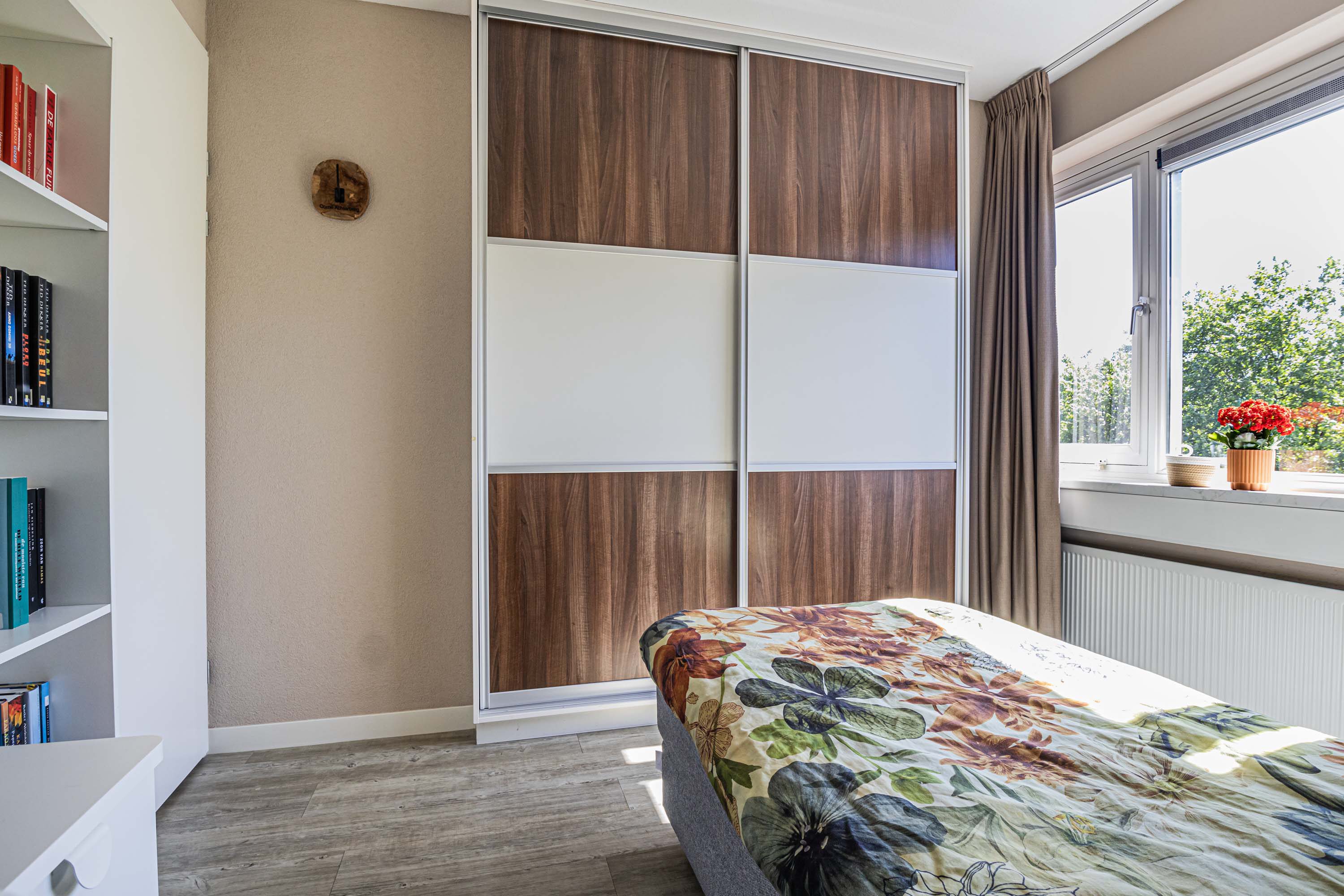 De slaapkamer heeft een afmeting van ca. 9m². De slaapkamer heeft een nette vloer, neutrale wanden en voldoende lichtinval. Door de vaste inbouwkast kan je de kamer ideaal indelen. De badkamer is betegeld in een lichte kleurstelling en beschikt over een douche, wastafel met wastafelmeubel en een zwevend toilet. Achter de badkamer zit een praktische kast waar de C.V.-ketel staat opgesteld en extra opbergruimte biedt.