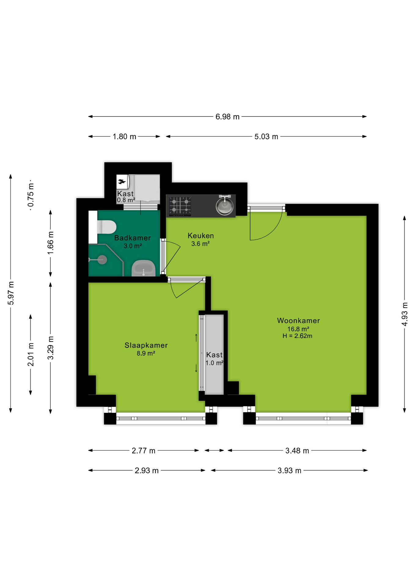 Deze informatie is door ons met de nodige zorgvuldigheid samengesteld. Onzerzijds wordt echter geen enkele aansprakelijkheid aanvaard voor enige onvolledigheid, onjuistheid of anderszins, dan wel de gevolgen daarvan. Alle opgegeven maten en oppervlakten zijn indicatief.