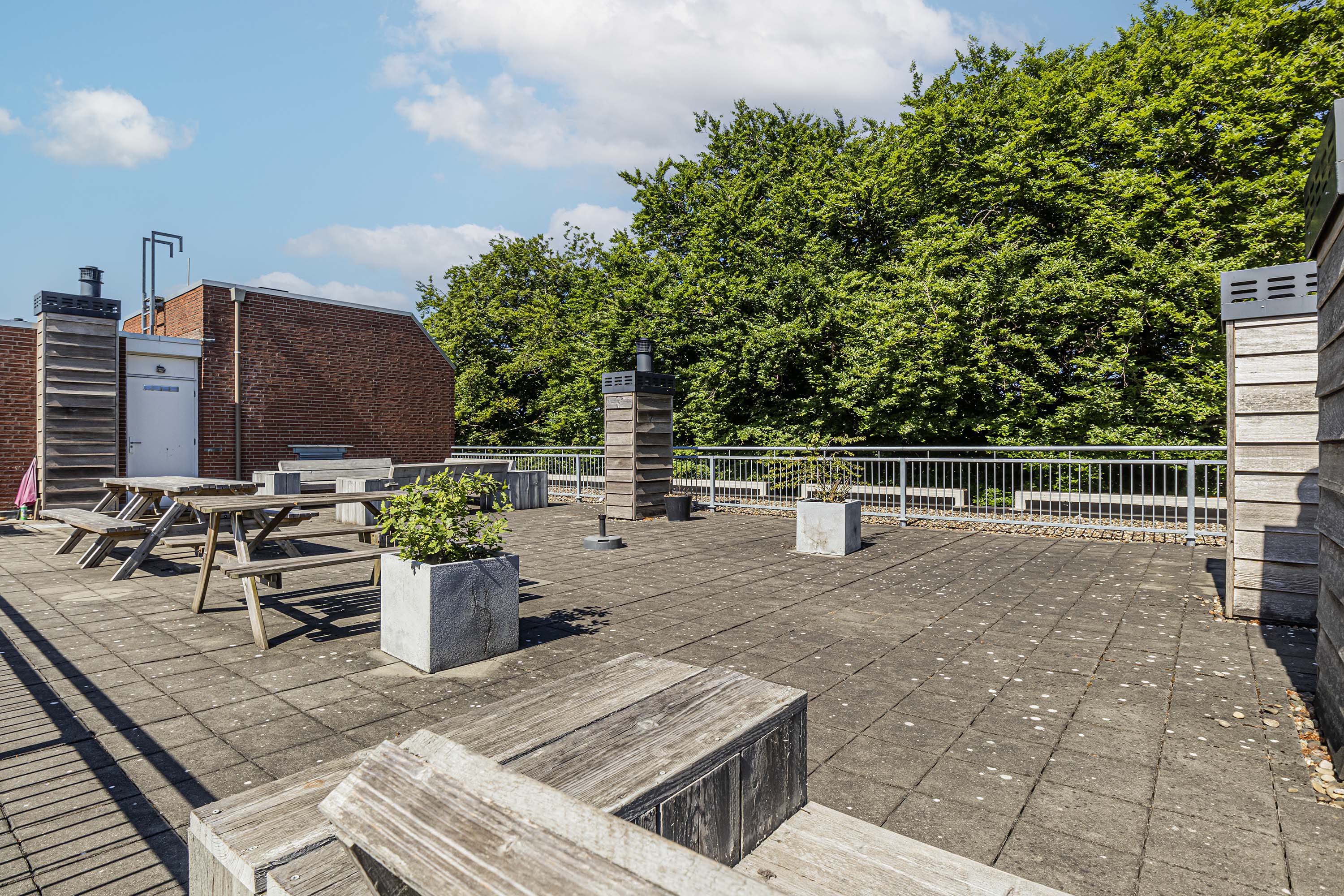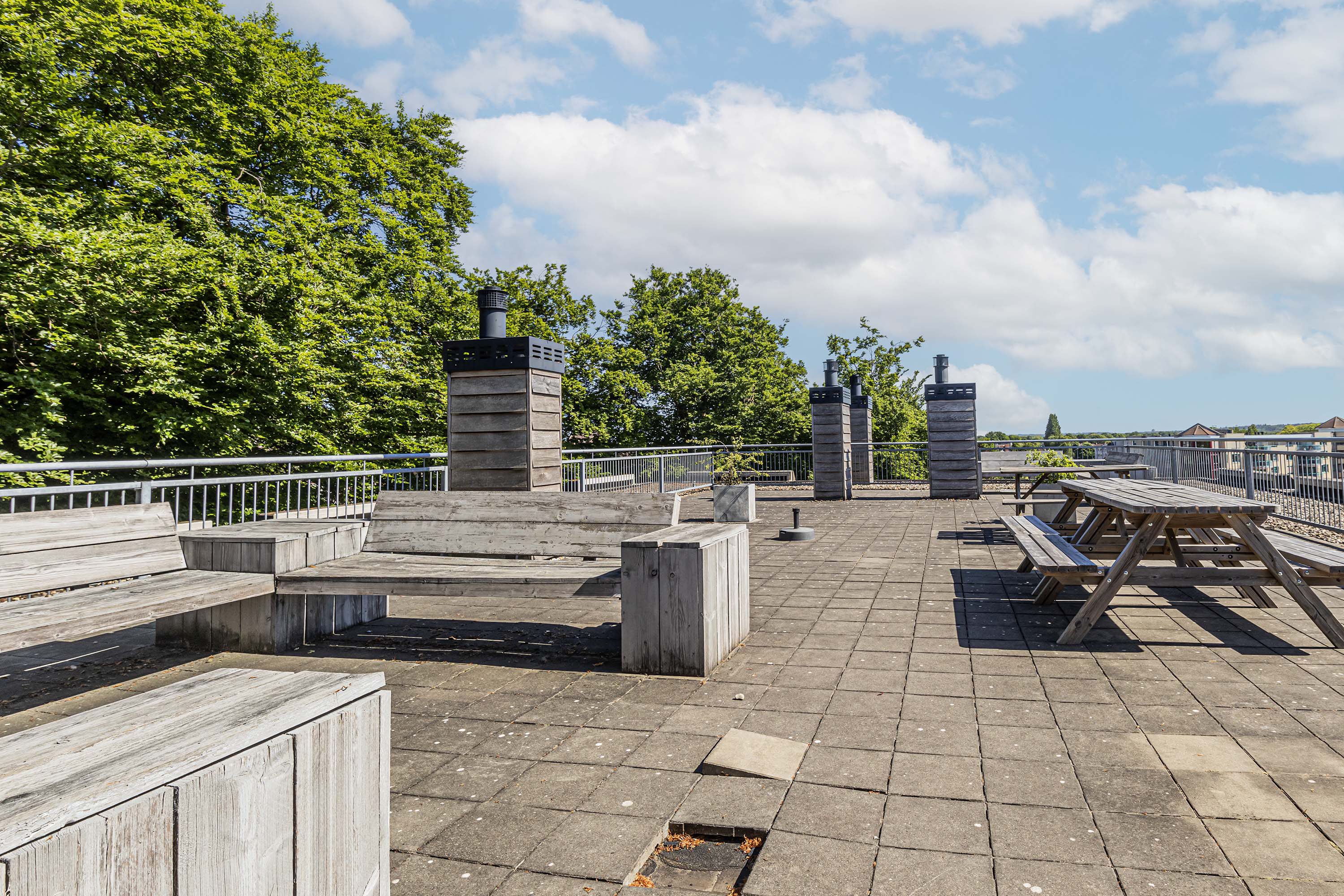 Bij dit fijne appartement, geniet je van een gemeenschappelijk dakterras. Dit zonnige dakterras op het zuidwesten beschikt over houten banken en biedt een vrij uitzicht over Veenendaal en tot aan de Utrechtse Heuvelrug. Tevens is er een ruime fietsenberging in de onderbouw om je fiets veilig te stallen.