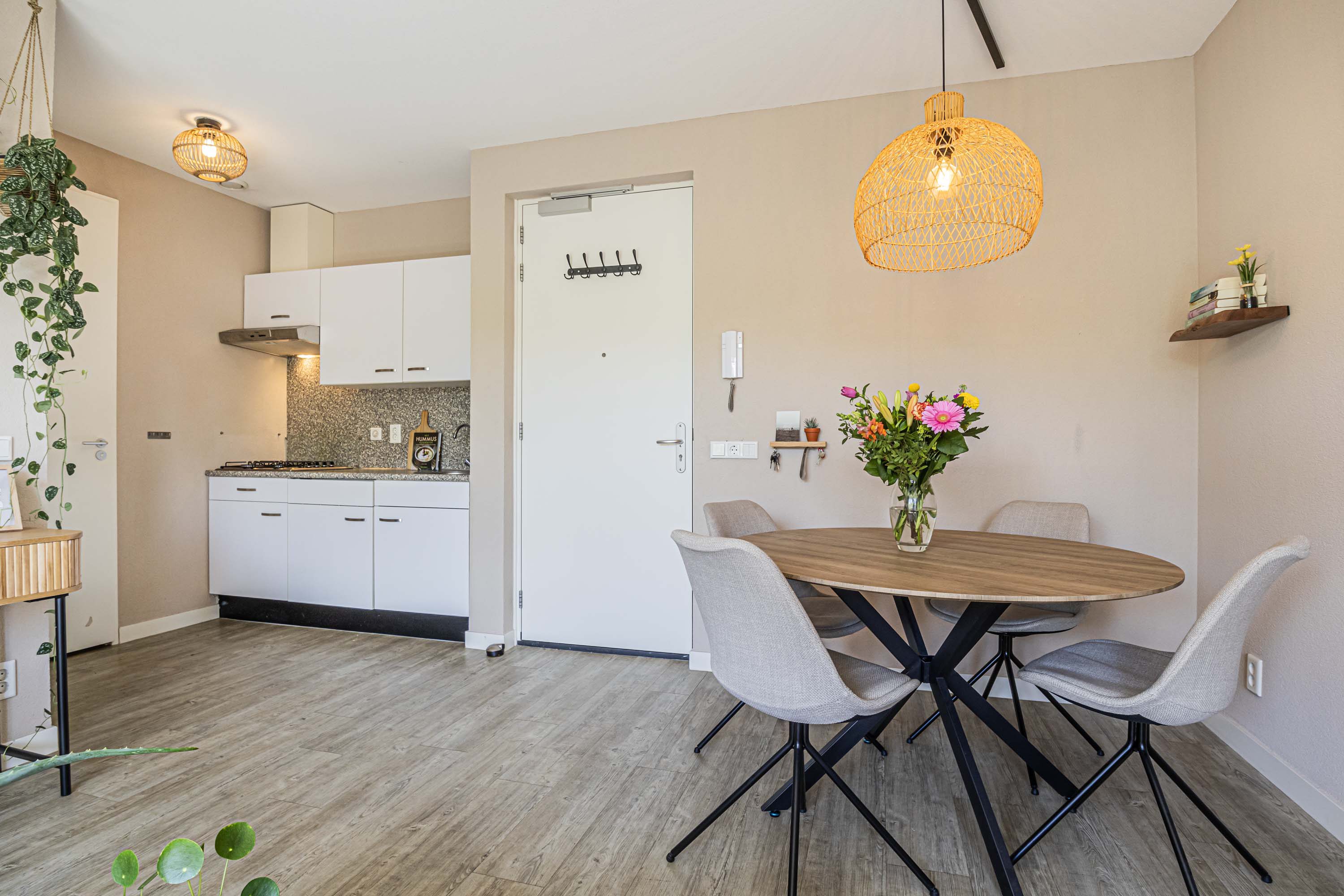 De volgende elementen zullen je ook vast verrassen: sfeervolle woonkamer met heerlijk veel lichtinval, complete openkeuken en een ruime slaapkamer. Het appartement is gelegen op de bovenste verdieping waardoor je hier optimaal kunt genieten van het uitzicht en extra veel privacy. Met alle bewoners deel je verder het royale dakterras waar je heerlijk van het zonnetje kunt genieten.