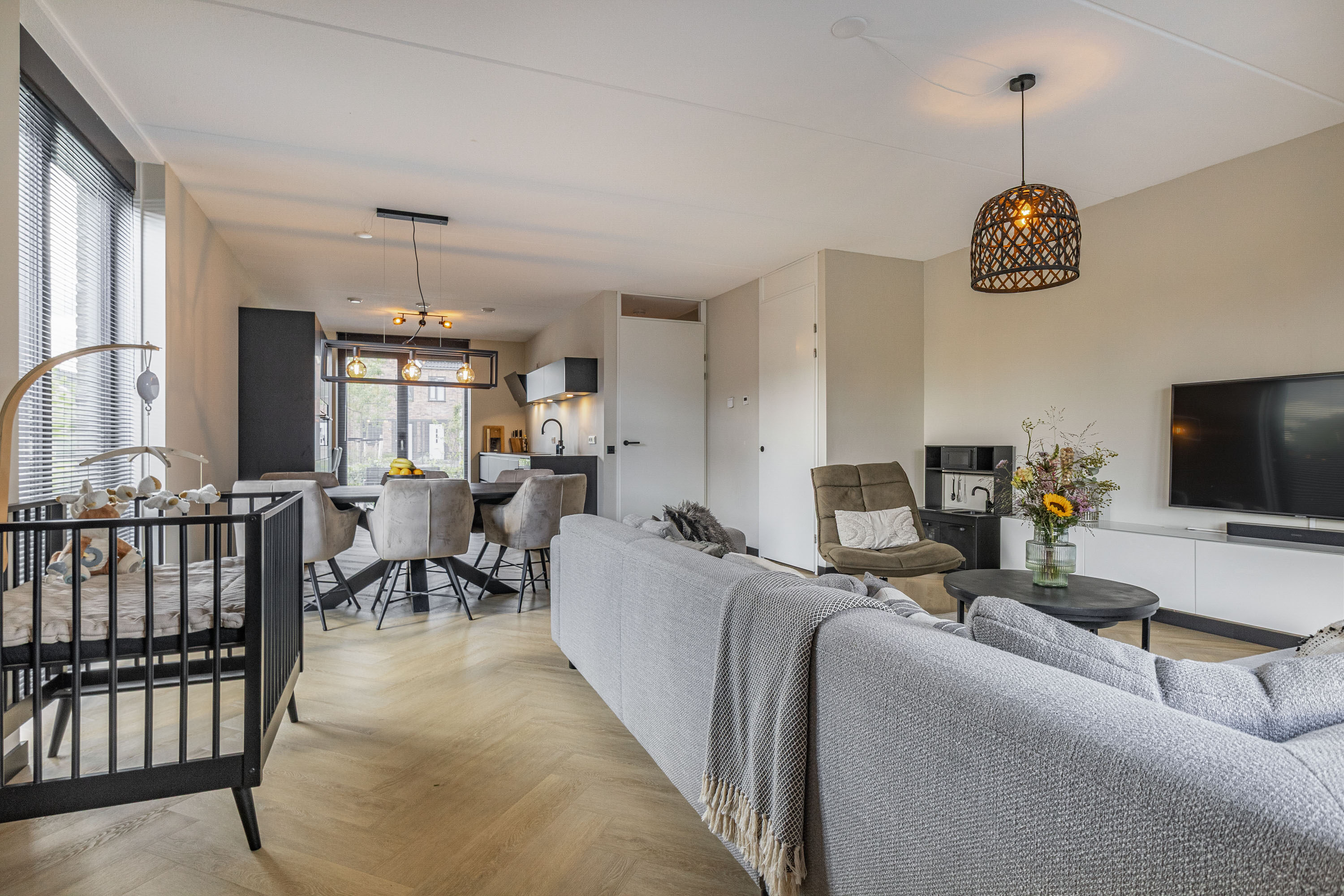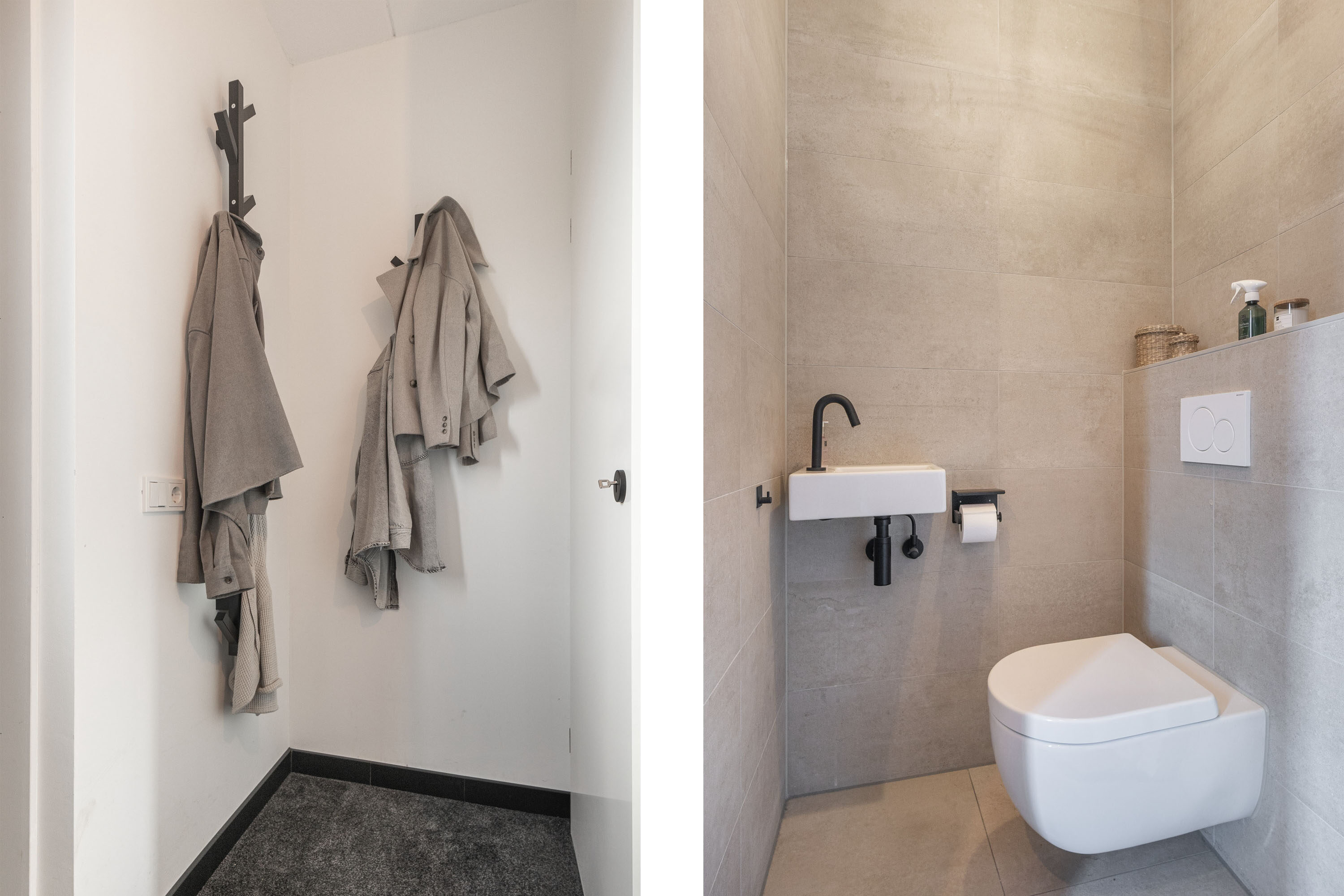 Via de entree kom je bij de hal met meterkast, garderoberuimte, toilet (zwevend) met fonteintje, trap naar de eerste verdieping en deur naar de living. De tuingerichte woonkamer is heerlijk licht en groot genoeg voor een ruime hoekbank plus een gezellige zithoek.