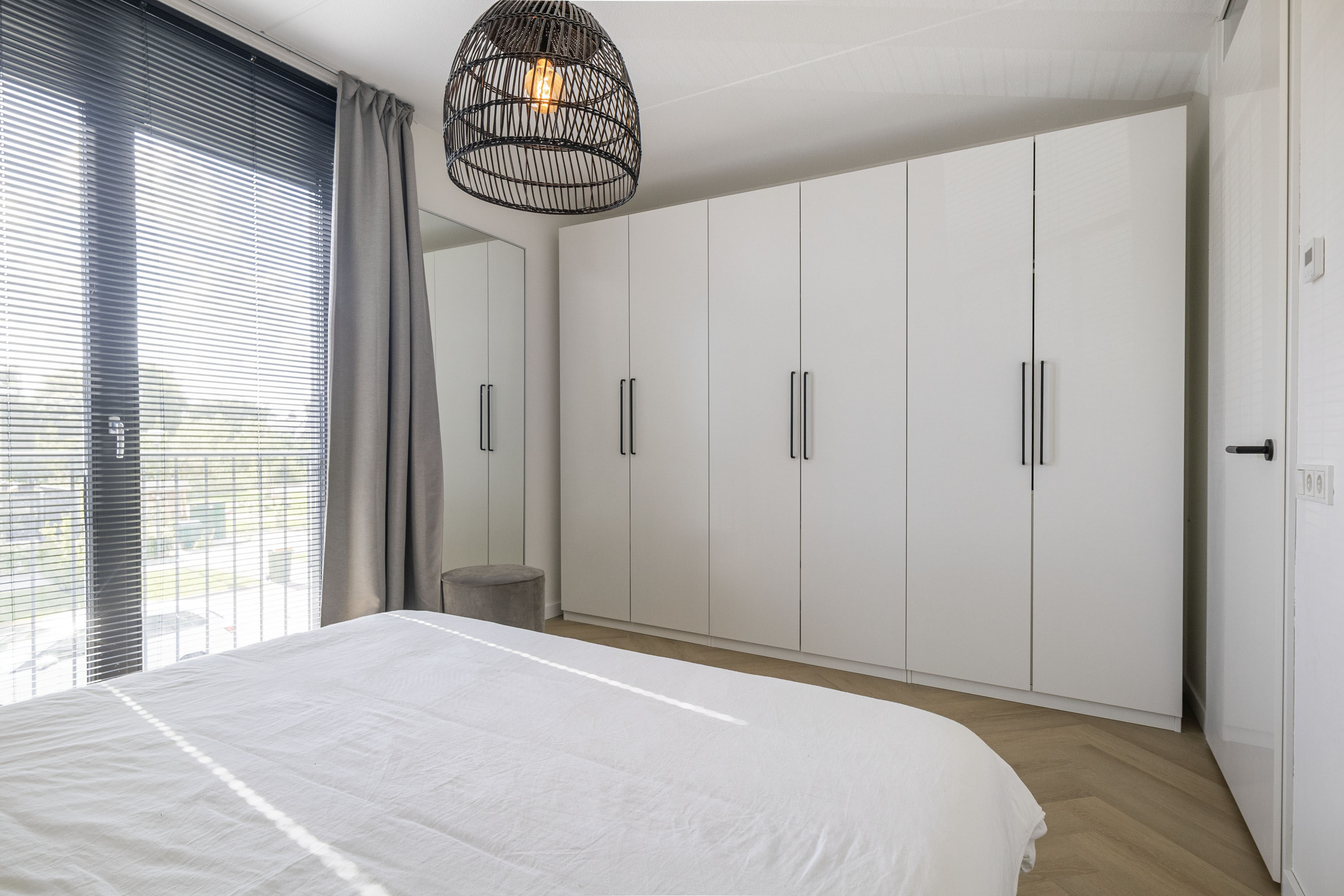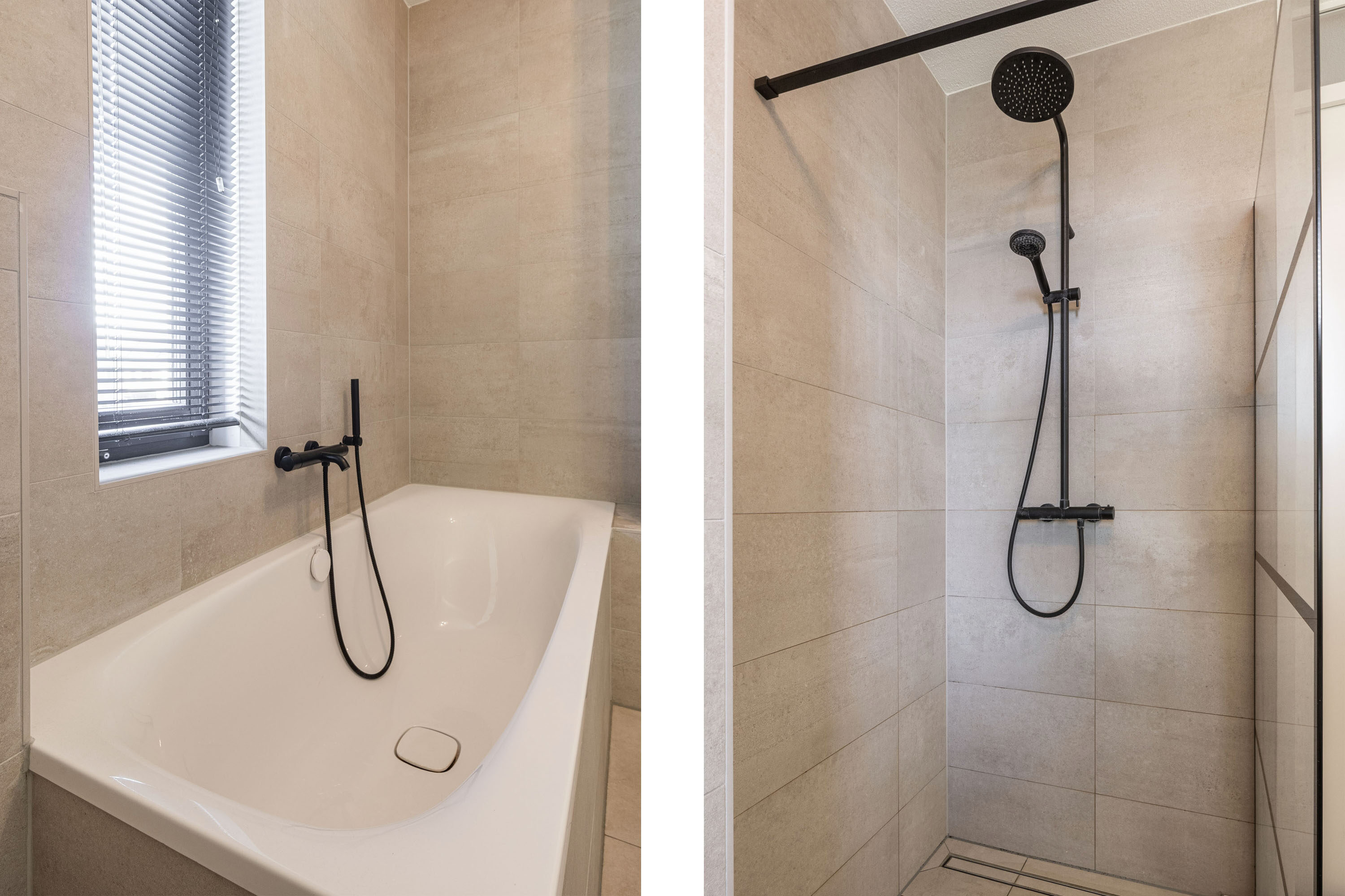 Door middel van de vaste trap kom je op de eerste verdieping, hier loopt de visgraatvloer stijlvol door naar alle drie de slaapkamers. De drie slaapkamers zijn 5,1 m², 10,4 m² en 14,2 m² groot. Twee slaapkamers zijn gelegen aan de achterzijde van de woning en bieden je fijn uitzicht op de verzorgde achtertuin. De master bedroom beschikt tevens over een zijraam waardoor je over zeer veel daglichttoetreding beschikt. De derde slaapkamer is samen met de badkamer gelegen aan de voorzijde van de woning. Ook vanuit deze slaapkamer heb je prettig uitzicht over de voorgelegen groenstrook met kinderspeeltoestellen. Ideaal om je kinderen in de gaten te houden. De badkamer is modern en hotelwaardig: een ligbad voor de relaxmomenten, een ruime inloopdouche, tweede toilet, een strak wastafelmeubel met dubbele wastafel. Ook in de badkamer beschik je over vloerverwarming met koelfunctie. Hoe fijn om het hele jaar door comfort in huis te hebben!