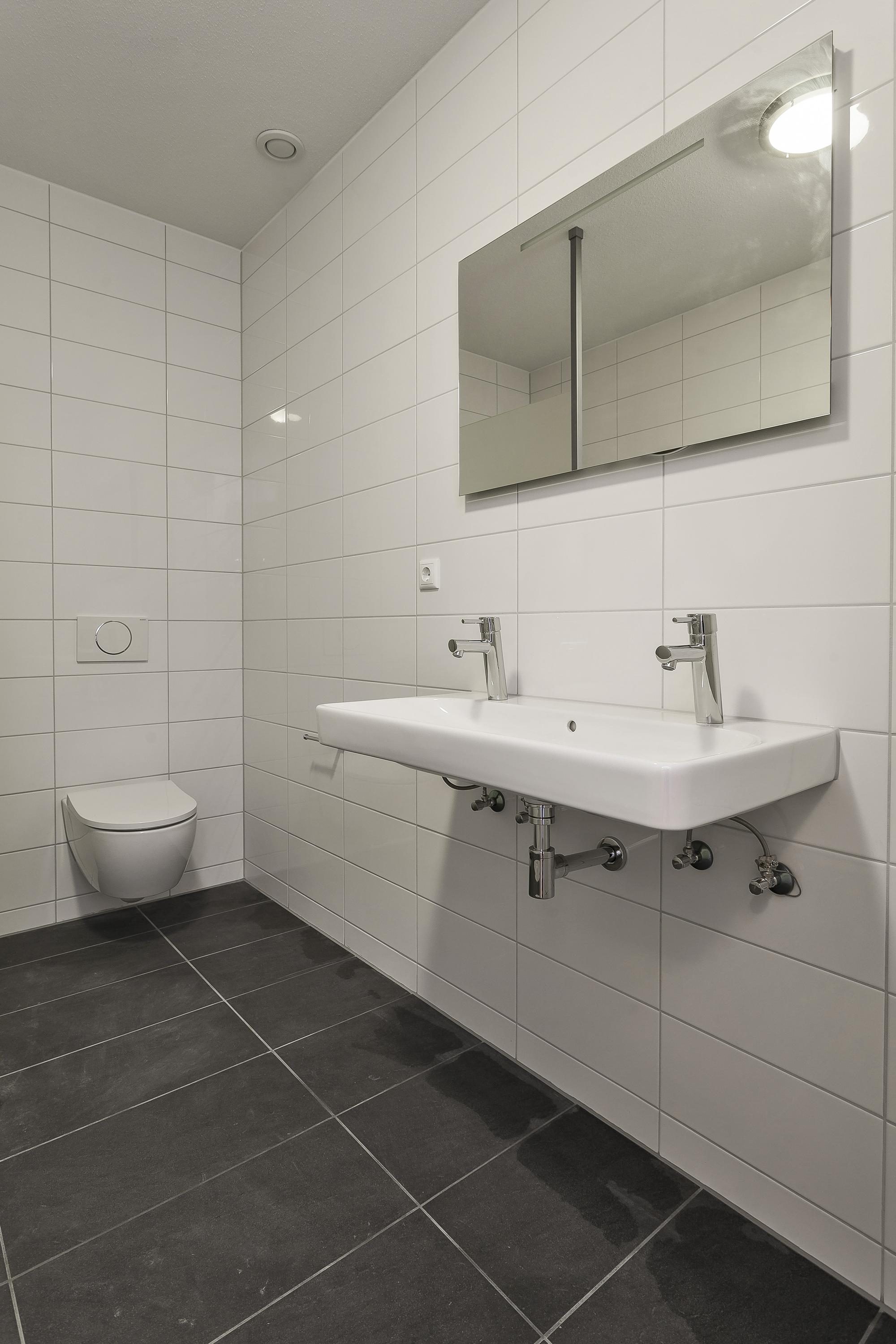 - Eigentijdse badkamer voorzien van wastafel, toilet en inloopdouche;