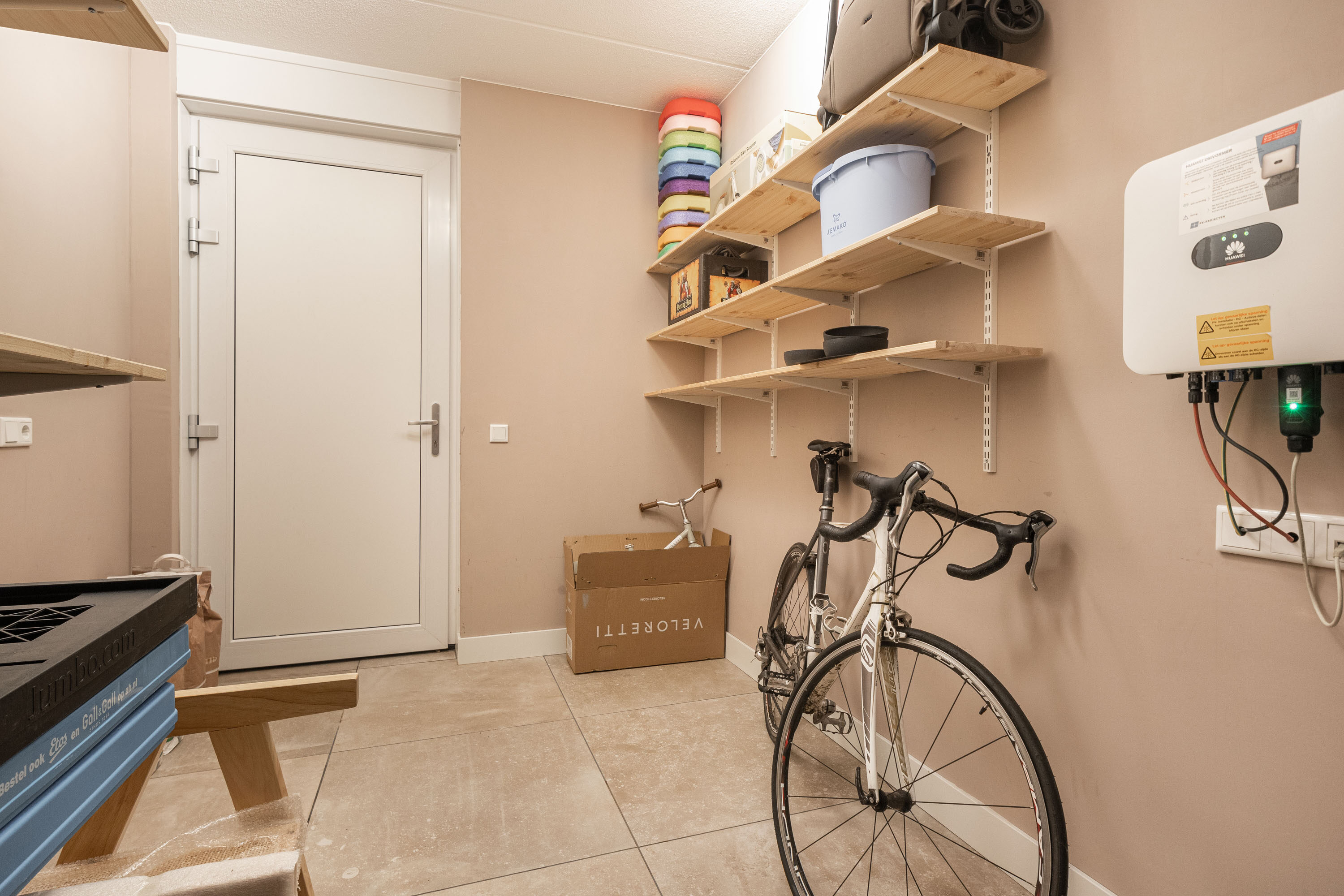Entree met hal, meterkast, modern toilet en trapopgang. Aan de achterzijde van de woning bevindt zich een royale kamer die perfect geschikt is als thuiskantoor, hobbyruimte of extra slaapkamer. Tevens bevindt zich hier de praktische berging met aansluitingen voor de wasmachine. De voortuin ligt gunstig op het westen, hier kun je eventueel ook je eigen auto parkeren.