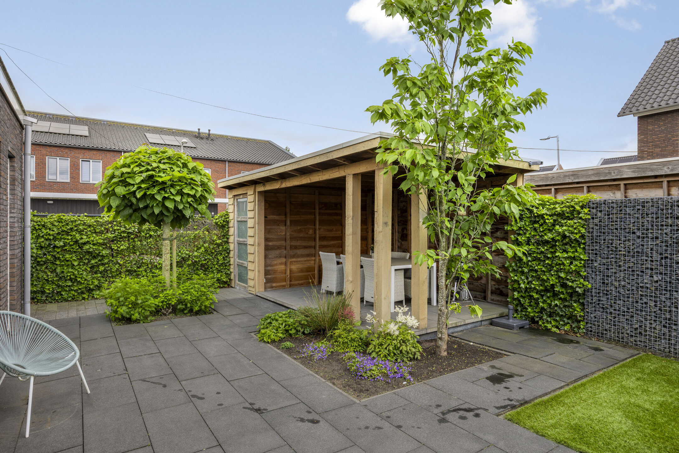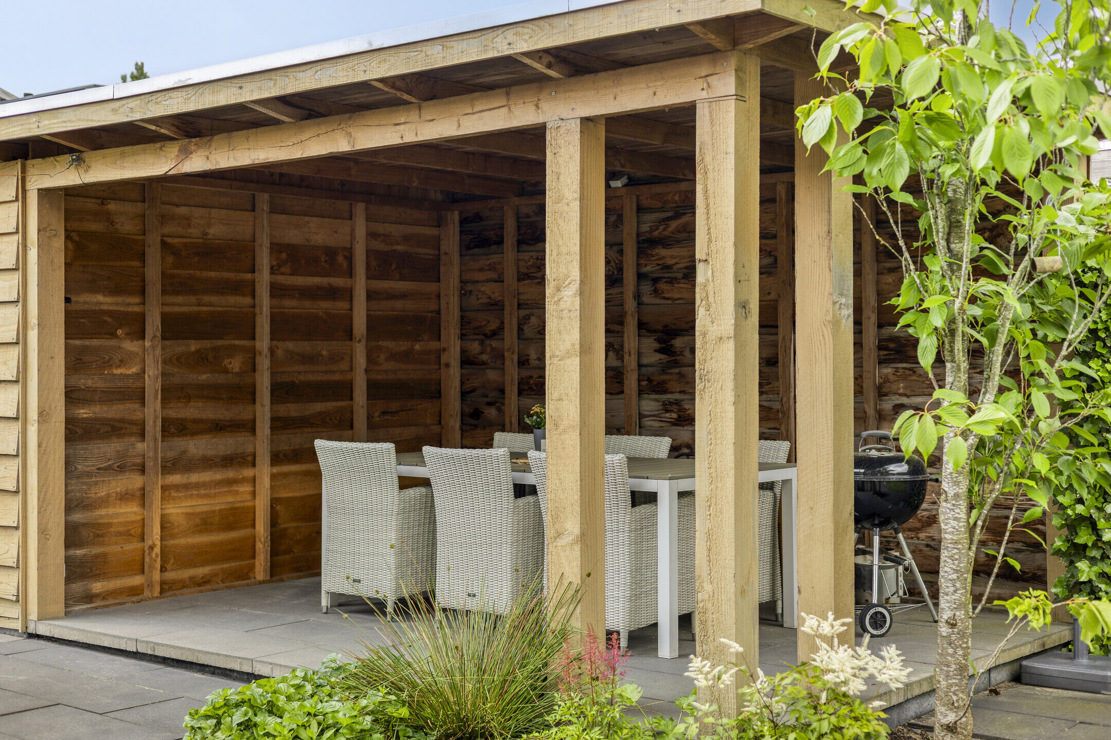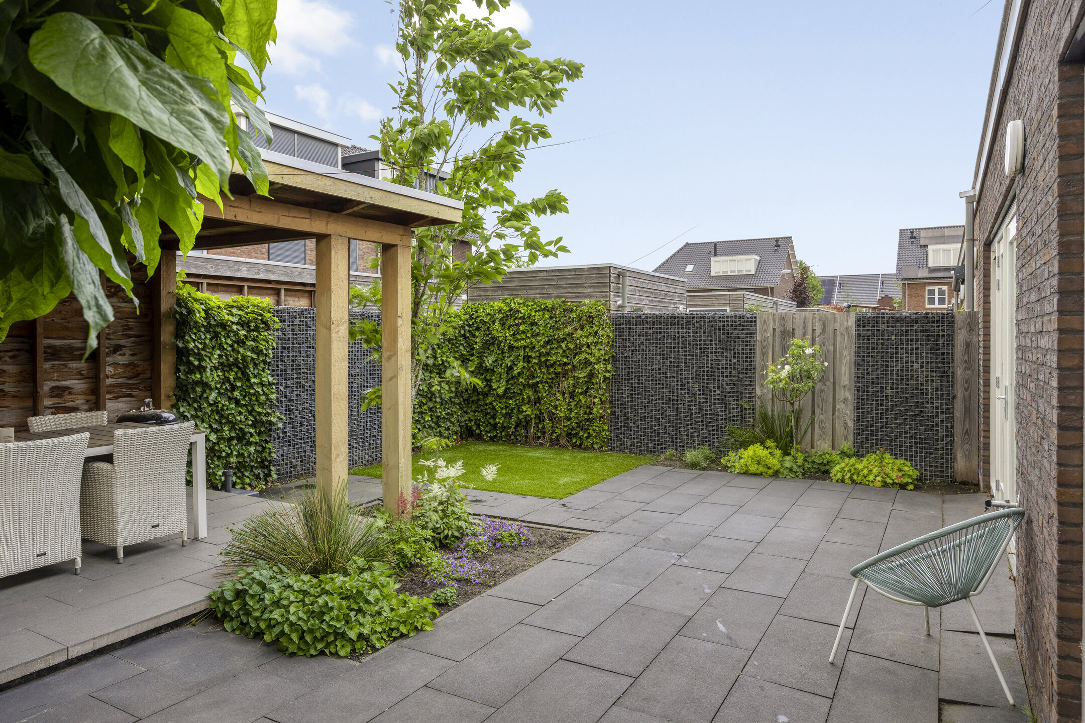 De doordachte inrichting van de tuin maakt het een ideale plek om te genieten van rust, gezelligheid en buitenleven.