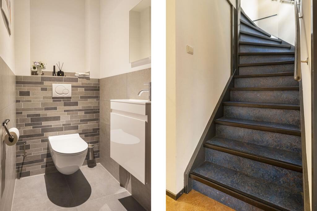 Op deze verdieping bevinden zich tevens twee badkamers. De grootste badkamer is in 2020 volledig gerenoveerd en voorzien van luxe afwerkingen: een grote inloopdouche met regendouche, een dubbele wastafel met bergmeubel, een spiegelkast en een tweede toilet. De tweede badkamer is eveneens netjes afgewerkt en beschikt over een douchecabine en een wastafel – perfect voor gasten, logees of kinderen.