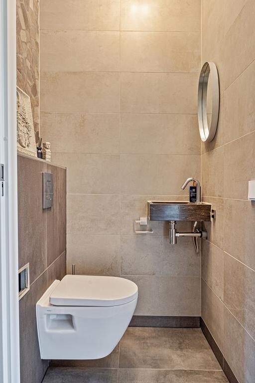 Wanneer je de woning binnenkomt, stap je in de entree, waar je ook de meterkast vindt. Direct naast de entree is er een keurig afgewerkt toilet met een fonteintje. Vanuit de entree leidt een trapopgang je naar de eerste verdieping.