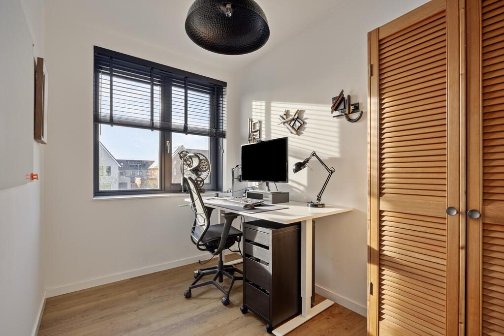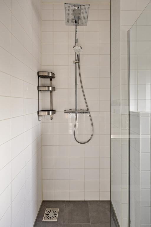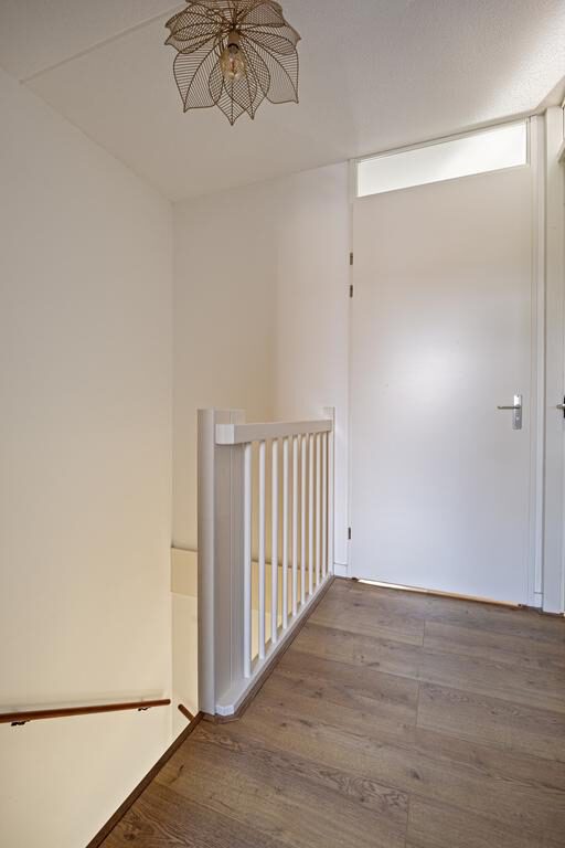 Op de overloop vind je toegang tot verschillende ruimtes. De volledig betegelde badkamer is uitgerust met een toilet, een wastafel, een designradiator en een comfortabele douche. Verder is er een slaapkamer, daarnaast is er een handige berging met een aansluiting voor de wasmachine. De ruime ouderslaapkamer biedt een prachtig uitzicht op de achtertuin, wat zorgt voor een rustige en ontspannen sfeer.