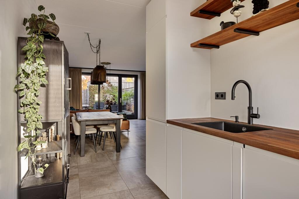De royale woonkamer is echt een blikvanger dankzij de grote raampartijen, die zorgen voor een overvloed aan natuurlijk licht. Vanuit de woonkamer heb je directe toegang tot de tuin, waardoor het binnen-buitenleven naadloos met elkaar verbonden wordt. Aangrenzend aan de woonkamer vind je de moderne keuken, uitgevoerd in een lichte kleurstelling.