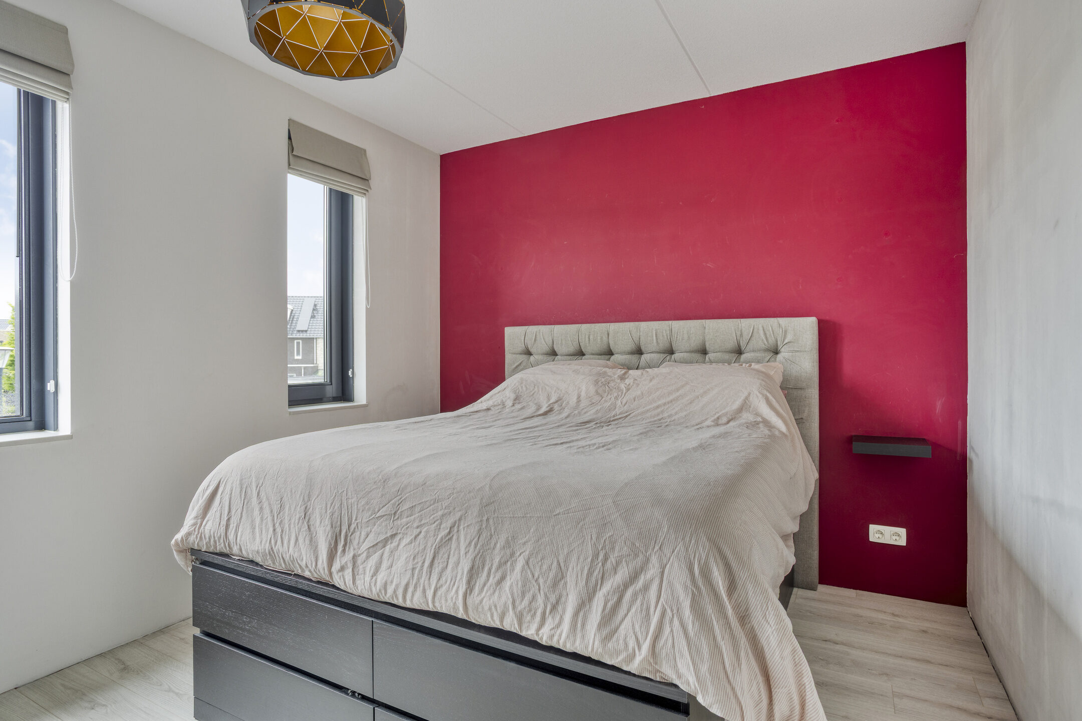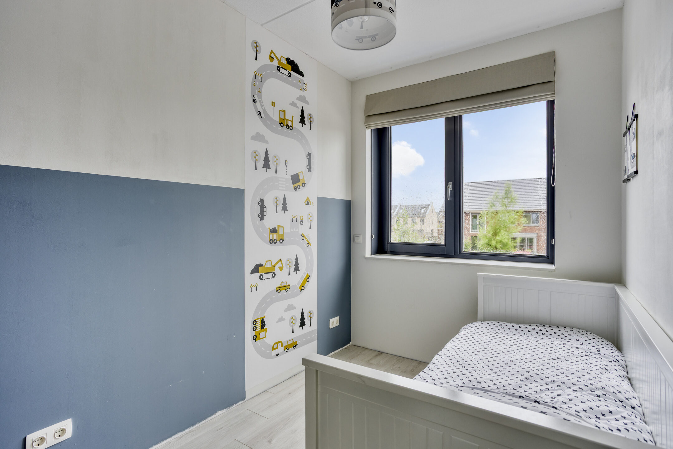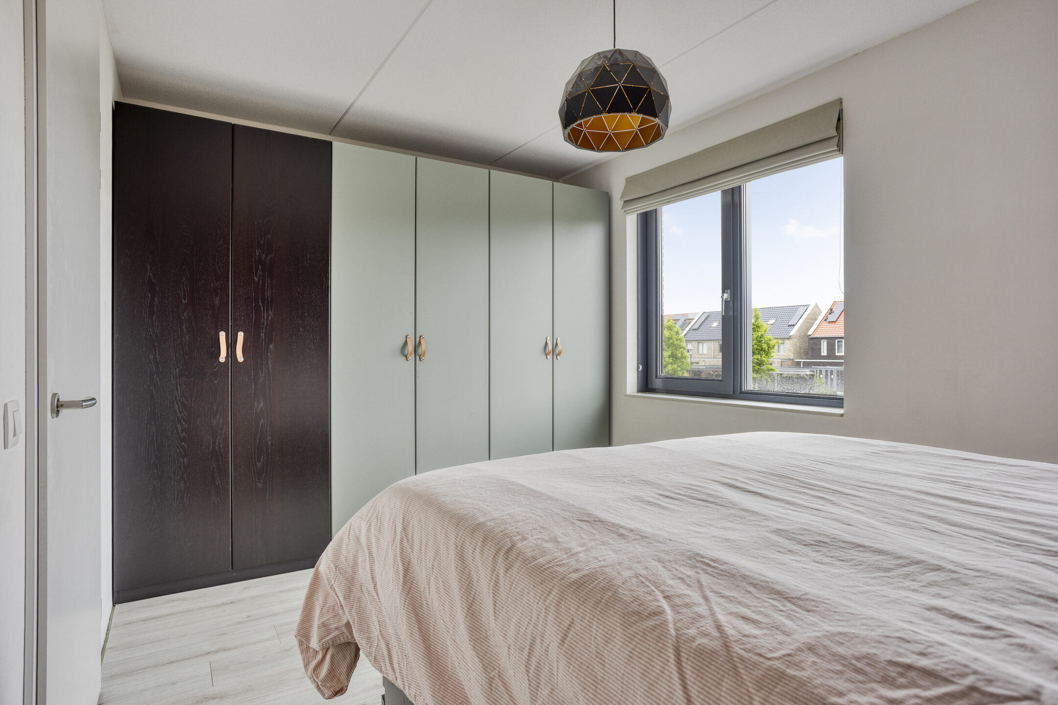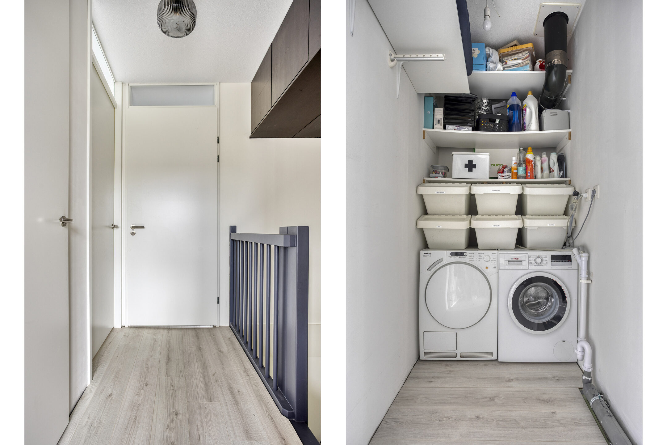 Door middel van de vaste trap kom je op de overloop en vindt je toegang tot verschillende ruimtes. De ruime ouderslaapkamer biedt een prachtig uitzicht op de achtertuin, wat zorgt voor een rustige en ontspannen sfeer, deze verdieping beschikt over nog een fijne slaapkamer. Tevens beschikt de woning over een handige berging met een aansluiting voor de wasmachine. De volledig betegelde badkamer is uitgerust met een toilet, een wastafel in praktisch meubel en een separate hoge kast en een comfortabele douchecabine.