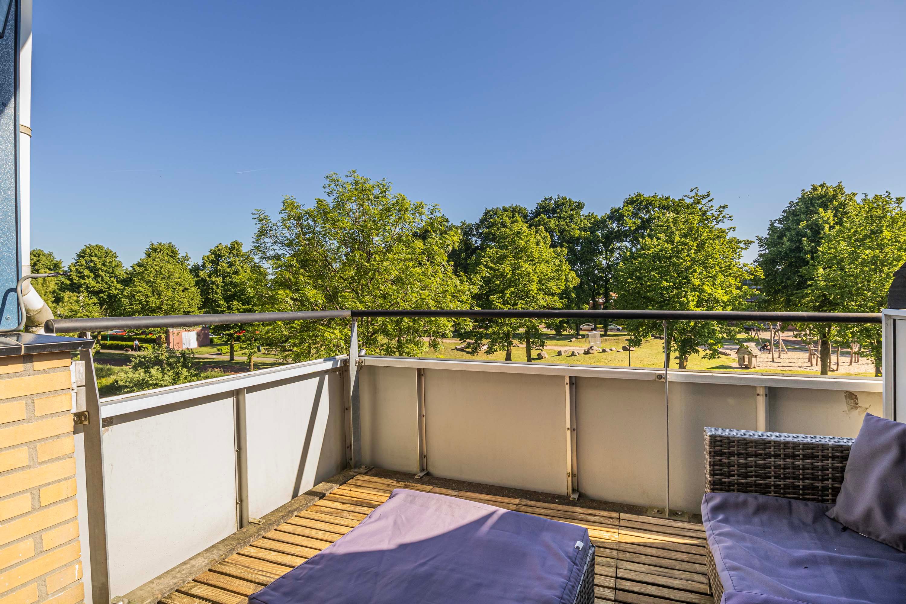 Het fijne balkon van ca. 8m² is gelegen op het noordoosten, een heerlijke plek om te ontspannen na een lange werkdag. Door het fijne uitzicht kom je heerlijk tot rust!