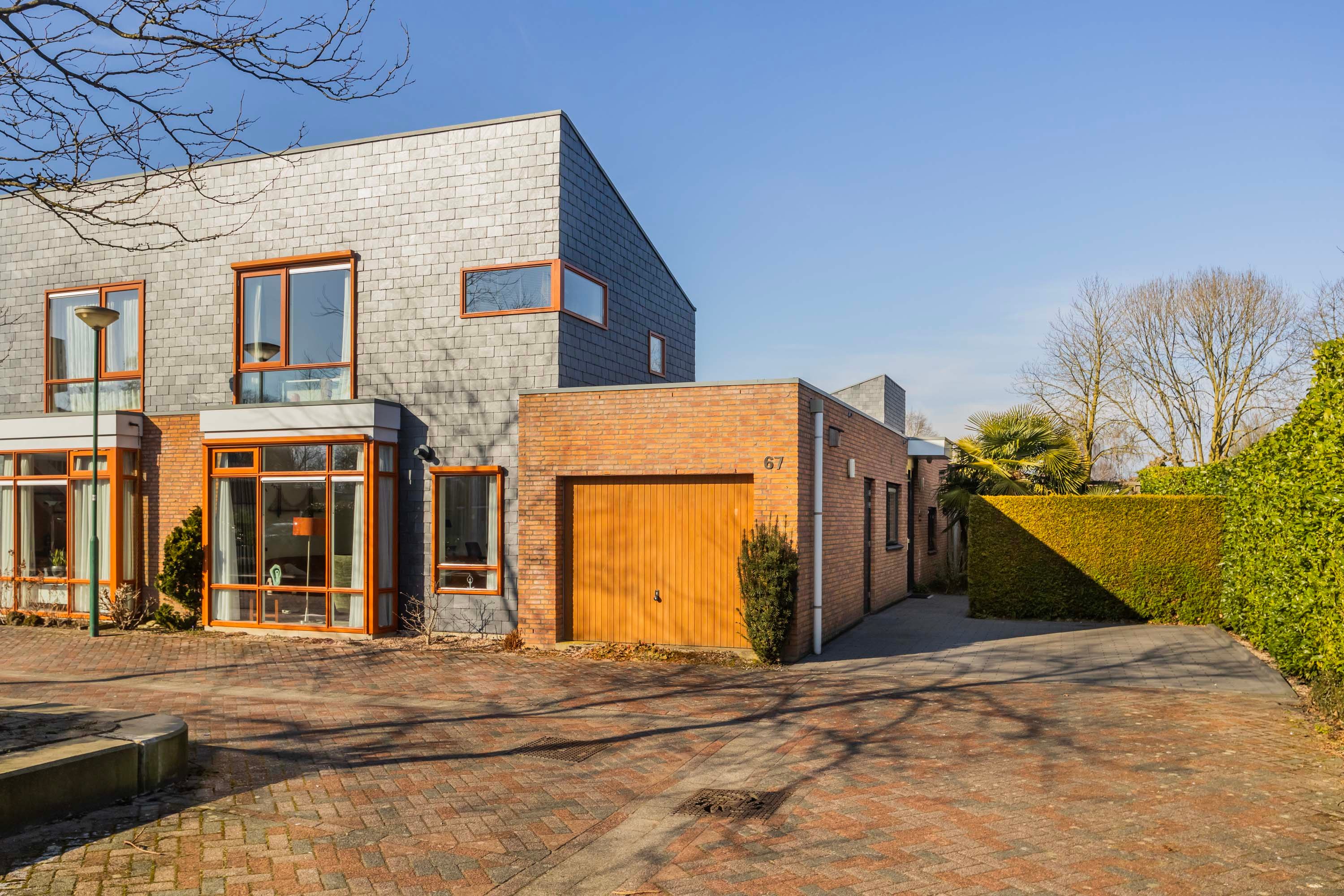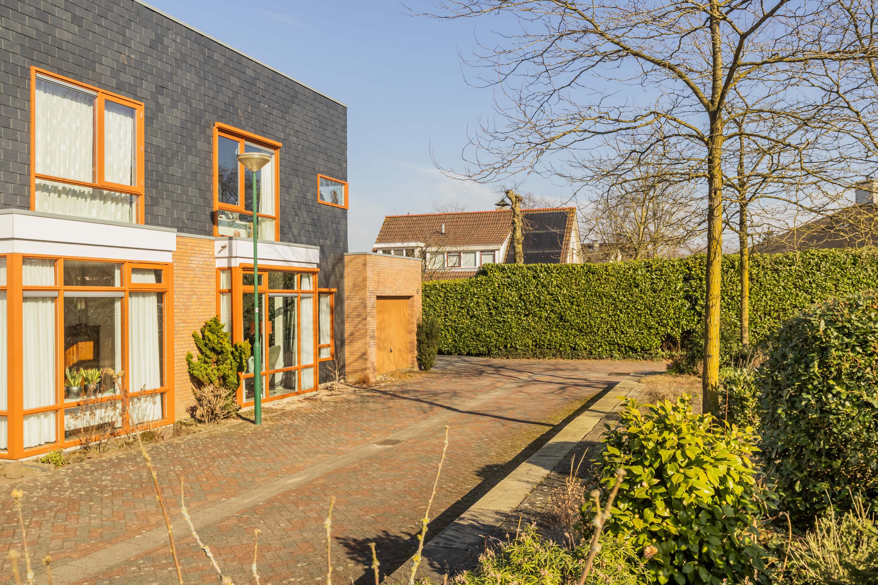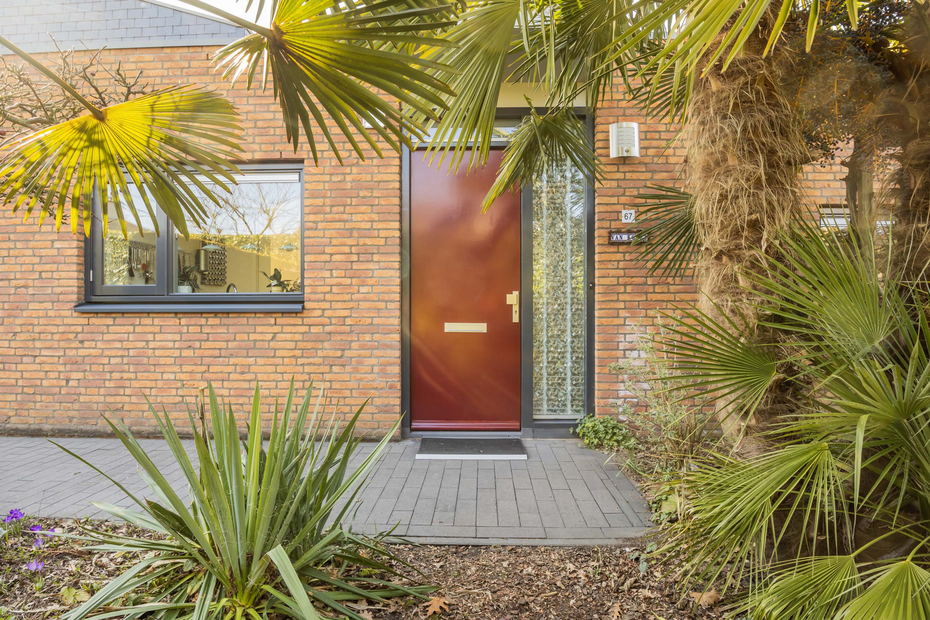 Deze fraaie bungalow heeft naast de besloten patio ook de beschikking over een fraai en verzorgd aangelegde zij-tuin met een sfeervol en privacy rijk terras met tropische uitstraling door de specifieke beplanting met onder andere palmbomen, pergola met druiven, kiwi’s en overige beplanting. De inpandige garage/berging is eveneens via de zij-tuin bereikbaar en is ook voorzien van een kanteldeur (thans buiten gebruik). Aan de voorzijde van deze woning heb je de beschikking over parkeerruimte voor twee auto’s en de opstelling voor de kliko’s.