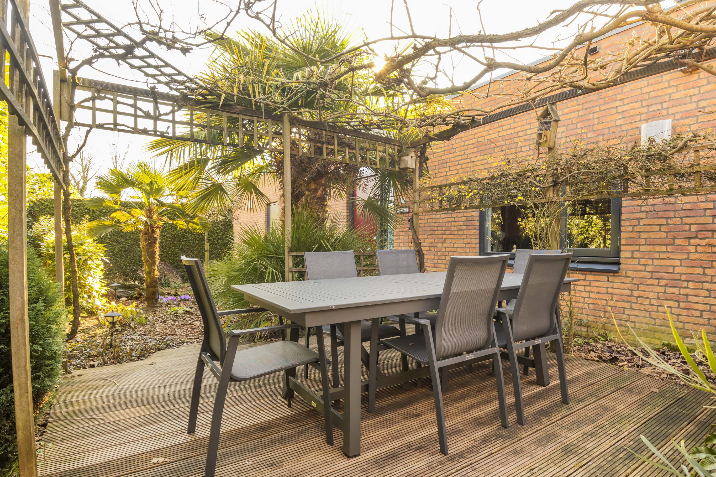 Levensloopbestendige woning met patio en zij-tuin.