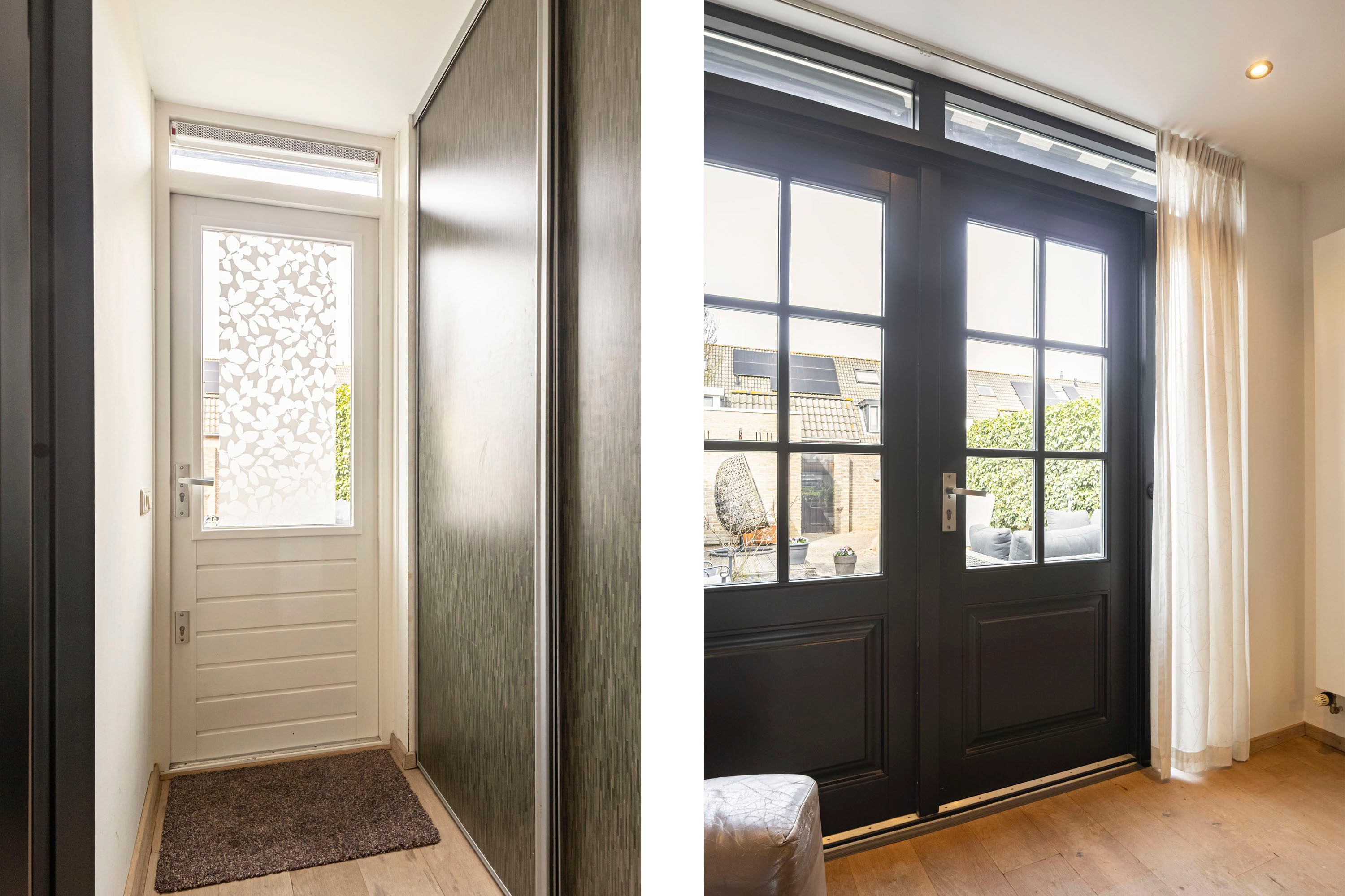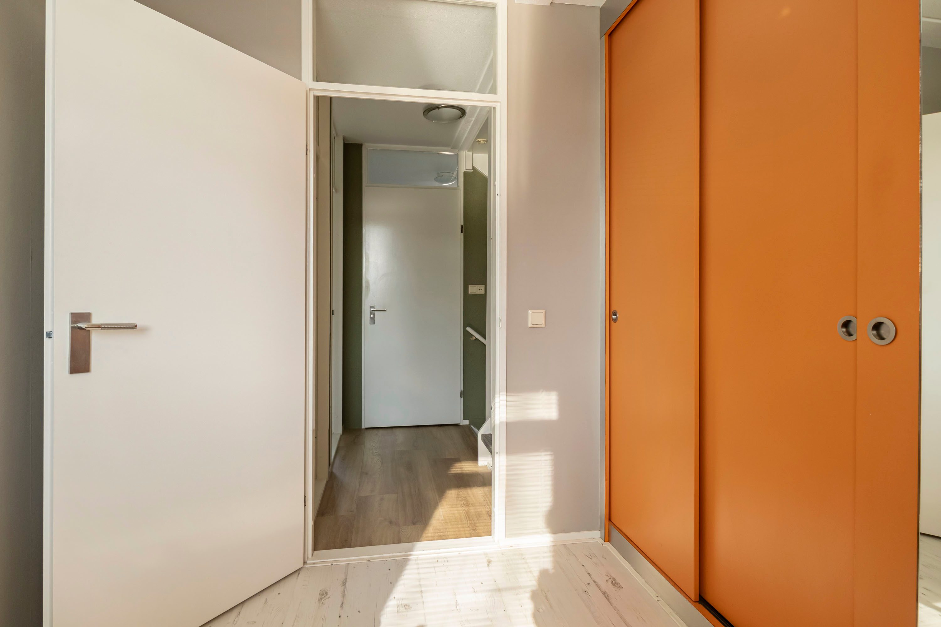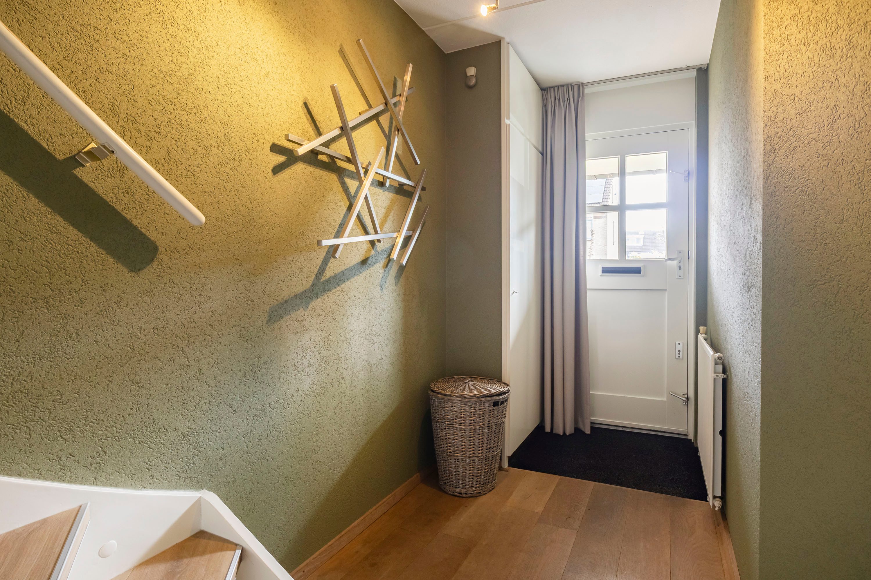 Via een kleine tussenhal bereik je extra kastruimte en de toegang naar buiten.