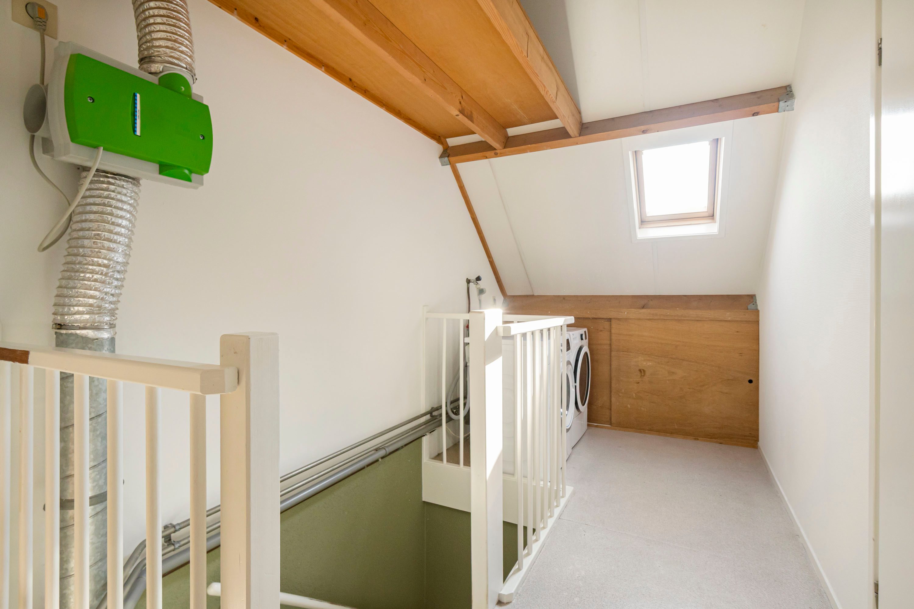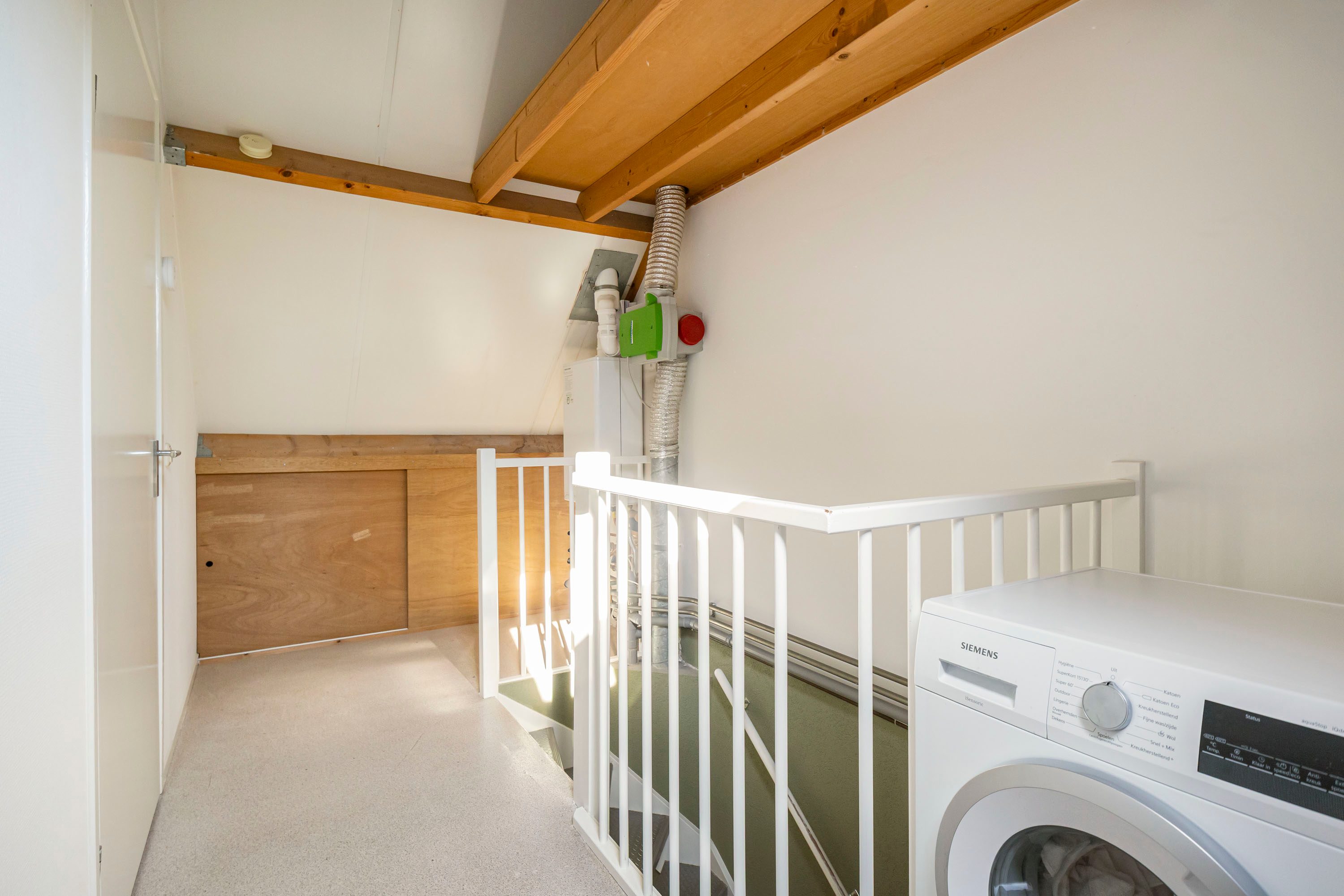 Dankzij de afmetingen en indeling voelt deze verdieping niet als “extra”, maar als een volwaardig onderdeel van de woning. Daarnaast zijn hier de aansluitingen voor de wasmachine, waardoor je deze etage praktisch kunt inrichten met een aparte wasruimte.