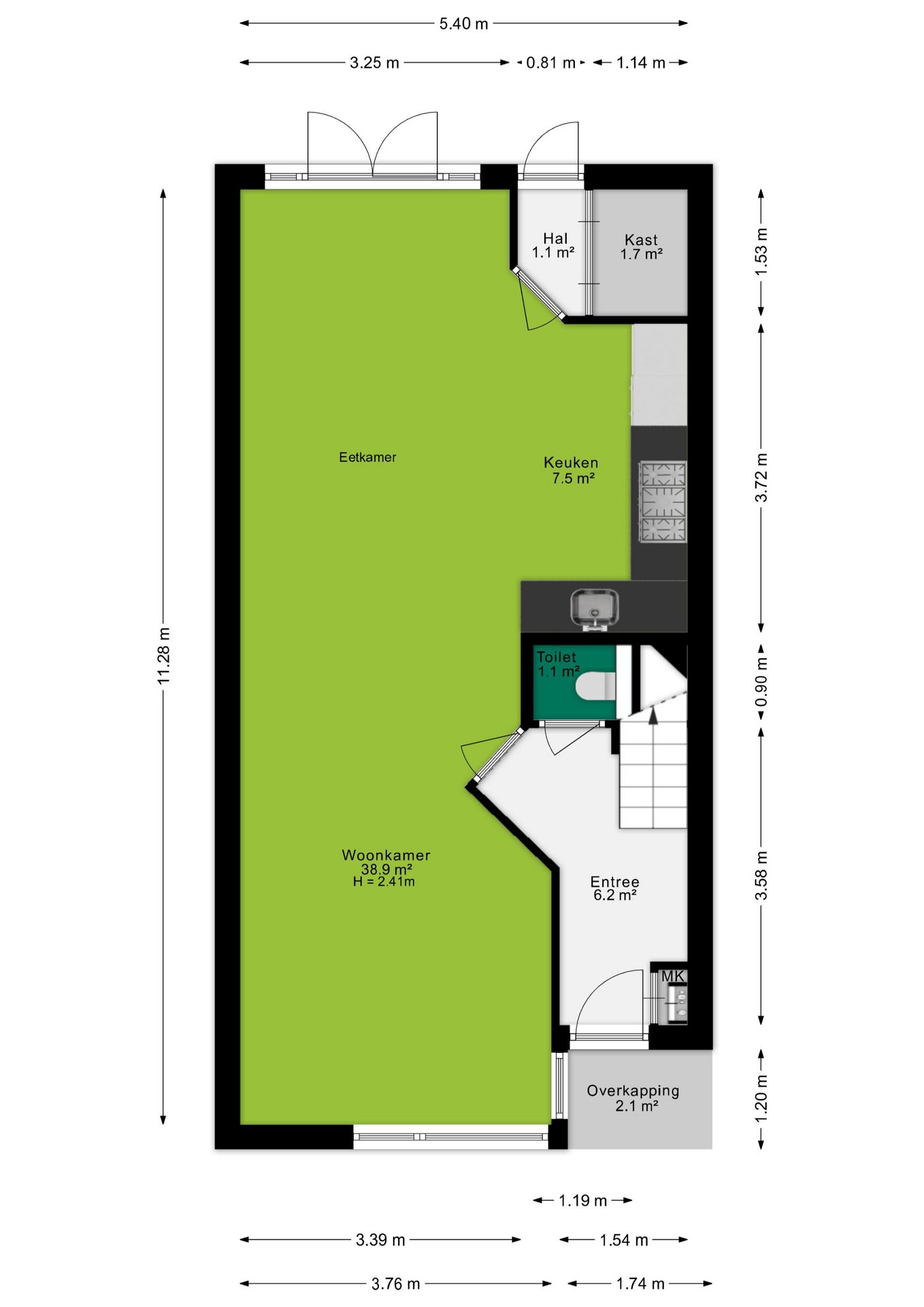 • Ruime en lichte leefruimte