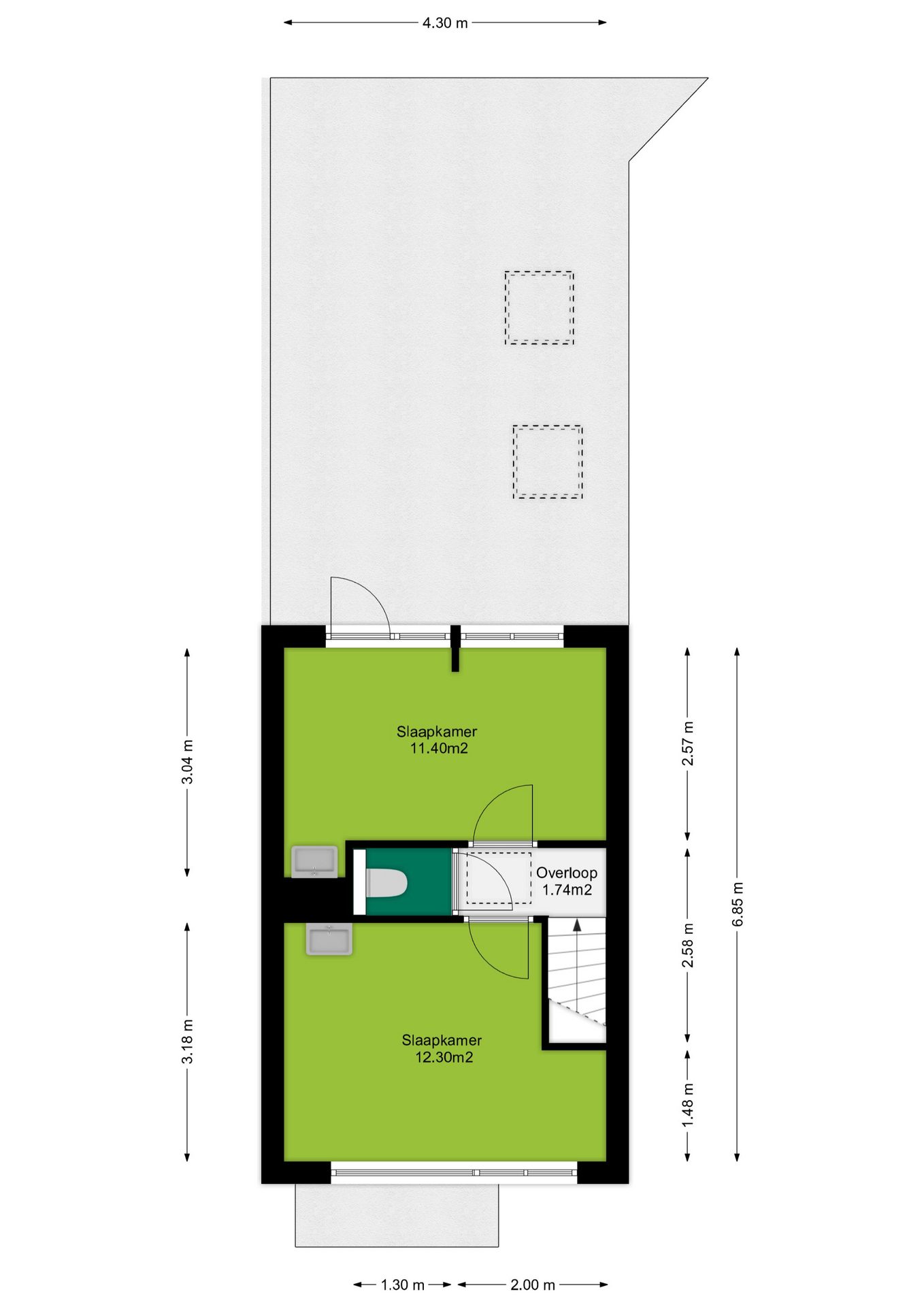 De overloop verbindt alle vertrekken op de bovenverdieping, waaronder twee riante slaapkamers die dankzij grote ramen baden in het daglicht. Een extra toiletruimte op deze verdieping zorgt voor extra comfort. Voor extra opslag is er een handige bergvliering aanwezig. De buitenruimte is een heerlijke plek om te vertoeven; de zonnige tuin op het zuidoosten beschikt over een royale schuur van 25 m². Dankzij de achterom via de zijsteeg zijn de tuin en berging uitstekend bereikbaar