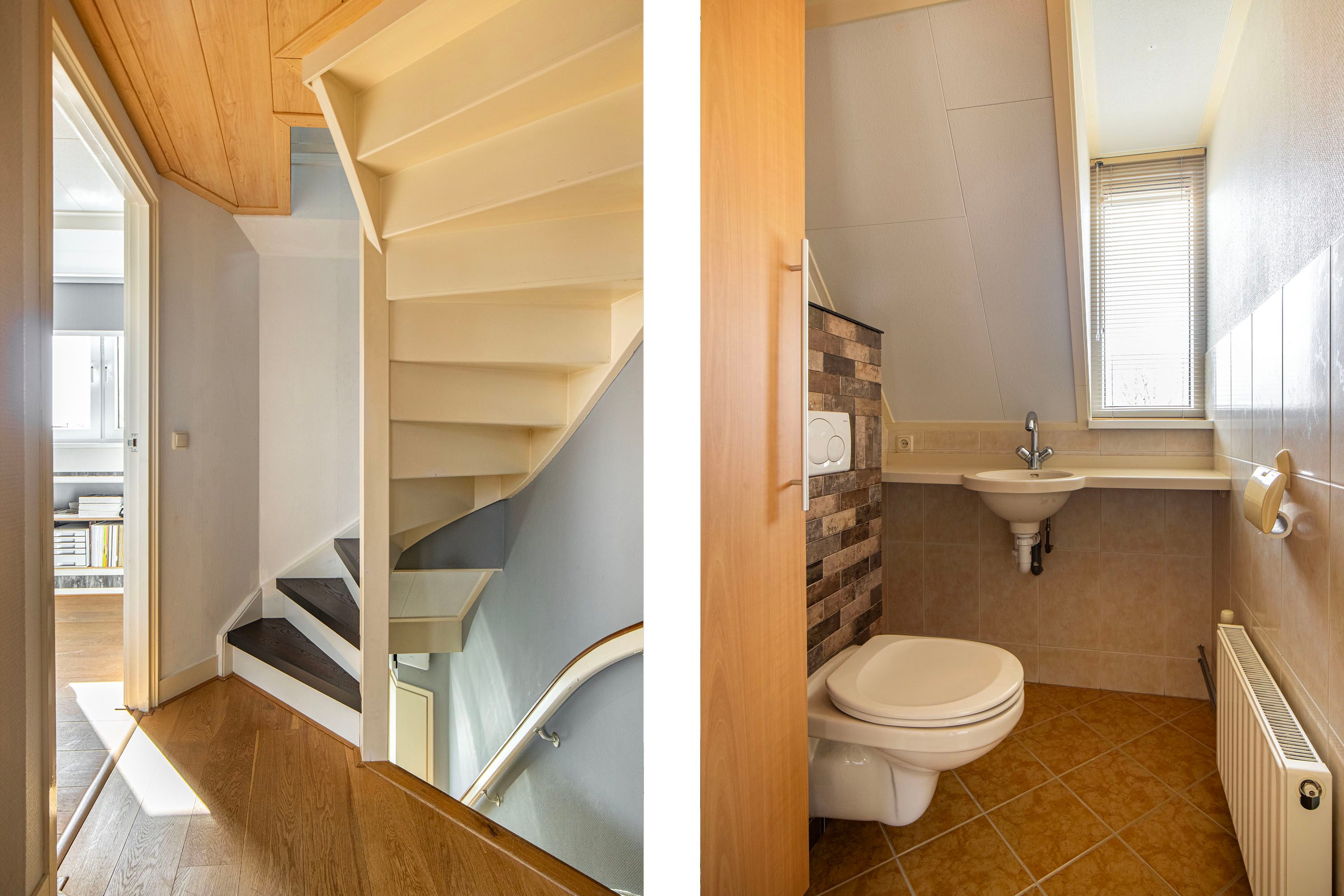 1e verdieping: De overloop geeft toegang tot twee comfortabele slaapkamers van ca. 8 m² en 7 m². Beide kamers zijn praktisch in te delen en beschikken over een prettige lichtinval. Uniek voor deze bouwperiode is de aanwezigheid van een tweede toilet op deze verdieping, wat zorgt voor optimaal gebruiksgemak. De airconditioning zorgt hier ook in de zomer voor een heerlijke nachtrust.