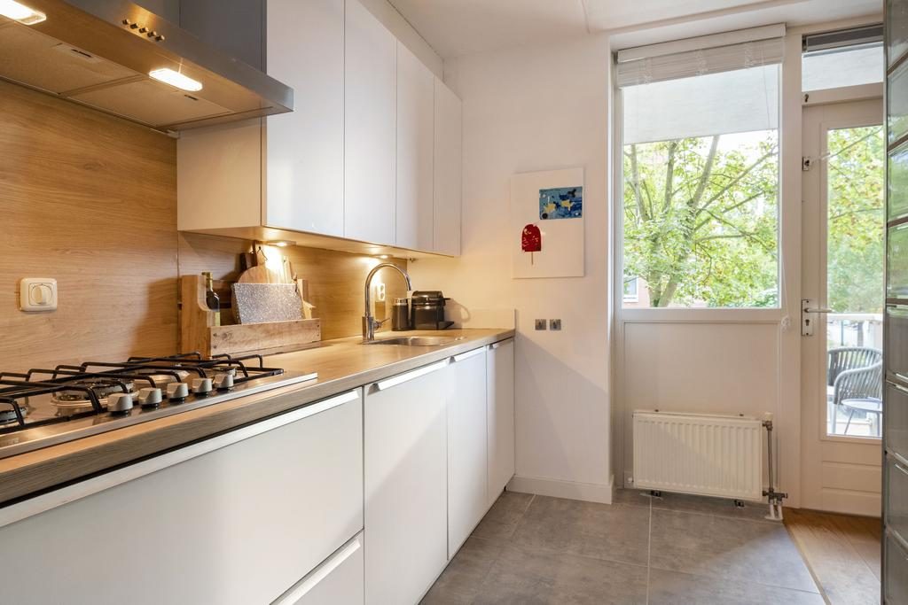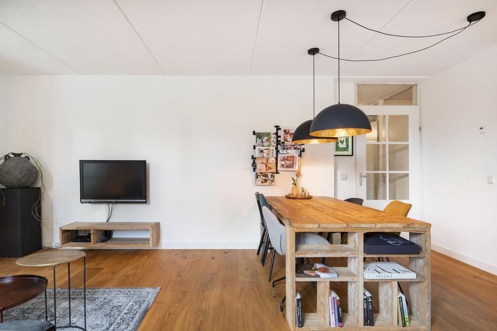 De heerlijk ruime, maar ook lichte, woonkamer beschikt over veel natuurlijk licht maar ook een ruimtelijk gevoel. Centraal tussen de woonkamer en keuken bevindt zich het eetgedeelte. Hier is meer dan voldoende ruimte voor een eettafel met stoelen. Een fijne plek om met familie en/of vrienden te genieten van een hapje, drankje en spelletje! Vanuit de woonkamer loop je naar de half open keuken. De moderne keuken is voorzien van vaatwasser, 5-pits gaskookplaat, afzuigkap, koel/vriescombinatie en combi-oven/magnetron. Via de woonkamer/keuken is er toegang tot een gezellig en ruim balkon (ca 6 m2) met vrij uitzicht.