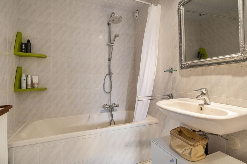 Eenmaal teruggekomen in de hal heb je toegang tot de 2 slaapkamers en ook de betegelde badkamer met ligbad en wastafel, de toiletruimte met fonteintje en een ruime berging met wasmachineaansluiting en C.V.-ketel.