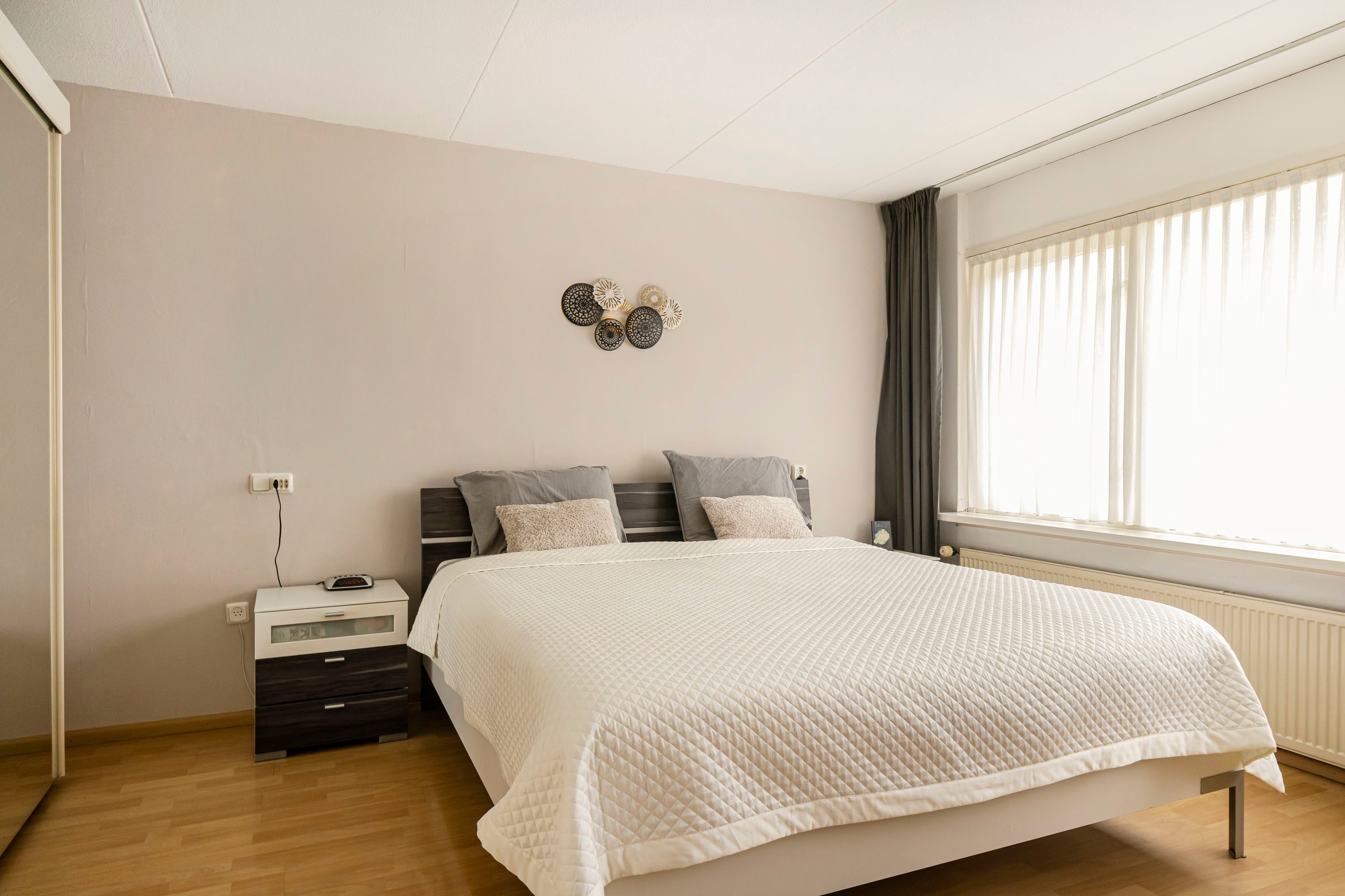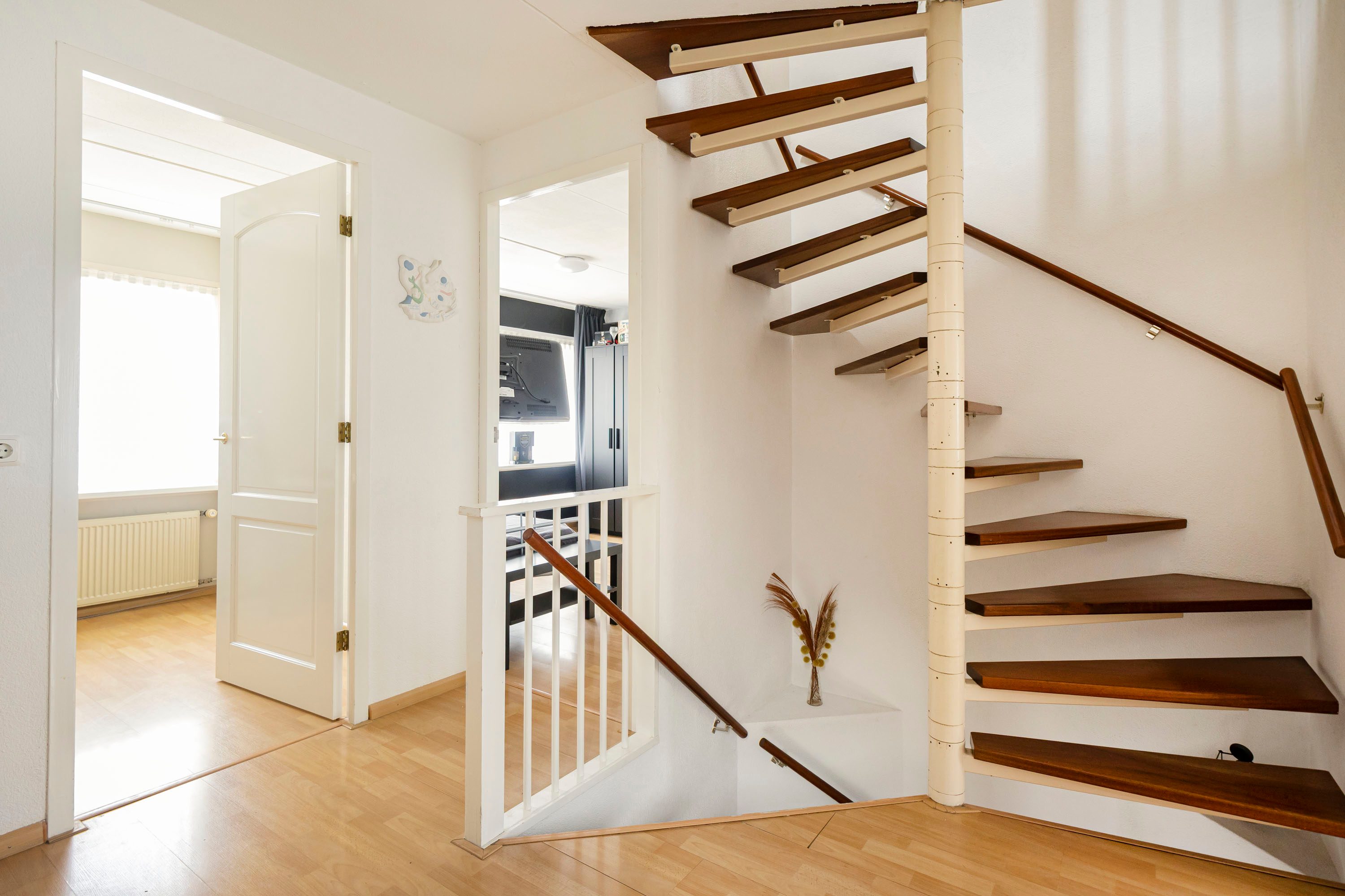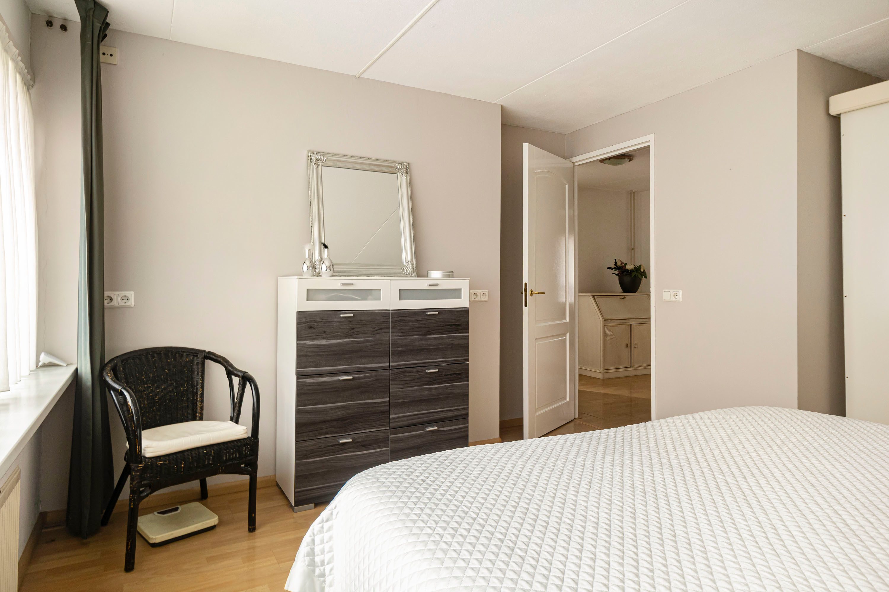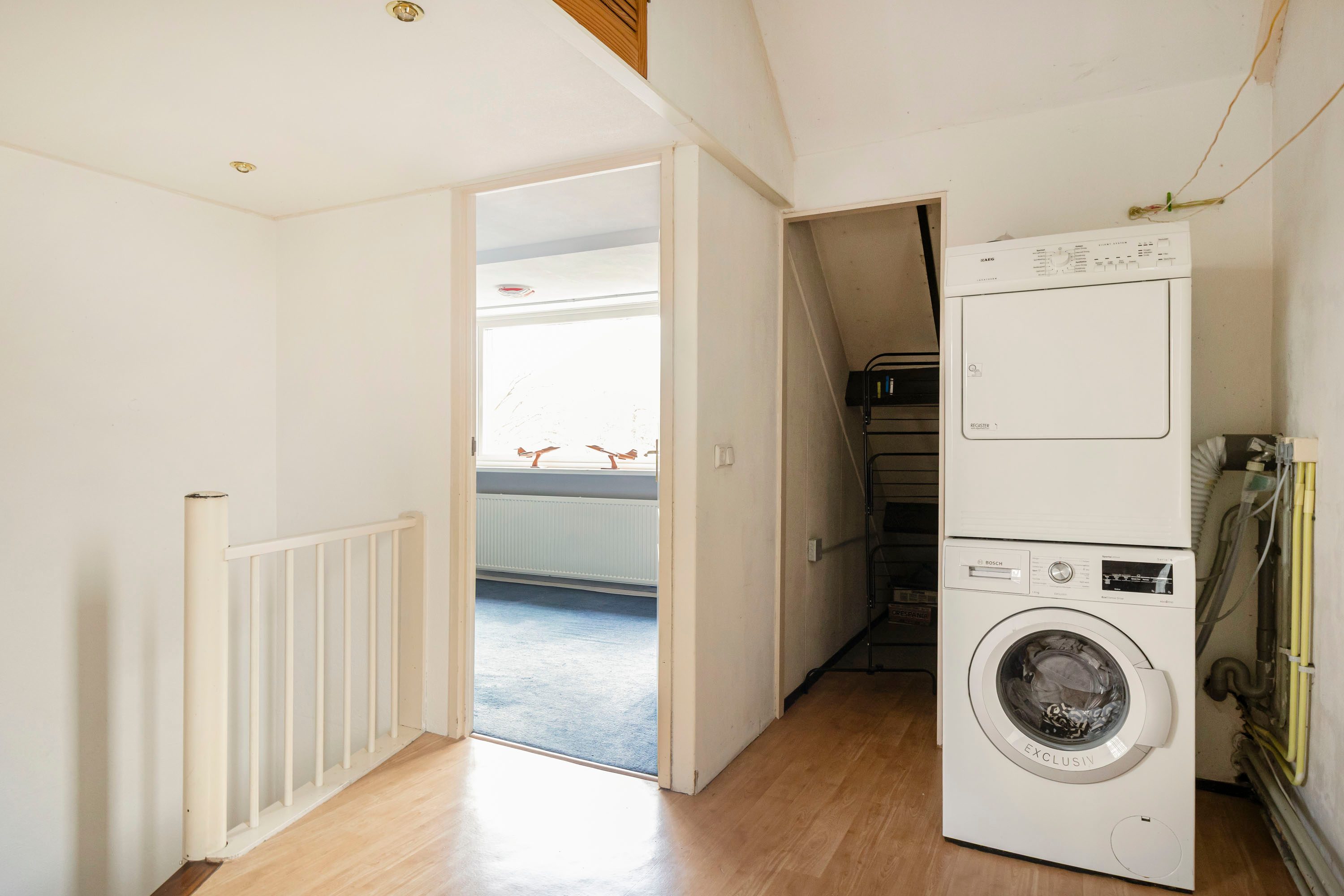 Via een vaste trap bereik je de tweede verdieping met nog eens twee slaapkamers van 13,8 m² en 12,1 m². Beide kamers zijn voorzien van een dakkapel, wat zorgt voor extra ruimte en wederom zeer veel daglicht. Op de overloop bevinden zich de aansluitingen voor wasmachine en droger en is er voldoende bergruimte aanwezig. De rolluiken op de tweede verdieping zijn ook elektrisch bedienbaar.