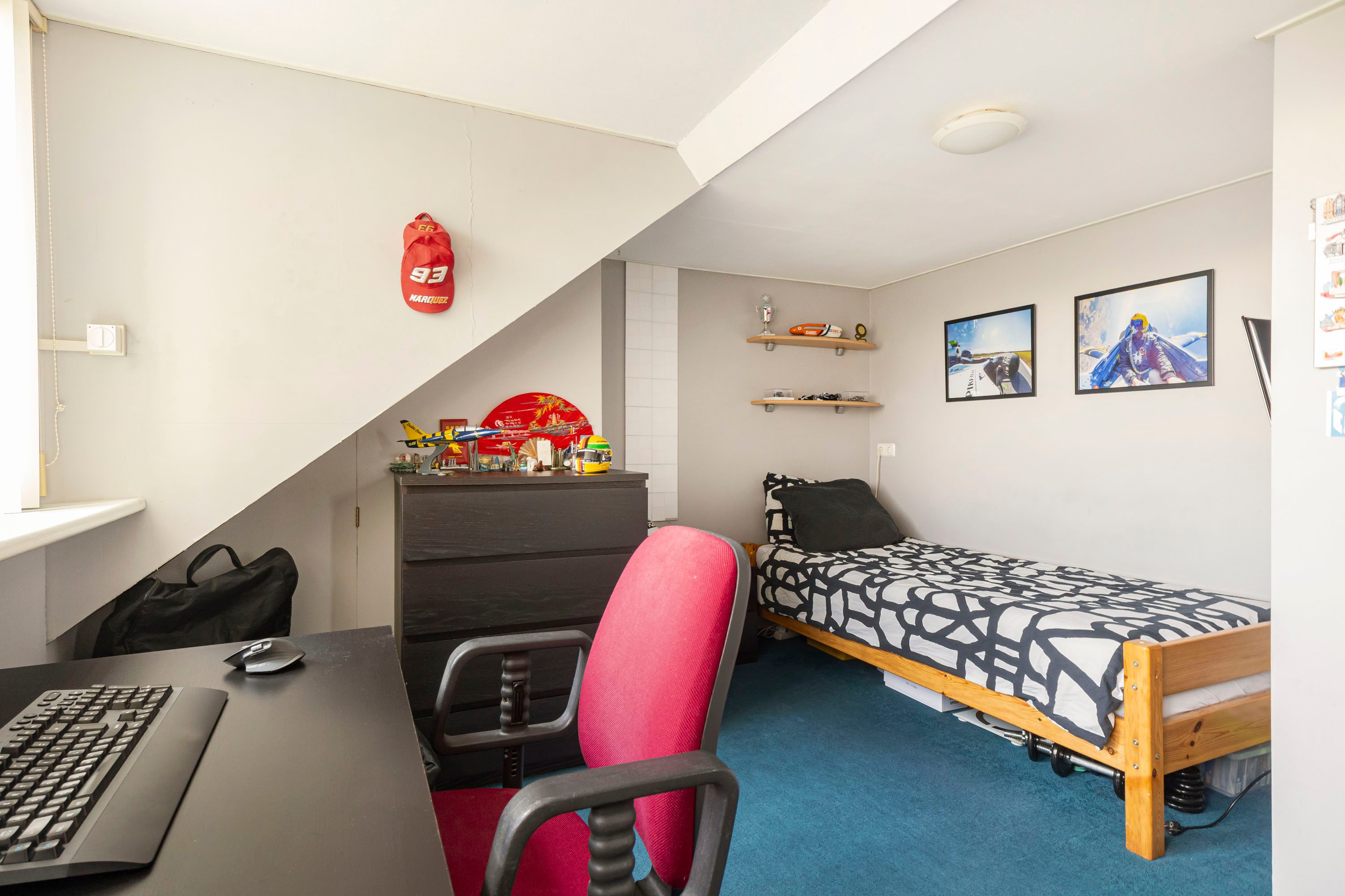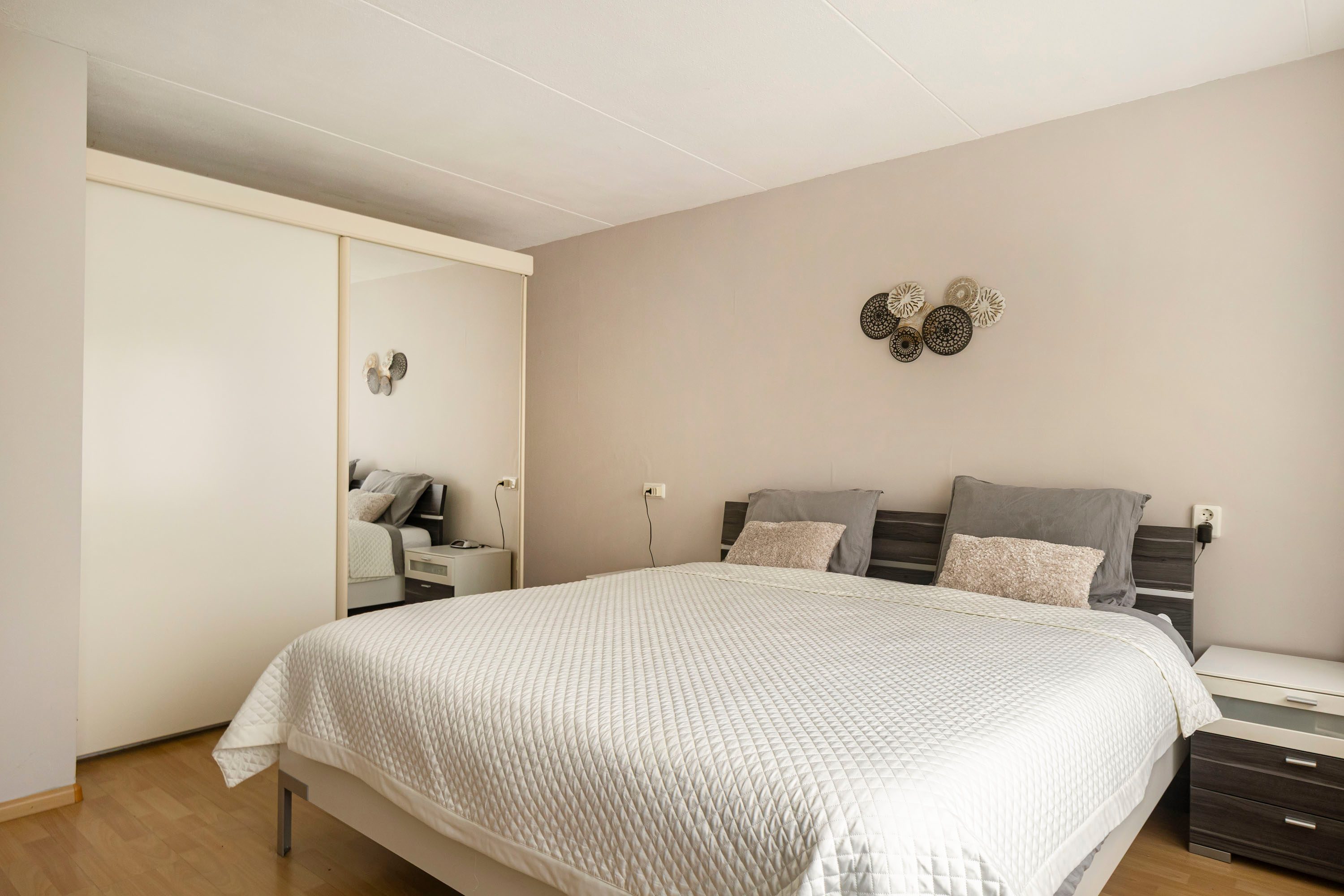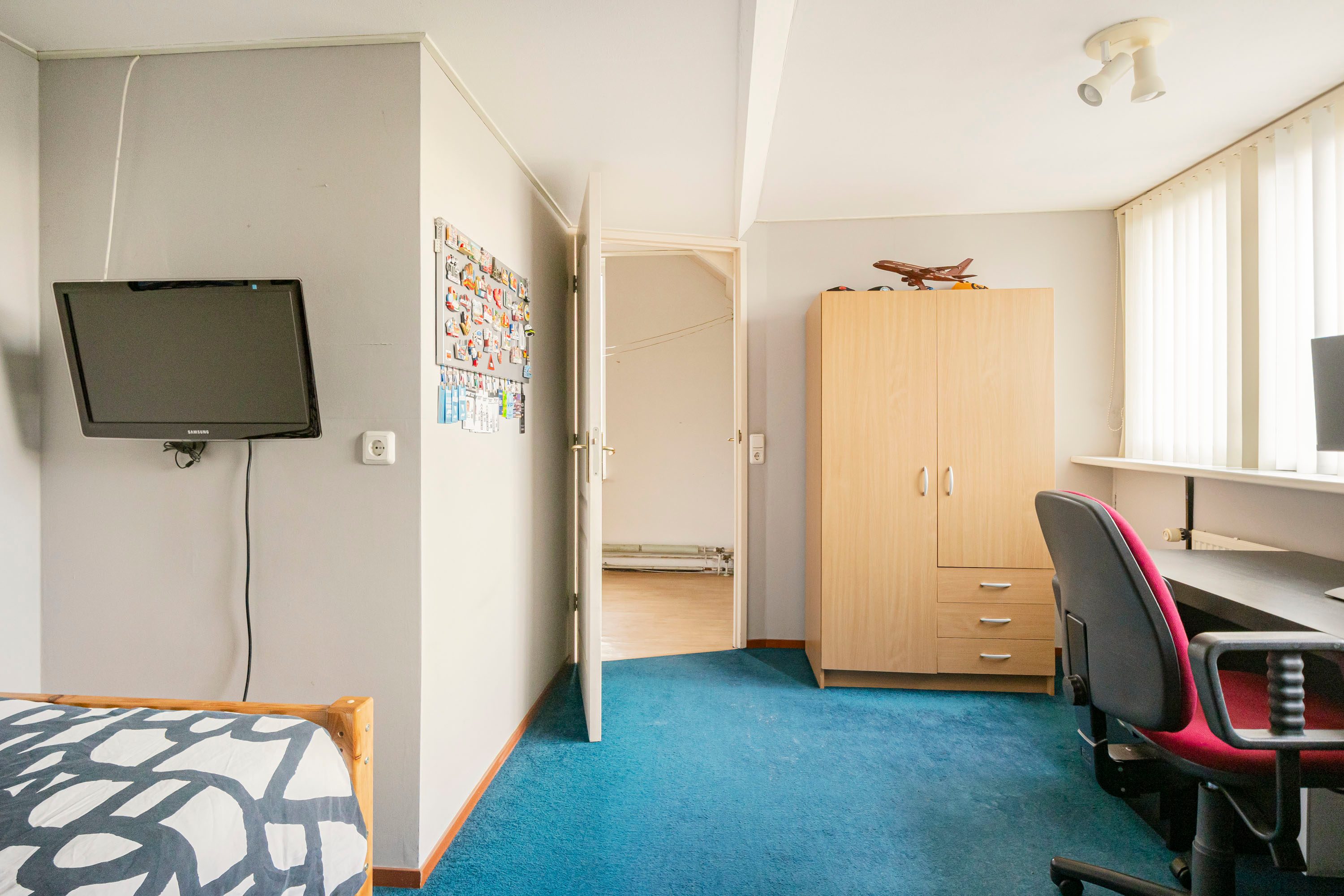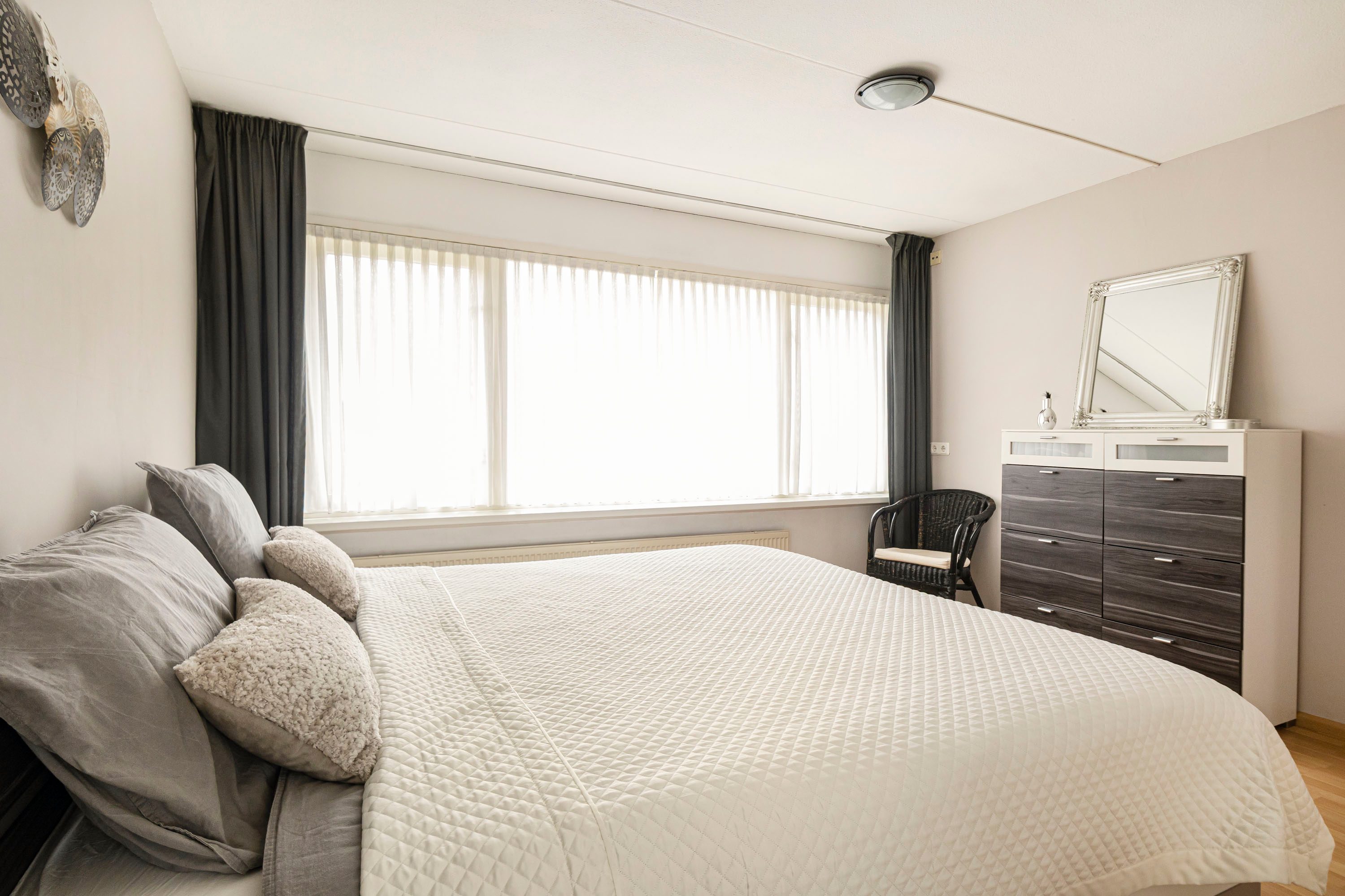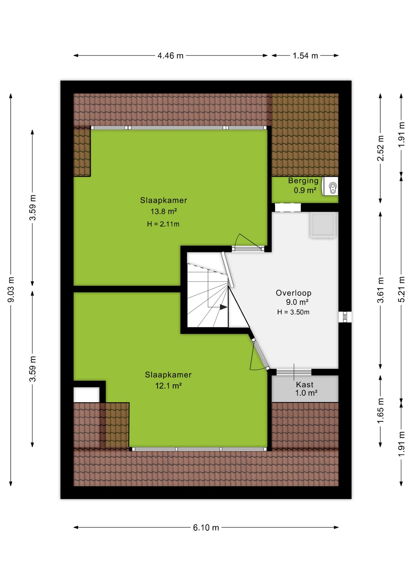 Via een vaste trap bereik je de tweede verdieping met nog eens twee slaapkamers van 13,8 m² en 12,1 m². Beide kamers zijn voorzien van een dakkapel, wat zorgt voor extra ruimte en wederom zeer veel daglicht. Op de overloop bevinden zich de aansluitingen voor wasmachine en droger en is er voldoende bergruimte aanwezig. De rolluiken op de tweede verdieping zijn ook elektrisch bedienbaar.
