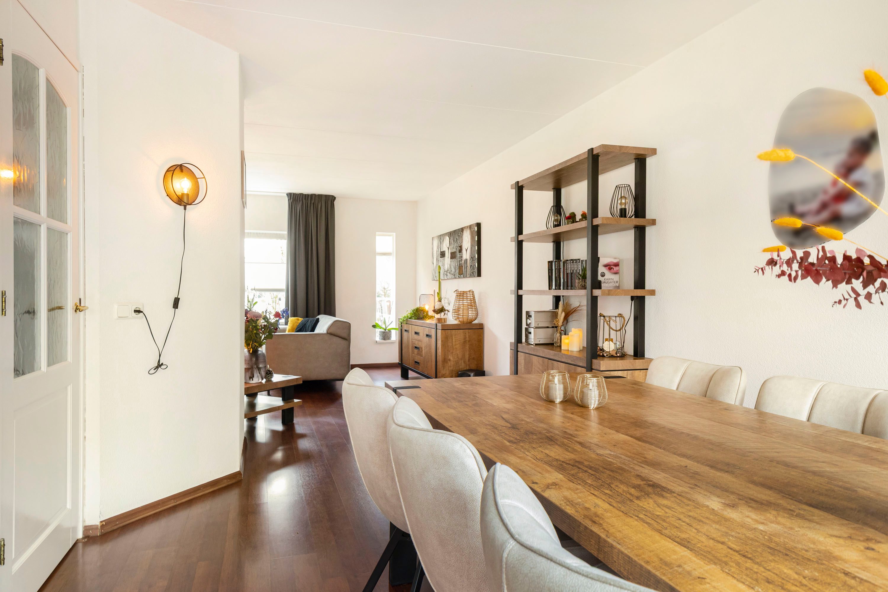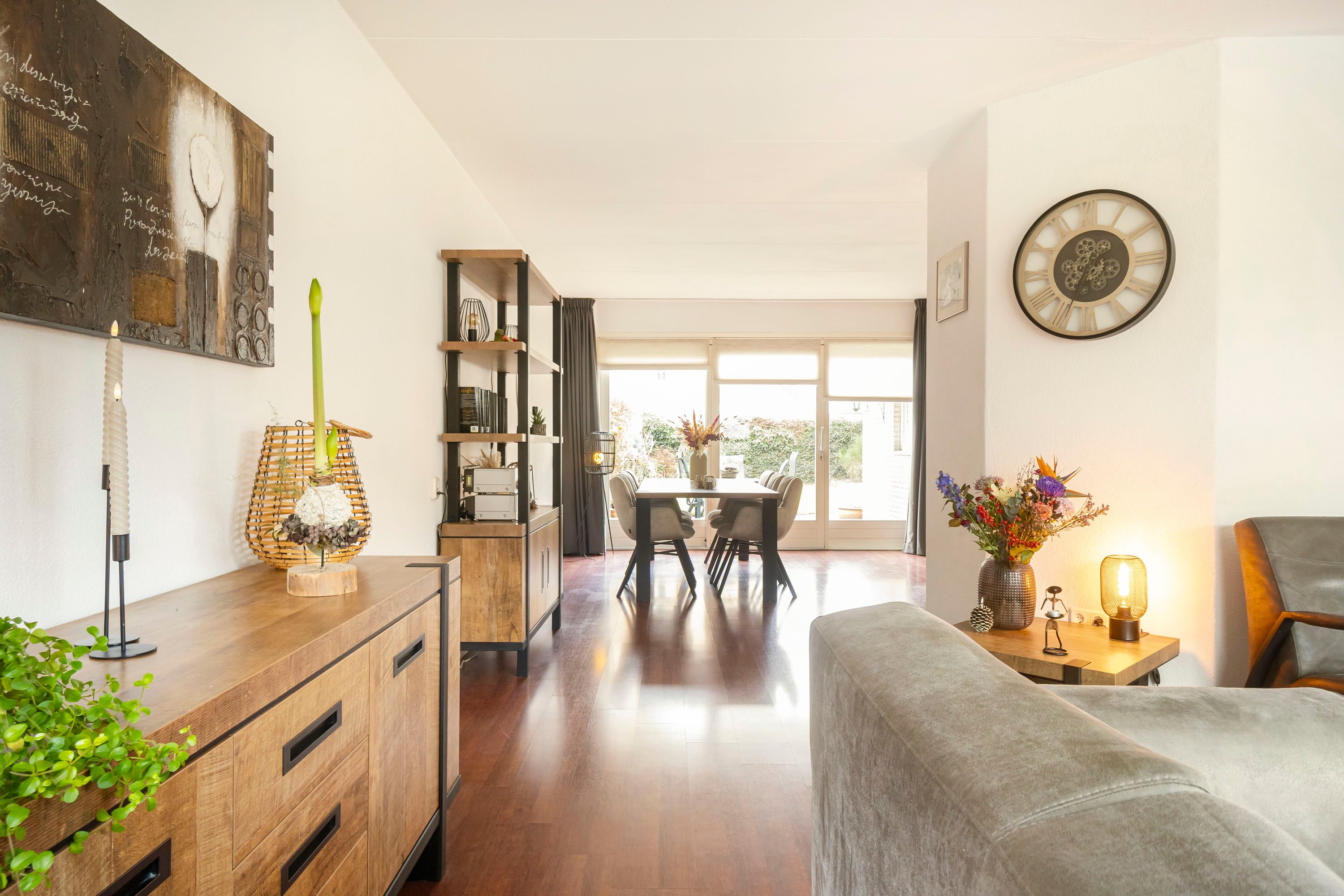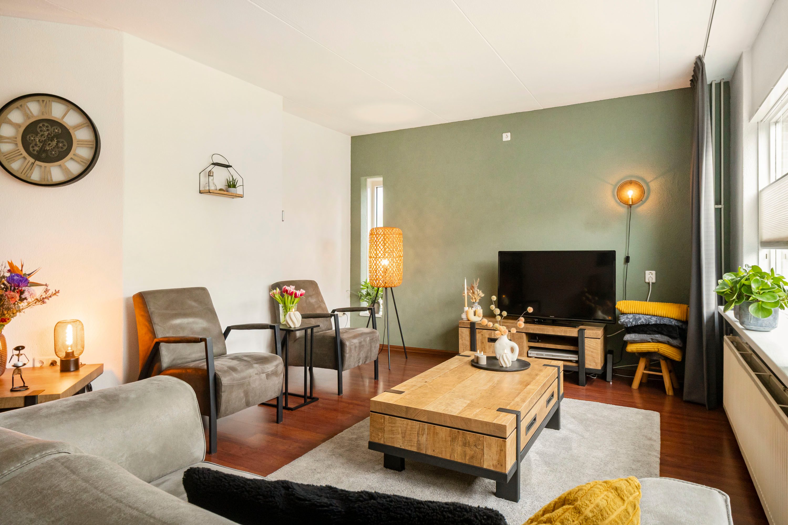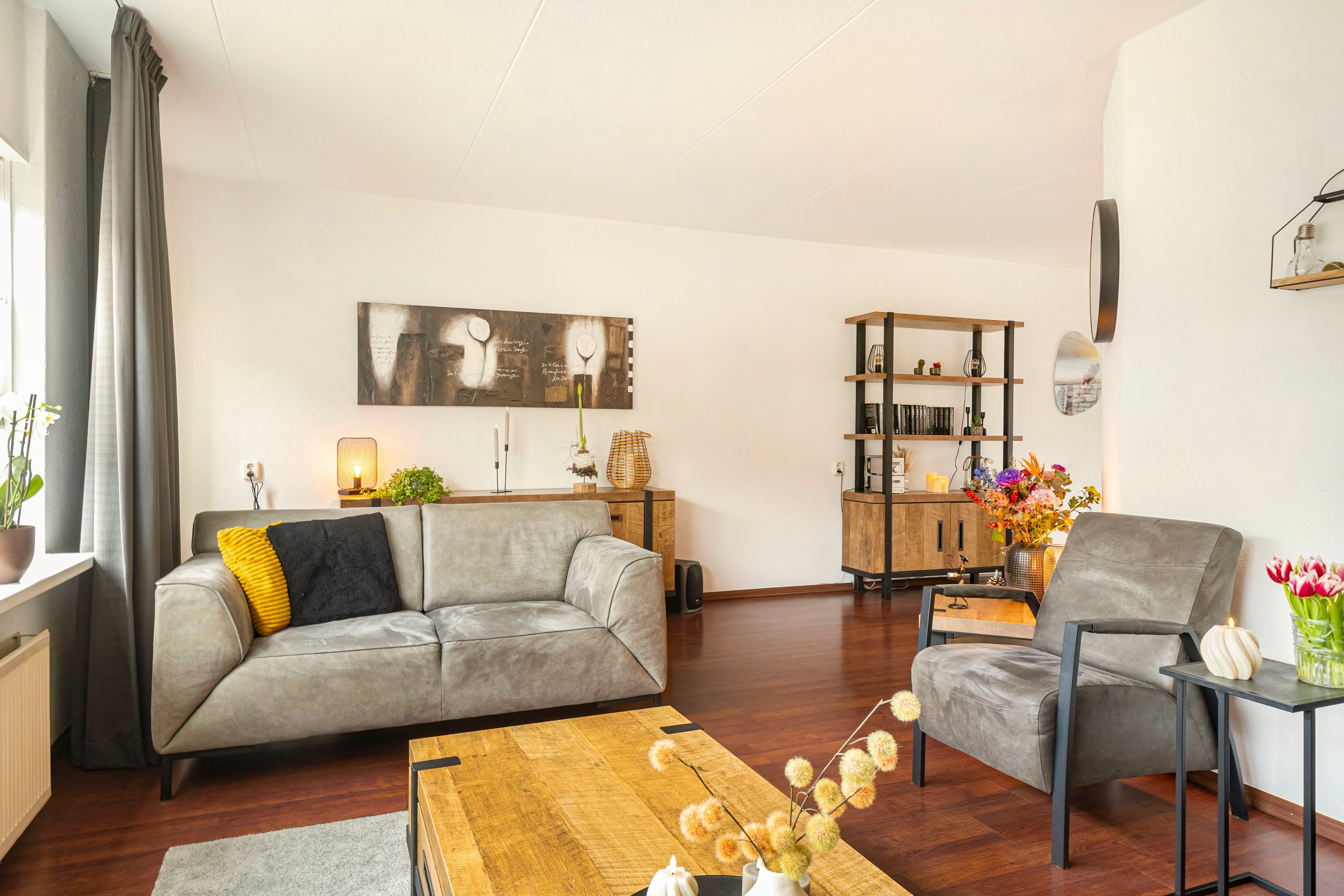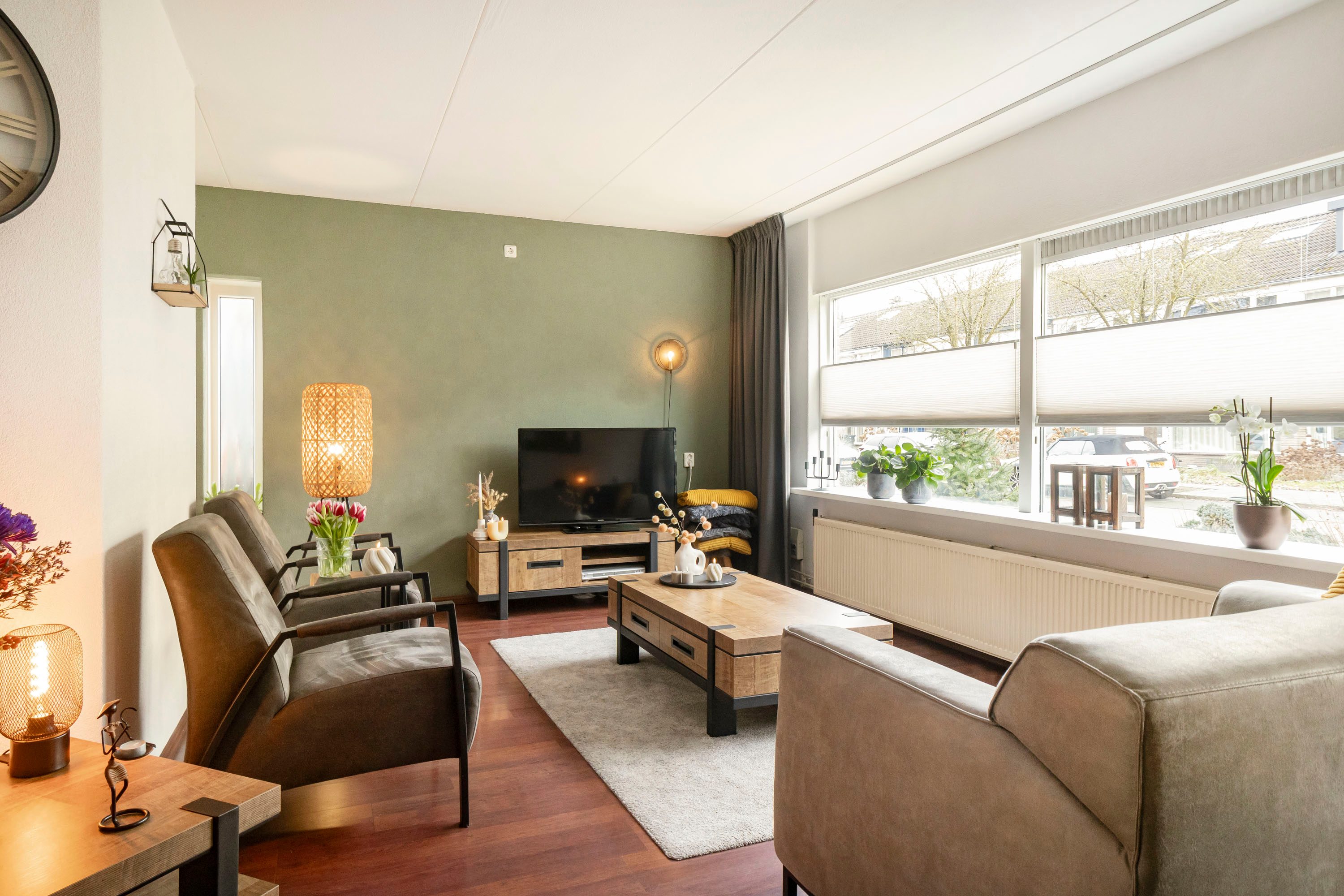 Via de entree, waar zich het toilet, de trapopgang en een handige opbergkast bevinden, kom je in de royale U-vormige living met aan de voorzijde de woonkamer van maar liefst 38,6 m². Hier is volop ruimte voor een comfortabele zithoek én een gezellig lees- of speelhoekje. De grote raampartij aan de voorzijde zorgt voor een prettige lichtinval en fijn en vrij uitzicht de straat in.